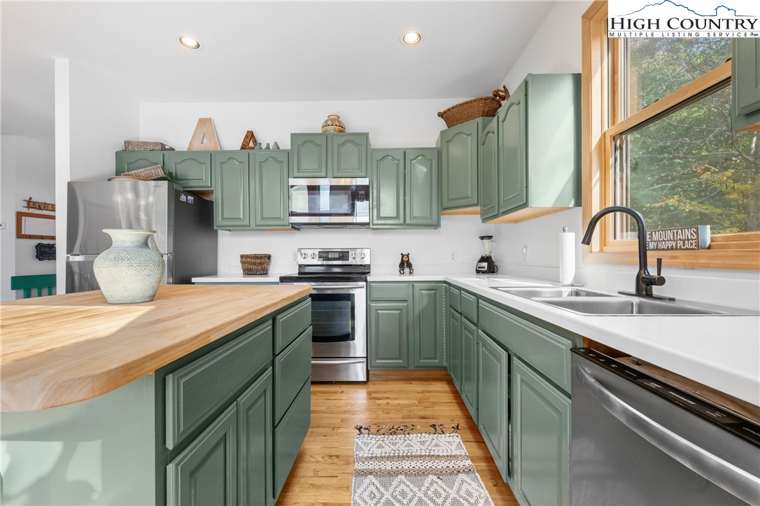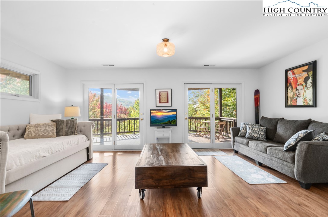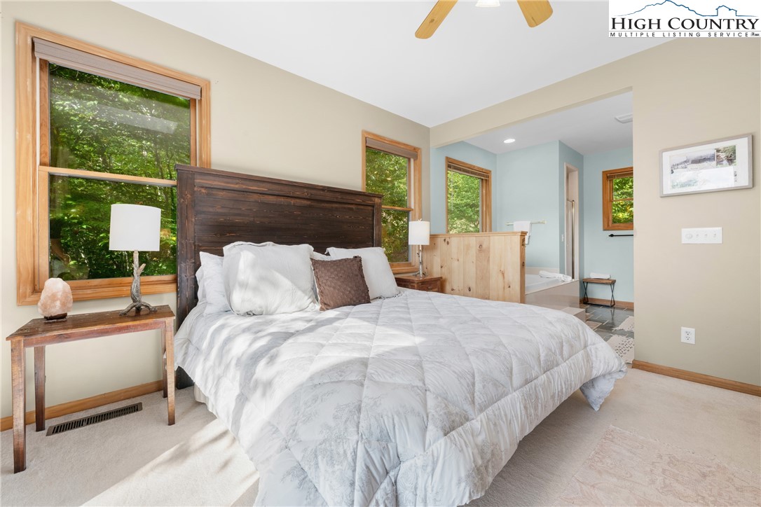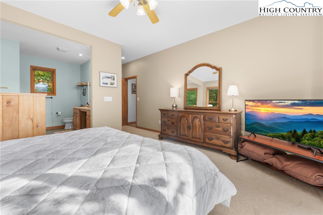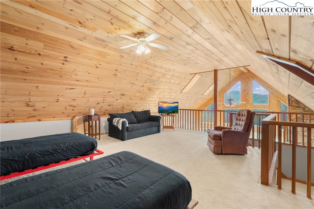 No, you are NOT dreaming! This 13.95 ACRE BEECH MOUNTAIN ESTATE - ATALINA CABIN won't last long & is truly a ONE of a KIND MOUNTAIN HOME! This extraordinary PRESTINE 3 BEDROOM + LOFT BEDROOM & 2.5 BATH property is more than just a home; it’s a magical mountain escape that promises serenity and adventure in equal measure. Unlike any other property on Beech Mountain, Atalina Cabin boasts beauty, seclusion, expansive land as well as beautiful westerly views into Tennessee! Whether you choose to spend your day wandering through the expanse of 13.95 acres discovering hidden paths and abundant wildlife or unwind on the rear deck while soaking in the tranquil surroundings, you truly won't want to be anywhere else! The main level offers an expansive open floor plan seamlessly connecting the renovated kitchen, dining & family rooms with a wall of windows that flood the main living space with natural sunlight which showcase the mountain views. The striking floor-to-ceiling stone wood burning fireplace adds character and warmth ideal for relaxing after a cold day on the slopes. The main level also offers a 1/2 bath, laundry room & primary bedroom suite. The upper level has a spacious loft bedroom which could also be used for a workout room or office. The lower level has the 2nd family room, 2 guest bedrooms and a beautifully renovated full bath. Another amazing amenity of Atalina Cabin is the storm/bomb shelter below ground which has power, water via a private well, sink and toilet. Buckeye Creek also runs below the cabin & is a short hike to the creeks w/mini waterfalls and hidden pockets for water wading. Whether you’re into outdoor activities, wildlife watching or simply soaking in spectacular sunsets, this property offers endless opportunities. Conveniently located just 5 minutes from Ski Beech Resort, this property allows you to easily access all the thrilling outdoor Beech Mountain activities year-round while still being your private sanctuary. This home is beautifully furnished and the furnishings convey at closing. Beech Mountain Club membership is also available should you choose to become a member where you will enjoy access to member only amenities, including FINE DINING, championship golf, outdoor swimming pool, a fully-equipped fitness center & pickleball/tennis courts.
