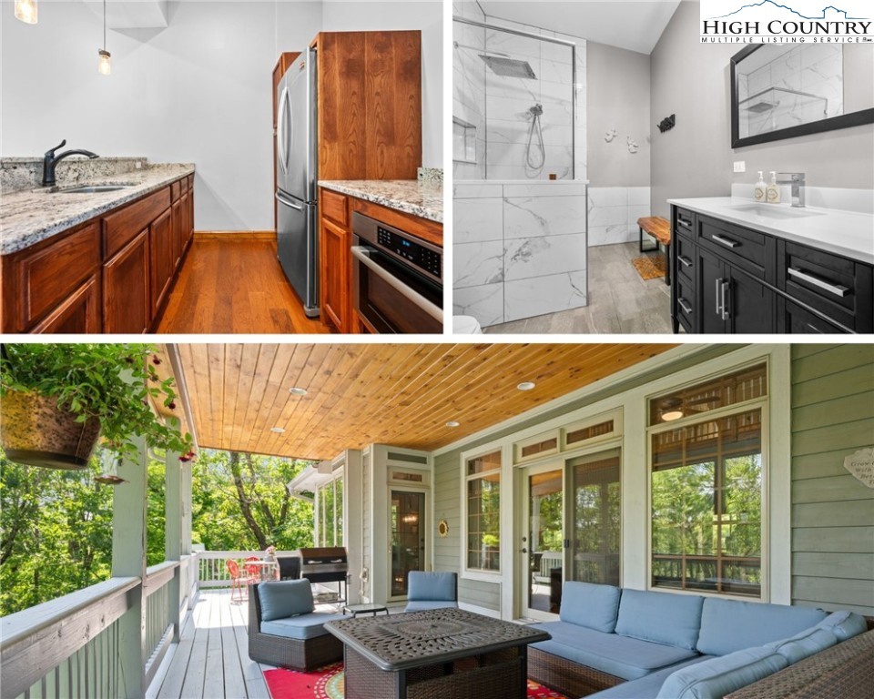 Tucked away at the end of a quiet cul-de-sac in the prestigious Ridgecrest on the Parkway community, this high-end mountain retreat redefines luxury living with thoughtful details and top-tier craftsmanship at every turn. Every inch of this 4-bedroom, 4.5-bath masterpiece has been impeccably maintained, no expense spared, and every upgrade intentional. From the moment you arrive, the stunning curb appeal and peaceful privacy set the tone. The home backs directly to the iconic Blue Ridge Parkway, offering serene wooded views, direct access to natural beauty, and the calm that only a protected landscape can provide. Step inside to soaring vaulted ceilings in the living room, a floor-to-ceiling stacked stone natural gas fireplace, and a spacious dining area perfect for entertaining. The updated kitchen is a chef’s dream with stainless steel appliances, granite countertops, and a one-year-old gas range with new hood. The main level also hosts the tranquil primary suite with a spa-like en-suite featuring porcelain floors, a half bath for guests, and a full laundry room. Upstairs, you’ll find two oversized bedrooms, a bonus room, and two full baths: one private and one shared. Downstairs, the mostly finished basement becomes a world of its own: a large family/game room, a fourth bedroom, kitchenette, and a shared full bath, along with two expansive storage rooms. A separate lower-level area provides even more storage or the perfect doggy suite. Engineered hickory and hardwood flooring, a top-of-the-line Trane 3-zone heat pump, whole-house steam humidifier, and electrostatic filter ensure comfort in every season. Outdoors, enjoy both covered and open-air decks, recently re-stained along with the cedar siding. The yard is partially fenced and equipped with invisible dog fencing. For EV owners, a 2-car garage with 220V charger on its own meter. Luxury, location, and lifestyle, this is mountain living at its absolute best. The Mountains Are Calling... Are You Listening?