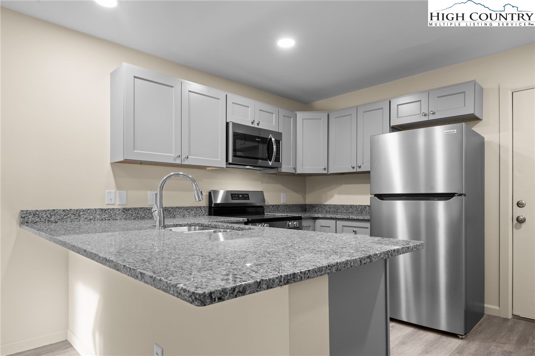 Newly renovated College Place condo! This centrally located College Place condo sits right on the corner of Greenway Road and Zeb Street. It features 2 bedrooms, each with their own en-suite bathroom, a kitchen complete with dishwasher, refrigerator, oven, and microwave, as well as a stackable washer and dryer unit located off the living area. The entire unit has been renovated throughout with a brand-new Mitsubishi mini-split system, which provides both energy efficient heating and air conditioning. Additional updates include new kitchen cabinets, stainless steel appliances, and countertops, new windows and doors, new bathroom fixtures, new recessed lighting, and new LVP flooring and paint throughout. Out back, you have your own covered porch that opens toward the common area lawn and clubhouse. Conveniently located less than 10 minutes from Appalachian State University with direct access to the AppalCart bus route, as well as walking distance to Publix and Walmart. Monthly POA includes water and internet. No lease in place and ready for occupancy. Market rates for comparable units are $1,500+ per month. Disclosure: This unit and building did flood during 2024 Hurricane Helene.