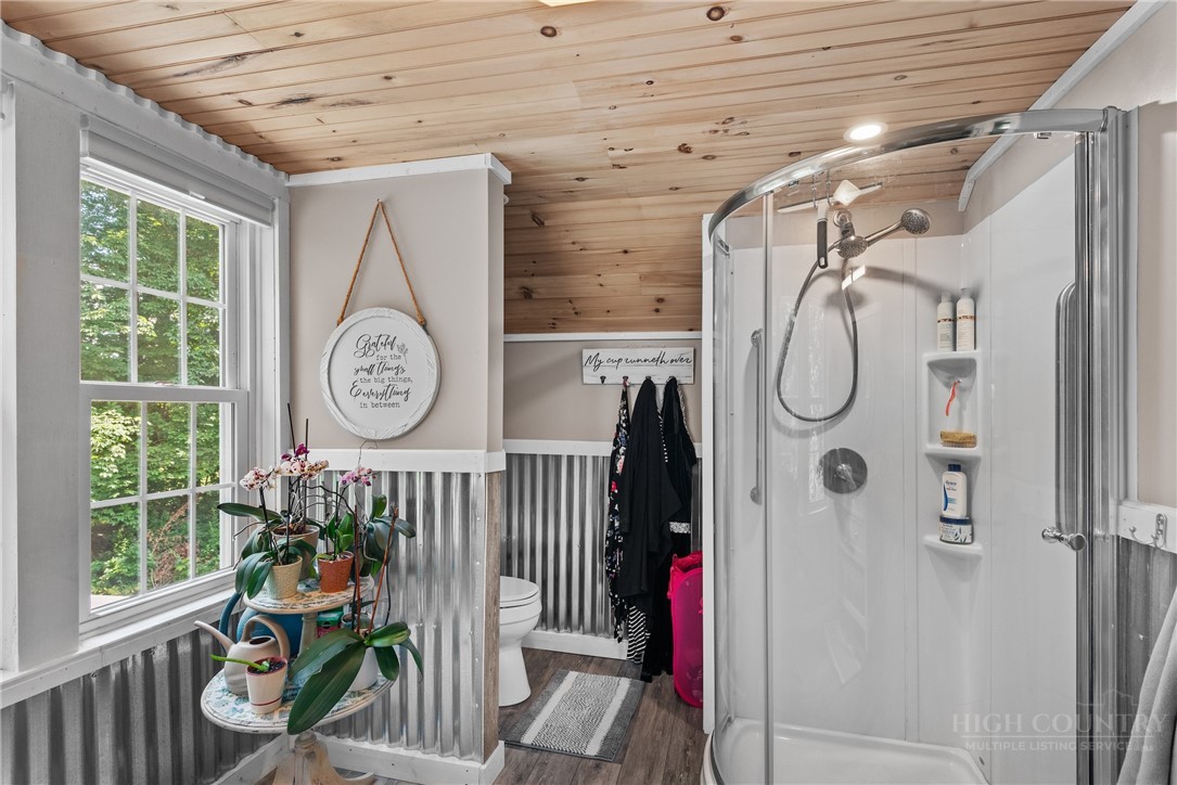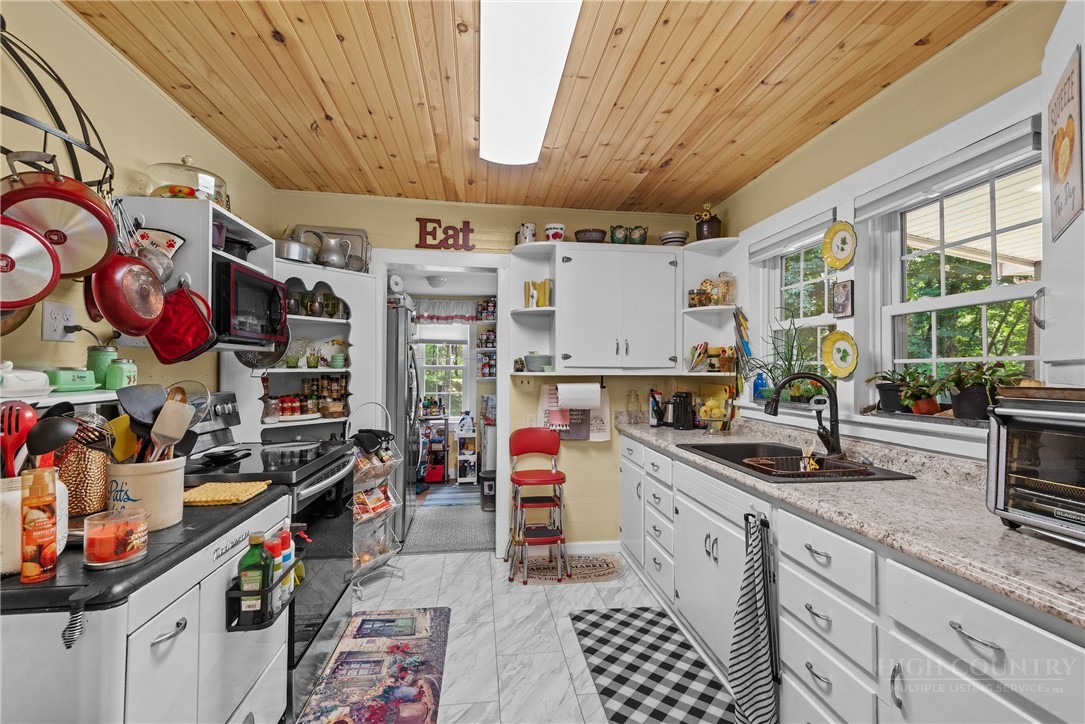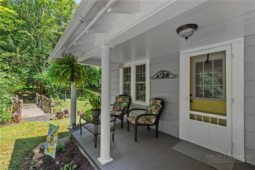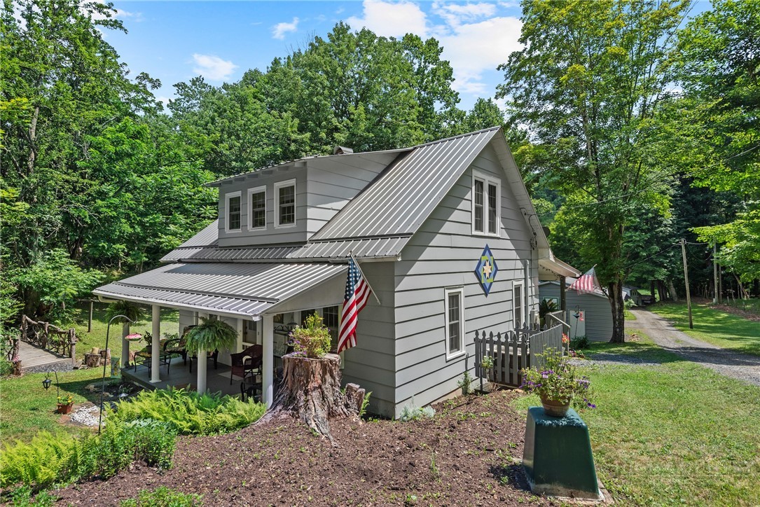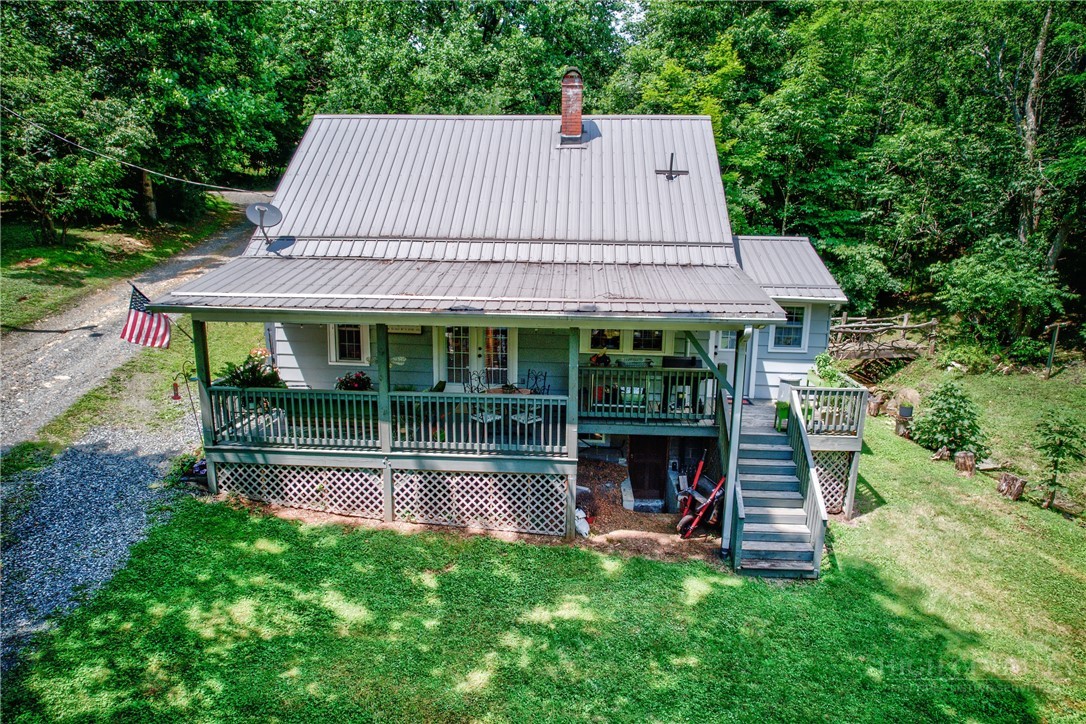 This charming mountain getaway, on the way from Stonebridge to West Jefferson is perfect for anyone who prefers five acres all of their own and life unburdened by myriad restrictions in a subdivision POA. For the price of a 1/2 acre subdivision home squeezed by close neighbors, here you'll find nothing but the serene sounds of a gurgling stream and wildlife on the five-acre mountain meadow. Located convenient to West Jefferson, you're close to everything to make life easy. This would be a charming bed and breakfast, your dream mountain getaway or family compound with the prospect of building new log homes on the high meadow overlooking mighty Call Creek and the mountains beyond. Offered furnished with exceptions and pre-inspected for your peace of mind. Furnished subject to owner's list of personal and sentimental exceptions. Come and see it before it floats away down the stream.