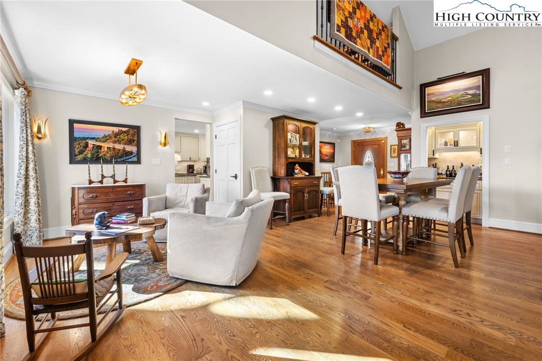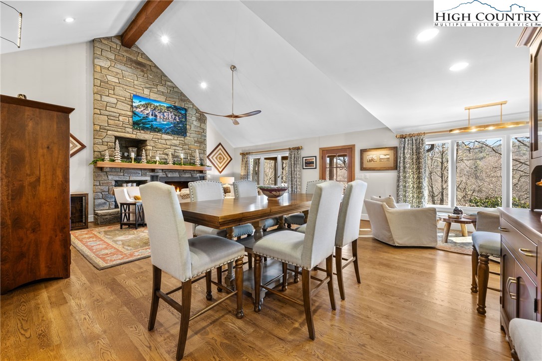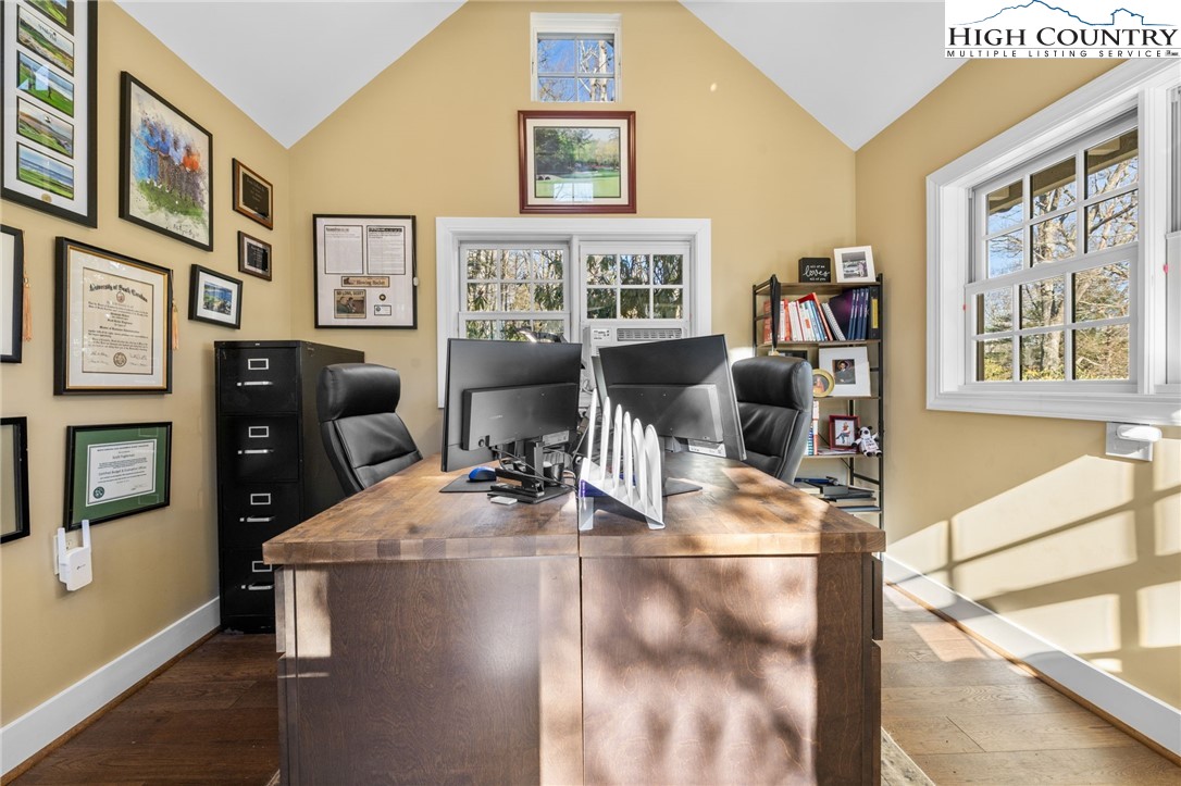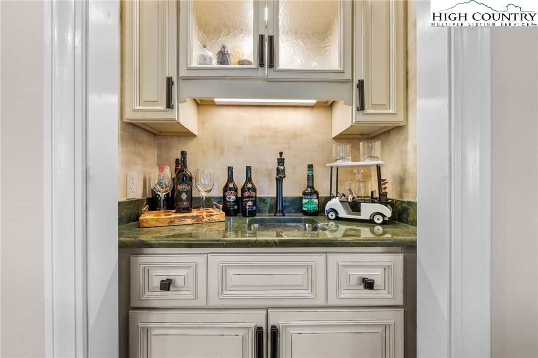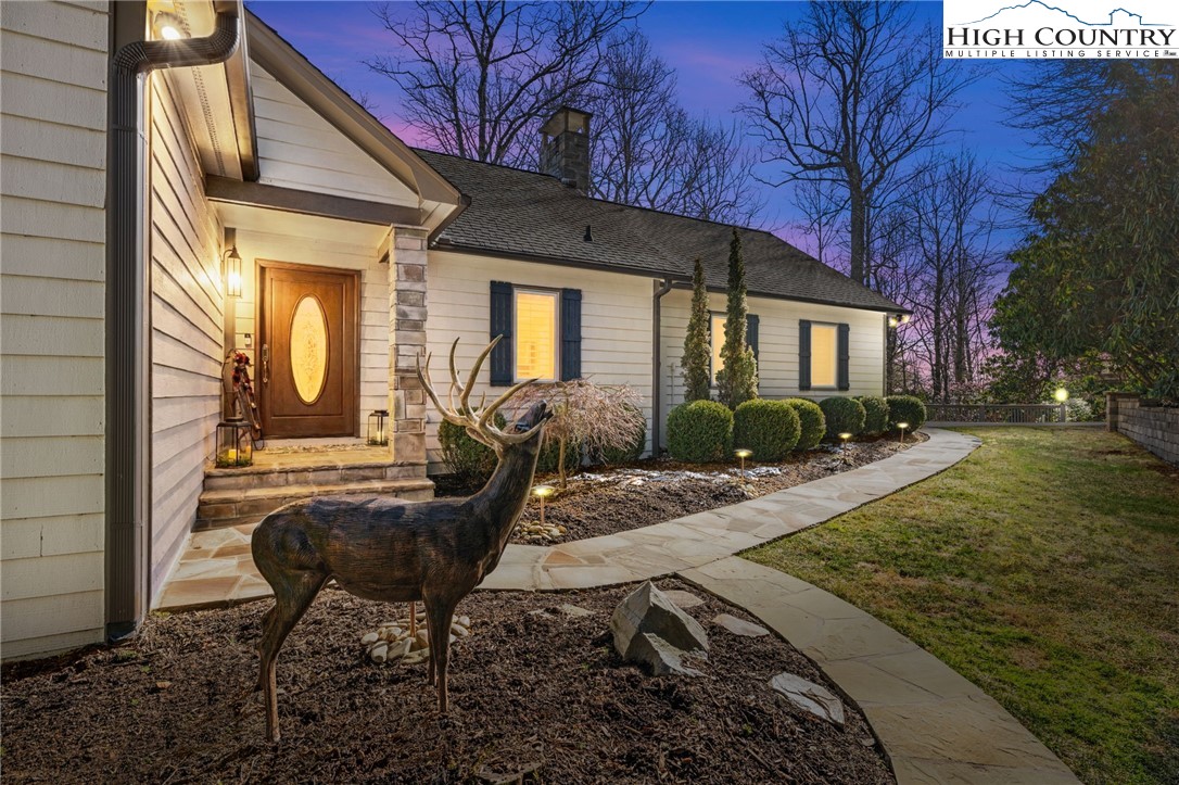 Secluded, classic Mayview home updated to state-of-the-art and just blocks from the heart of Blowing Rock and a stones throw to Bistro Roca. This charming professionally decorated home, perched on a ridge above New Year's Creek and the Glen Burney Trail, is a secret find with a fairly level driveway and entrance to the oversized double garage with a built-in BMW car charger. Follow the stone walk to the covered front porch, viewing the quaint mini-cottage beyond and enter the foyer. The vaulted great room with new wooden floors unfolds before you. Across, see the window wall with a covered porch and forest beyond. From floor-to-ceiling is the stone fireplace crafted with stone quarried from Grandfather Mountain with a new, large set of gas logs and special niches to display treasures. From this room, enter onto the covered back porch overlooking a rhododendron forest and backing up to the Glen Burney trail. Opposite is a large wall for displaying art that is punctuated by a custom wet bar. Overlooking all is a small loft for reading and relaxing with walk-in access to a large attic storage space. There is a newly installed kitchen with a granite dining bar and custom counters and cabinets. Upscale appliances include a double-door stainless steel refrigerator, gas range with two electric ovens, a deep composite sink to create a chef's kitchen - a favorite gathering spot. Adjoining the kitchen is a lovely half bath adjacent to a laundry room with custom cabinetry. All adjoin the oversized two-car garage with a wall of cabinets for extra storage and a workbench. Pull right into the garage and unload groceries straight into the kitchen. Just off the foyer is the primary bedroom with a dressing room/closet and luxury tile and granite shower with double vanities and heated tile flooring. Through the window, view the charming studio/office/garden house. From the foyer, guests go to the lower level with three bedrooms, a full bath and a family room with a window wall opening to the porch. One of the bedrooms is currently outfitted as a storage or wardrobe room and the den is currently set up as a studio apartment with a cozy gas stove to chase chills and a built-in wet bar with a wine fridge. Each room downstairs has its own separately controlled mini-split. Relax on the lower-level open porch or covered area with a swing. A bonus is the quaint heated & cooled separate building currently being used as a home office. This home has a full security system serviced through Creekside as well as a two camera ring system and a myQ remote system for the new garage door. This home is a must see to truly take in its charm, life-style, and wooded setting. We look forward to showing you this exceptional home!