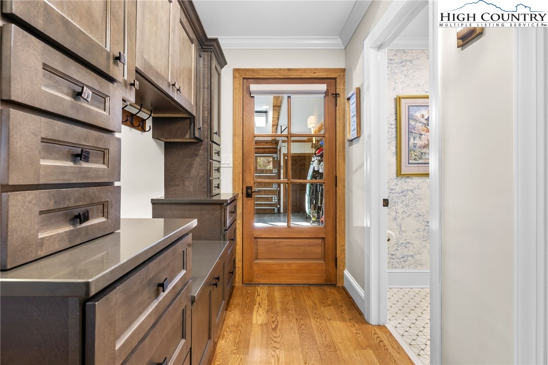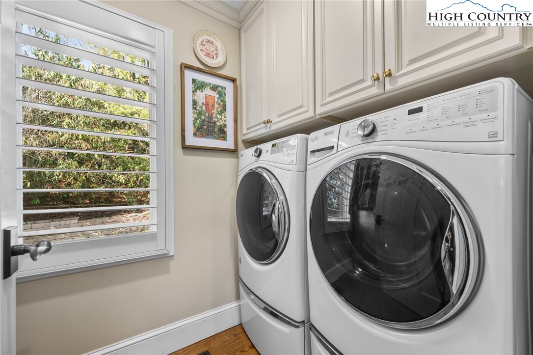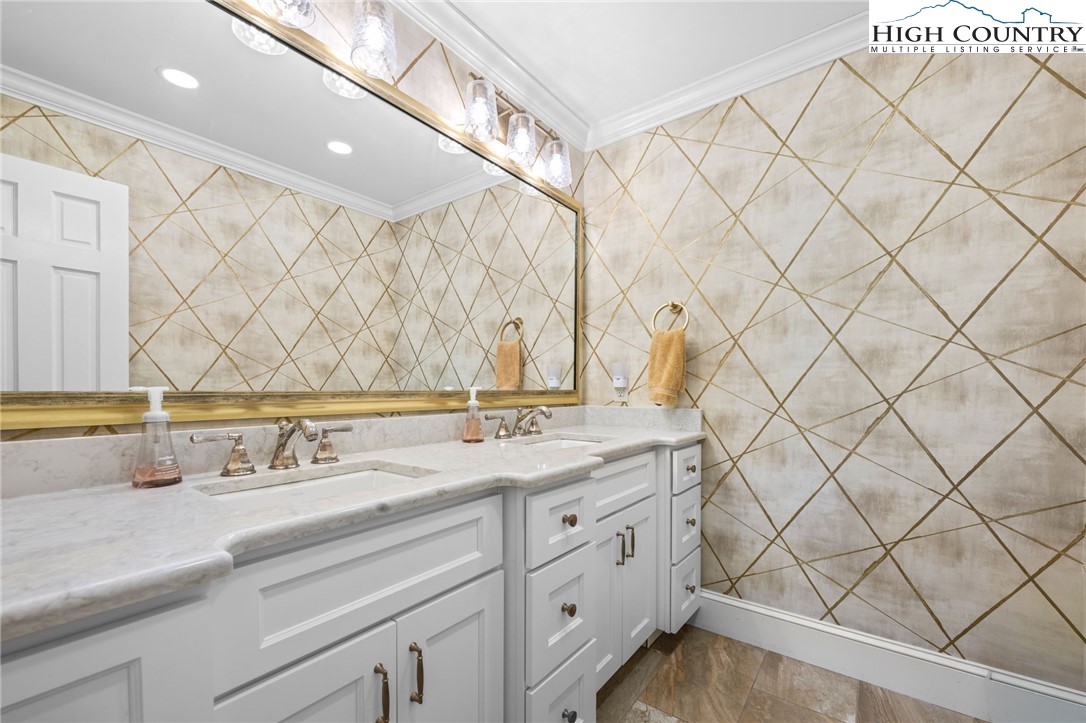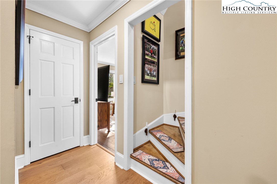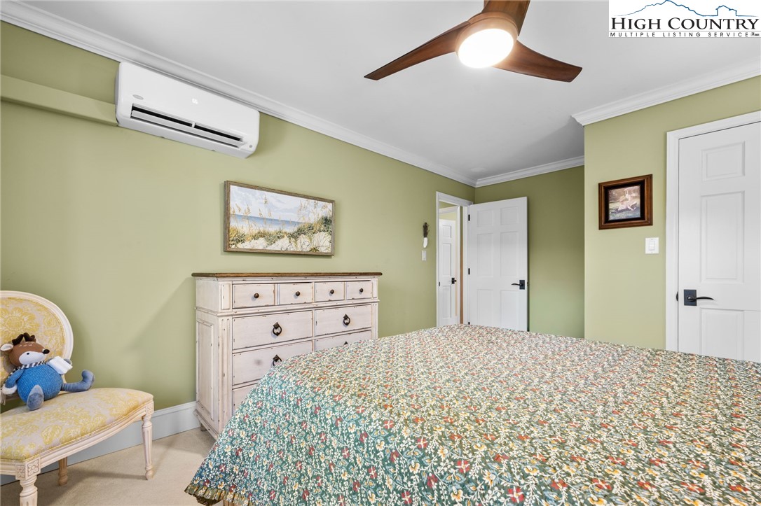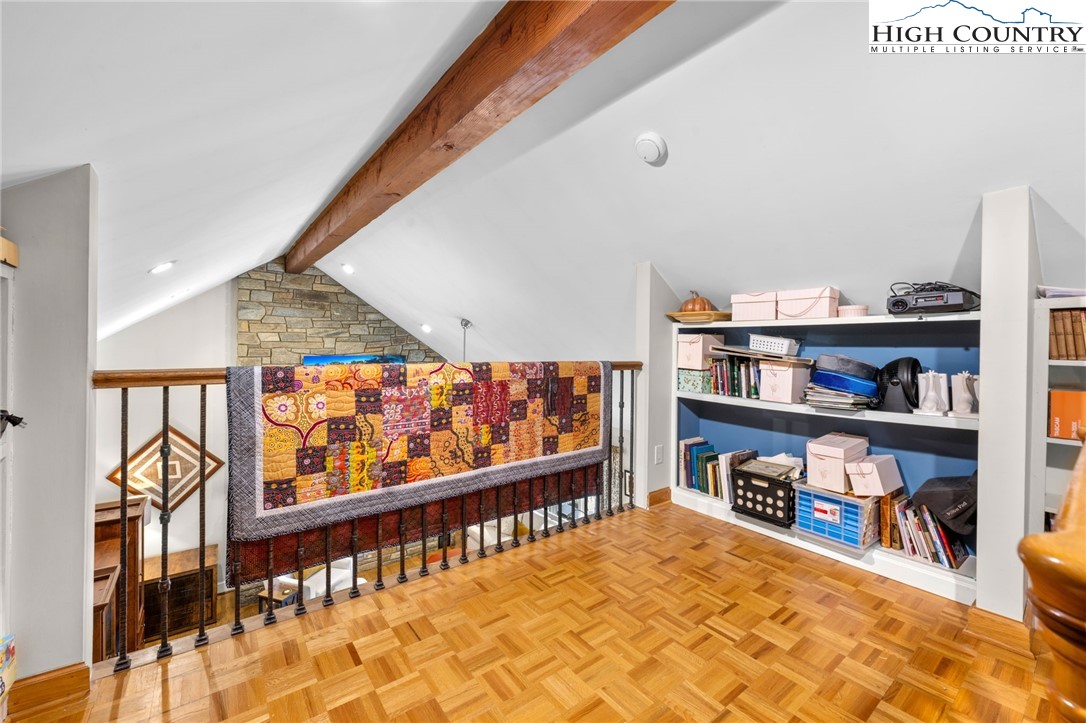 Secluded, classic Mayview home updated to state-of-the-art and just blocks from the heart of Blowing Rock and a stones throw to Bistro Roca. This charming professionally decorated home, perched on a ridge above New Year's Creek and the Glen Burney Trail, is a secret find with a fairly level driveway and entrance to the oversized double garage with a built-in BMW car charger. Follow the stone walk to the covered front porch, viewing the quaint mini-cottage beyond and enter the foyer. The vaulted great room with new wooden floors unfolds before you. Across, see the window wall with a covered porch and forest beyond. From floor-to-ceiling is the stone fireplace crafted with stone quarried from Grandfather Mountain with a new, large set of gas logs and special niches to display treasures. From this room, enter onto the covered back porch overlooking a rhododendron forest and backing up to the Glen Burney trail. Opposite is a large wall for displaying art that is punctuated by a custom wet bar. Overlooking all is a small loft for reading and relaxing with walk-in access to a large attic storage space. There is a newly installed kitchen with a granite dining bar and custom counters and cabinets. Upscale appliances include a double-door stainless steel refrigerator, gas range with two electric ovens, a deep composite sink to create a chef's kitchen - a favorite gathering spot. Adjoining the kitchen is a lovely half bath adjacent to a laundry room with custom cabinetry. All adjoin the oversized two-car garage with a wall of cabinets for extra storage and a workbench. Pull right into the garage and unload groceries straight into the kitchen. Just off the foyer is the primary bedroom with a dressing room/closet and luxury tile and granite shower with double vanities and heated tile flooring. Through the window, view the charming studio/office/garden house. From the foyer, guests go to the lower level with three bedrooms, a full bath and a family room with a window wall opening to the porch. One of the bedrooms is currently outfitted as a storage or wardrobe room and the den is currently set up as a studio apartment with a cozy gas stove to chase chills and a built-in wet bar with a wine fridge. Each room downstairs has its own separately controlled mini-split. Relax on the lower-level open porch or covered area with a swing. A bonus is the quaint heated & cooled separate building currently being used as a home office. This home has a full security system serviced through Creekside as well as a two camera ring system and a myQ remote system for the new garage door. This home is a must see to truly take in its charm, life-style, and wooded setting. We look forward to showing you this exceptional home!