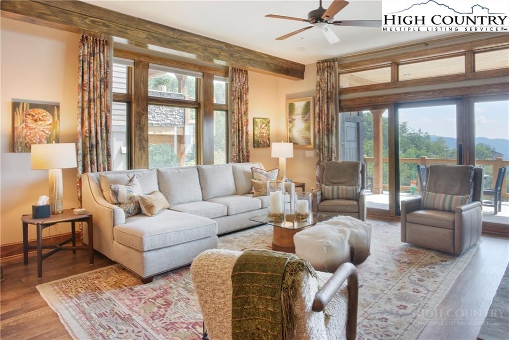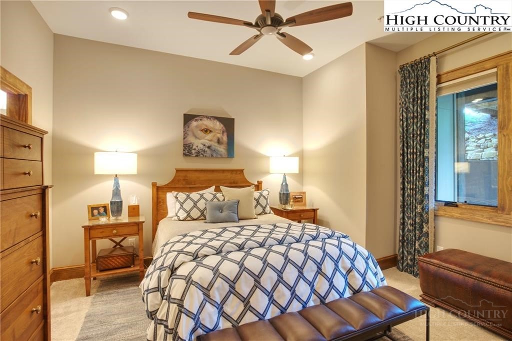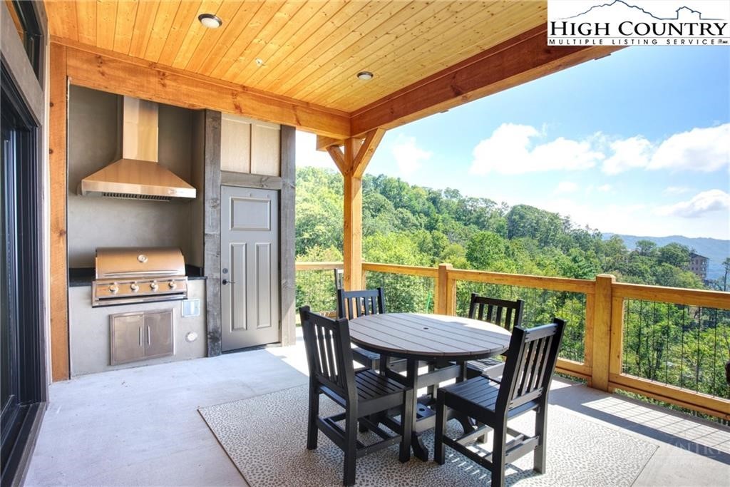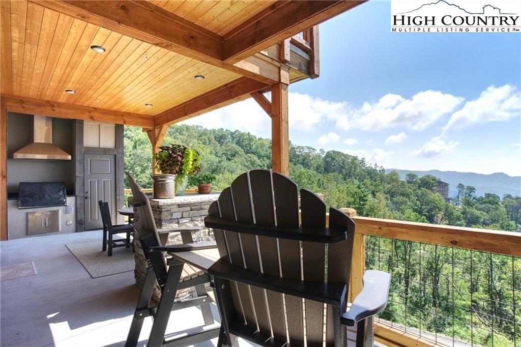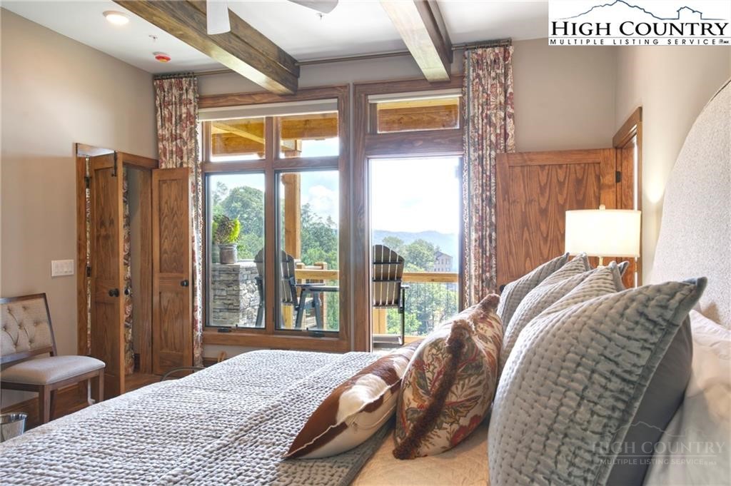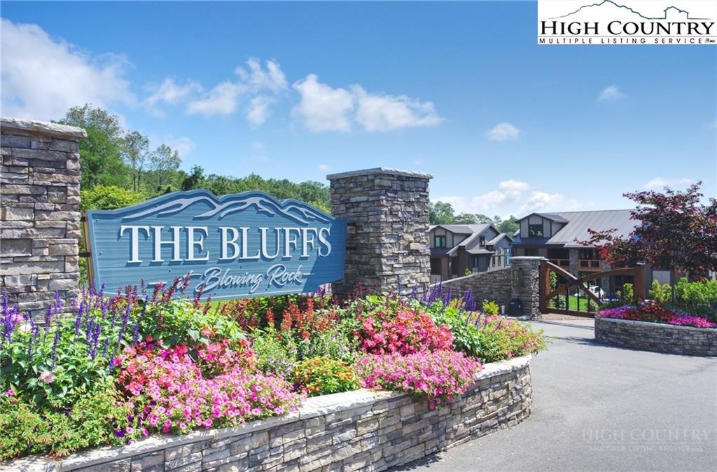 Located less than 4 miles from downtown Blowing Rock, The Bluffs is a gated, maintenance-free community perched atop layered mountain gorges, offering breathtaking long-range views in a serene High Country setting. Architecturally inspired by the Adirondack mountains aesthetic, the buildings feature a harmonious blend of stone textures, timber frame accents, and neutral materials designed to complement the natural surroundings. The unit has 9' ceilings and a custom built in bar plus newly added cabinetry in the laundry room. Spacious bedrooms and bathrooms, ensuring your guest will feel like they're at a 5 star resort. Long range layered views from the primary bedroom and bath. The large deck with built in features like a gas grill and fireplace will provide hours of relaxation and an amazing settings for meals and entertaining.