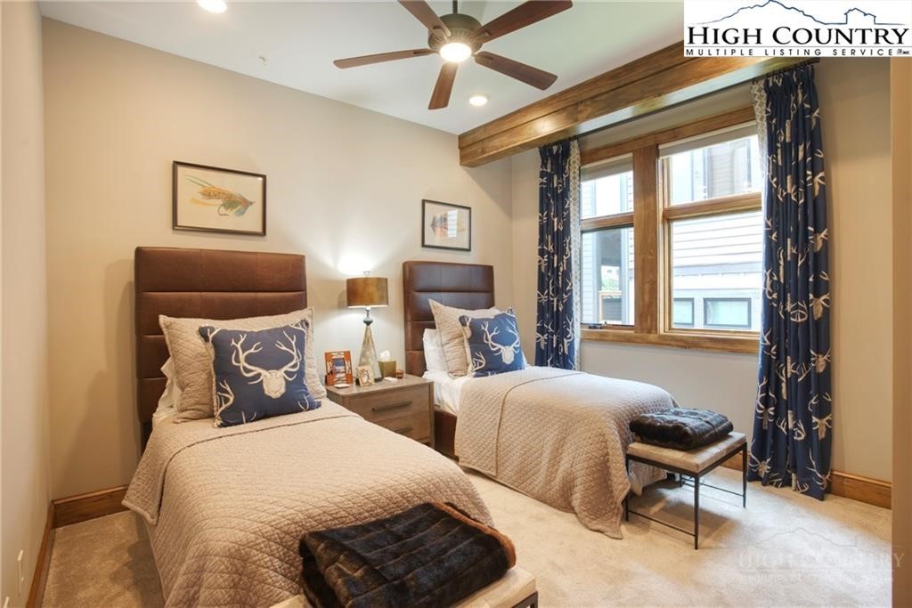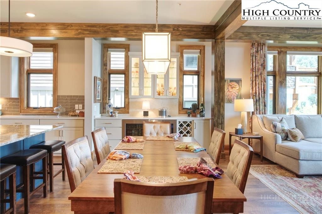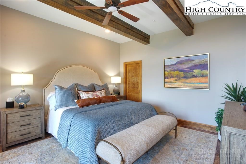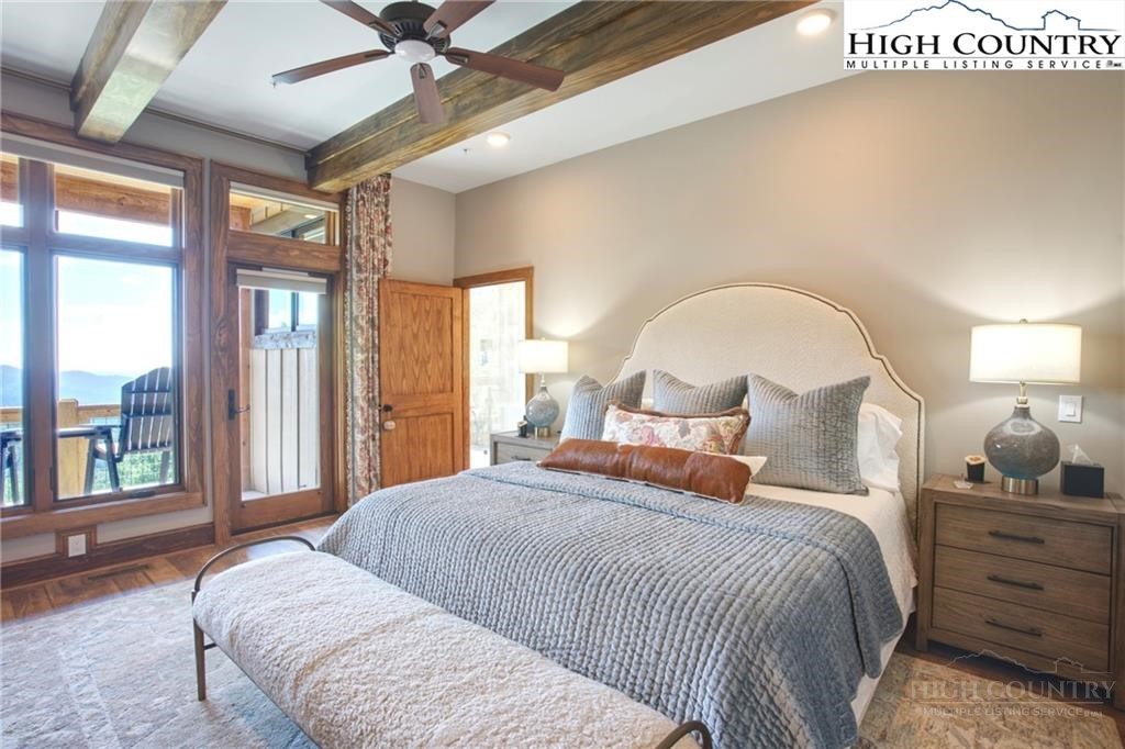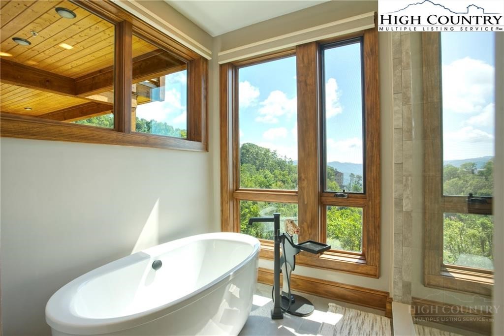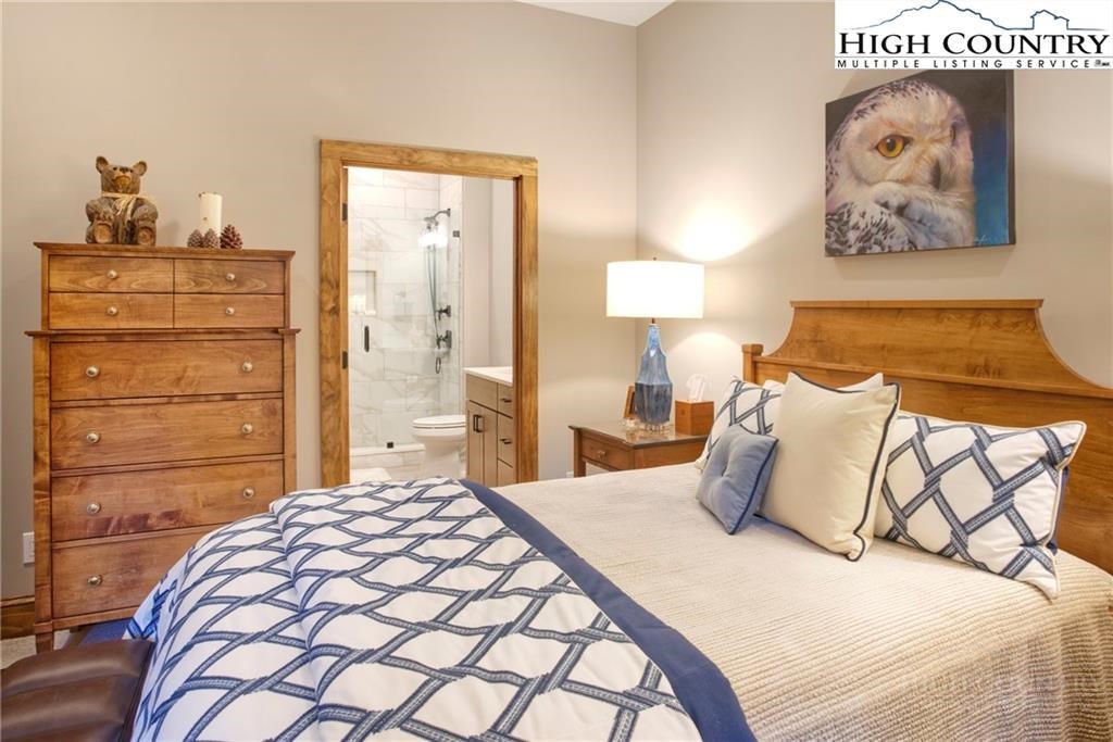 Located less than 4 miles from downtown Blowing Rock, The Bluffs is a gated, maintenance-free community perched atop layered mountain gorges, offering breathtaking long-range views in a serene High Country setting. Architecturally inspired by the Adirondack mountains aesthetic, the buildings feature a harmonious blend of stone textures, timber frame accents, and neutral materials designed to complement the natural surroundings. The unit has 9' ceilings and a custom built in bar plus newly added cabinetry in the laundry room. Spacious bedrooms and bathrooms, ensuring your guest will feel like they're at a 5 star resort. Long range layered views from the primary bedroom and bath. The large deck with built in features like a gas grill and fireplace will provide hours of relaxation and an amazing settings for meals and entertaining.