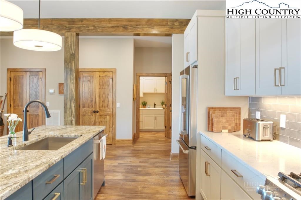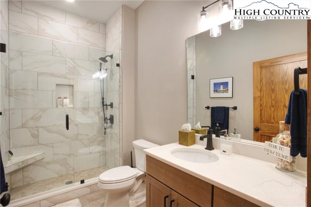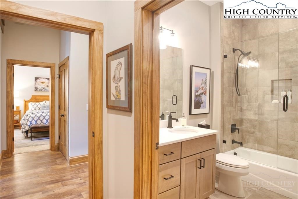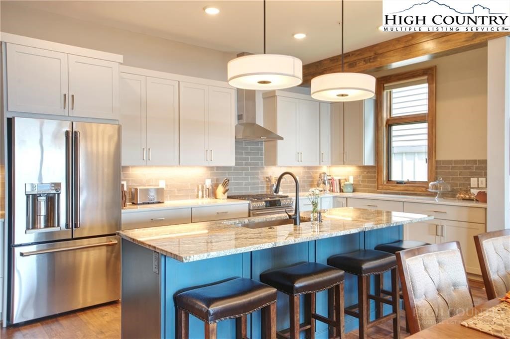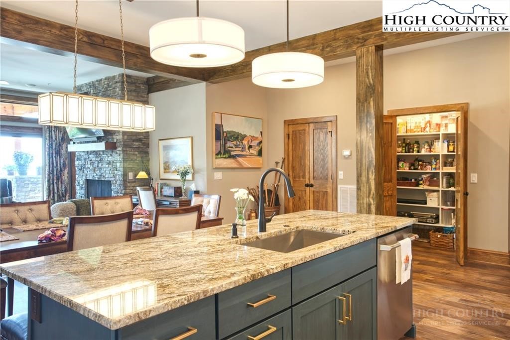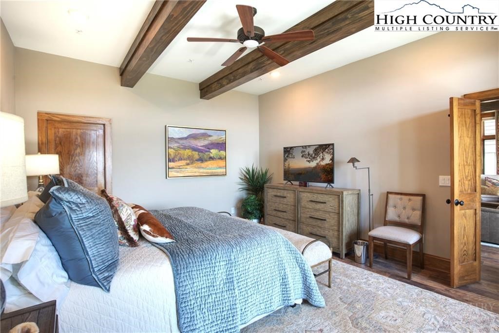 Located less than 4 miles from downtown Blowing Rock, The Bluffs is a gated, maintenance-free community perched atop layered mountain gorges, offering breathtaking long-range views in a serene High Country setting. Architecturally inspired by the Adirondack mountains aesthetic, the buildings feature a harmonious blend of stone textures, timber frame accents, and neutral materials designed to complement the natural surroundings. The unit has 9' ceilings and a custom built in bar plus newly added cabinetry in the laundry room. Spacious bedrooms and bathrooms, ensuring your guest will feel like they're at a 5 star resort. Long range layered views from the primary bedroom and bath. The large deck with built in features like a gas grill and fireplace will provide hours of relaxation and an amazing settings for meals and entertaining.