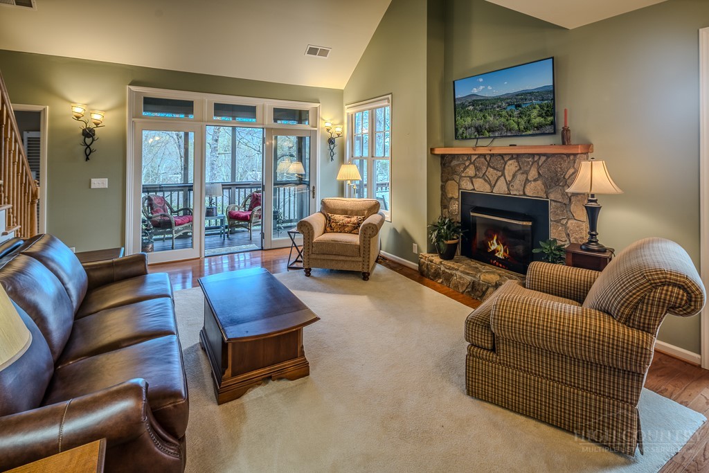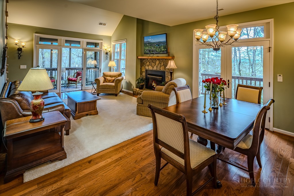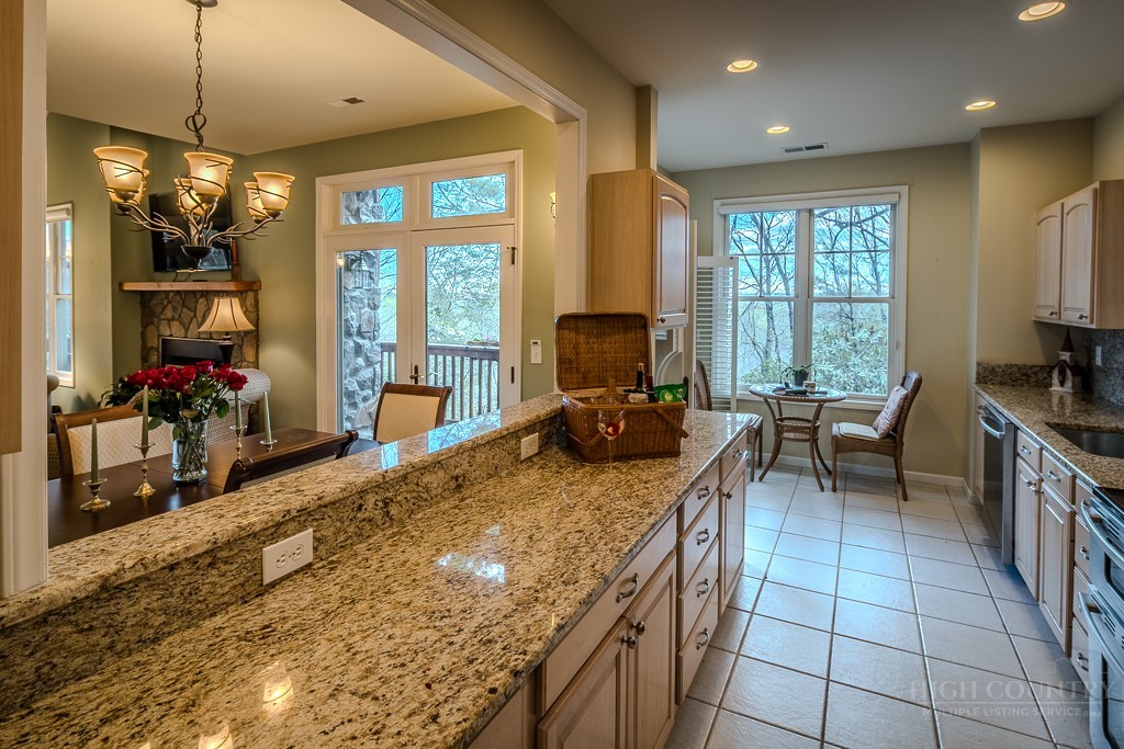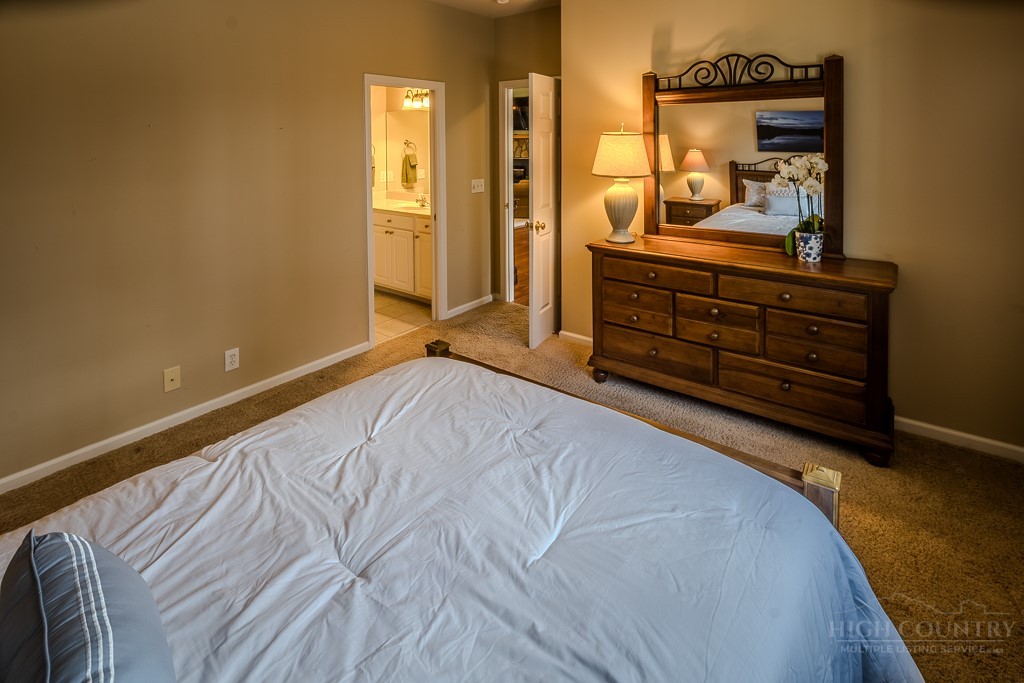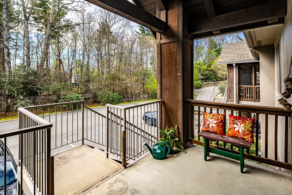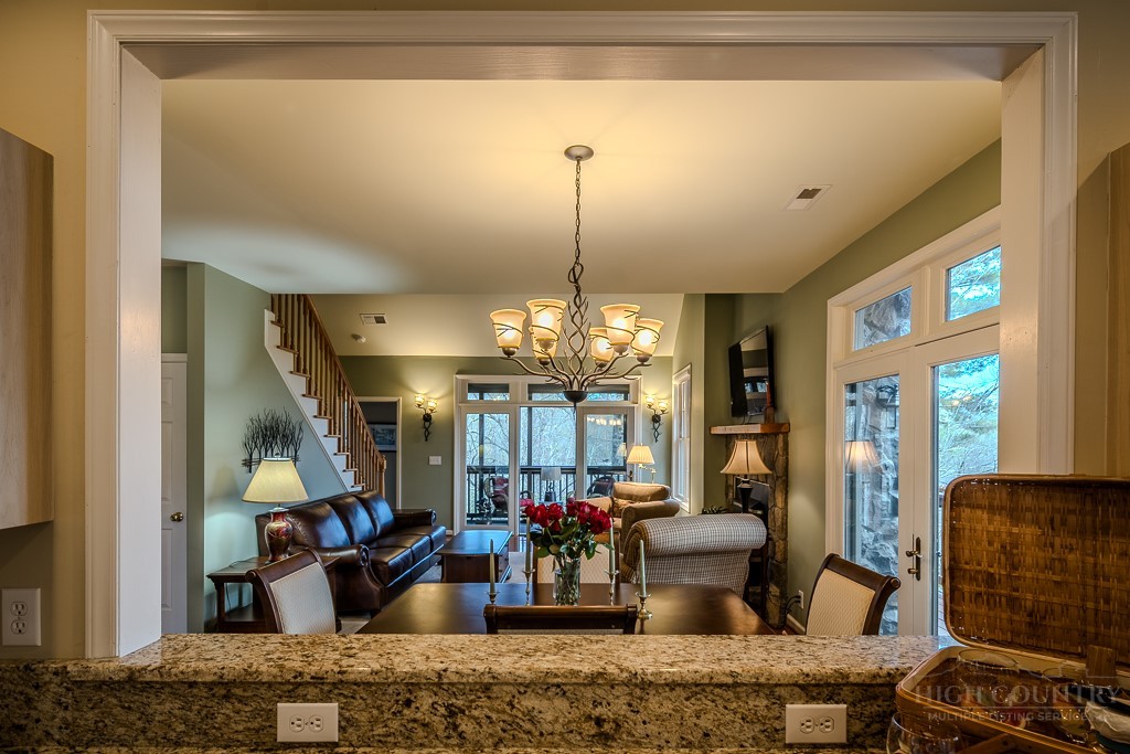 Easy living at The Cones Condos located across the street from Bass Lake and Moses Cone National Park. Walk to town and enjoy restaurants and shopping of mountain village life in Blowing Rock. Walk up stairs to upper unit tranquility. Open floor plan. Kitchen has granite countertops and stainless steel appliances. Primary ensuite bedroom is located in the back corner. Double vanity, bathtub and separate shower in the primary bathroom. Screened and open porches to enjoy the cool weather mountain breezes and a game of mahjong. Second bedroom is also ensuite. Laundry on the main floor. Upstairs is the third bedroom loft and bathroom. HVAC in and outdoor units were installed in 2024. New water heater in 2019. Under new management with a 24/7 communication portal. South-facing. Well cared for and fully furnished. Grab your keys and head up the mountain to enjoy this turn-key condo!