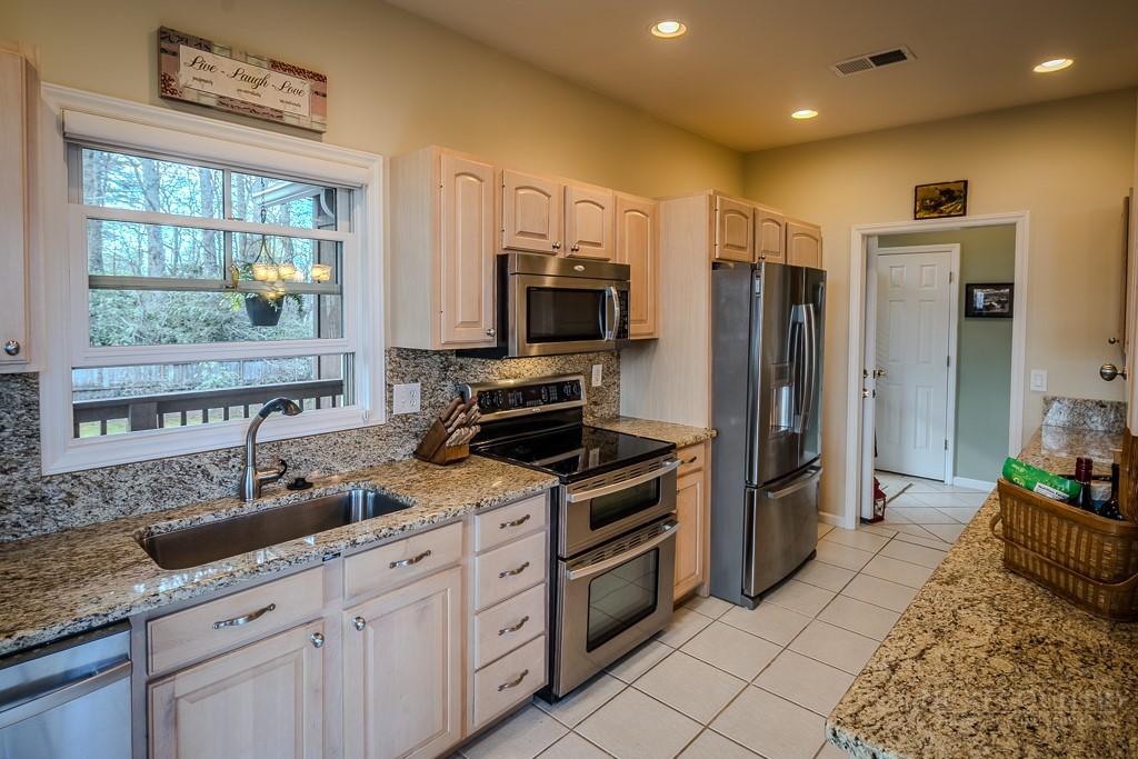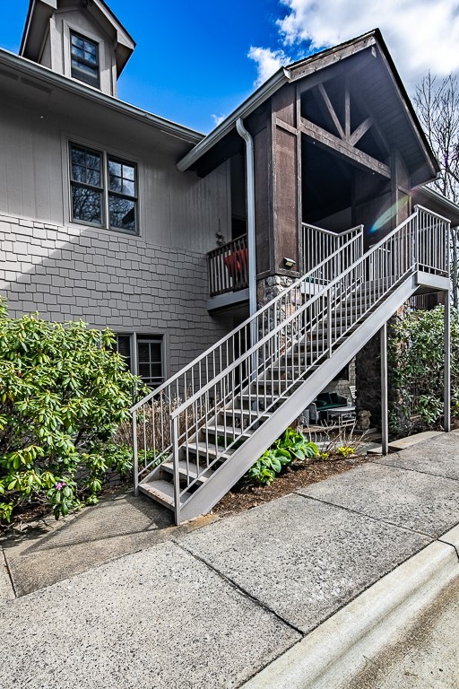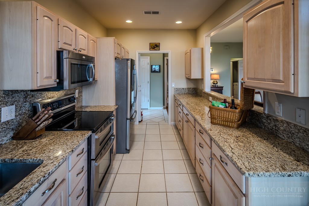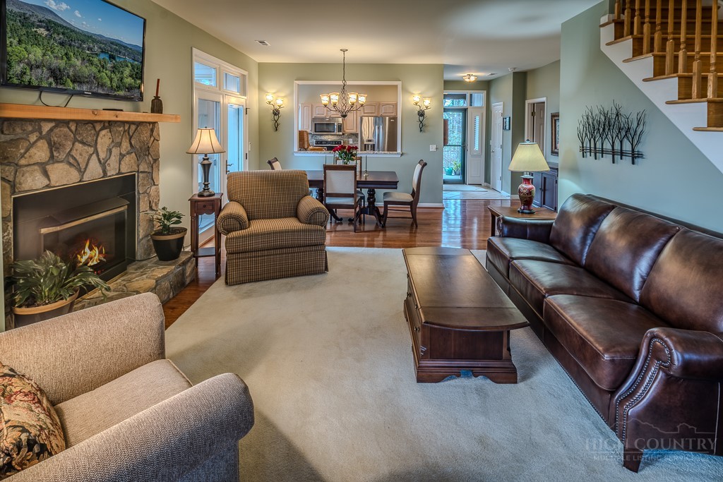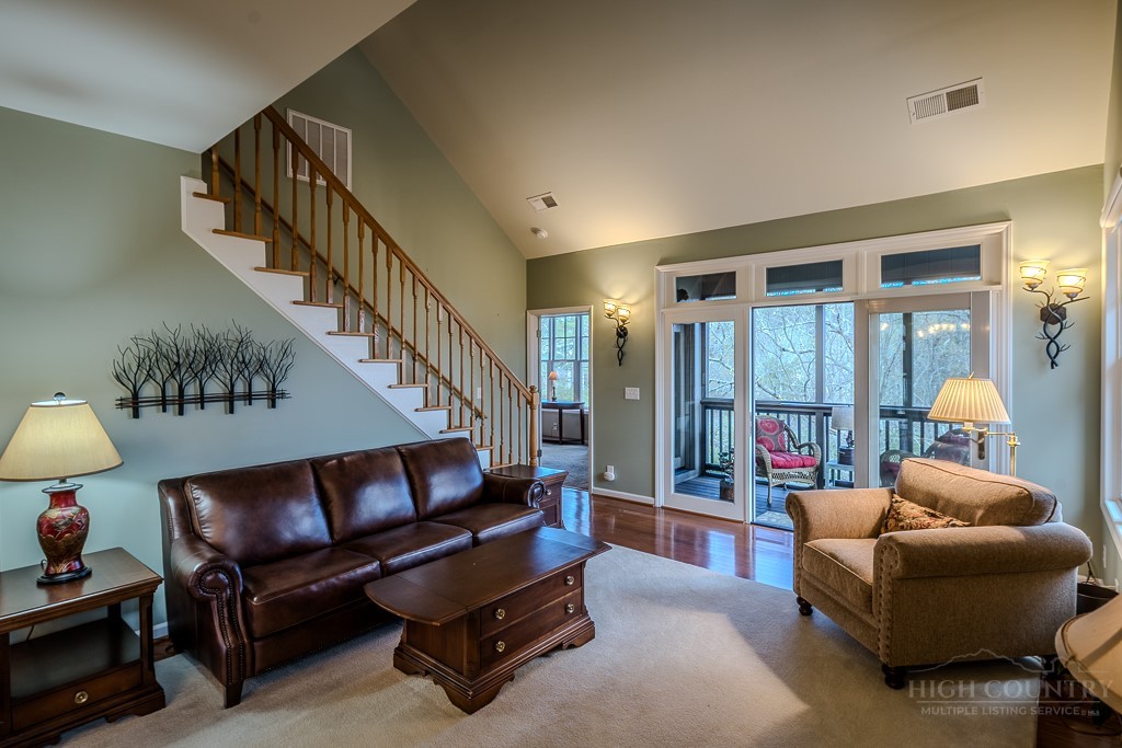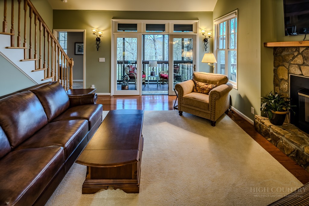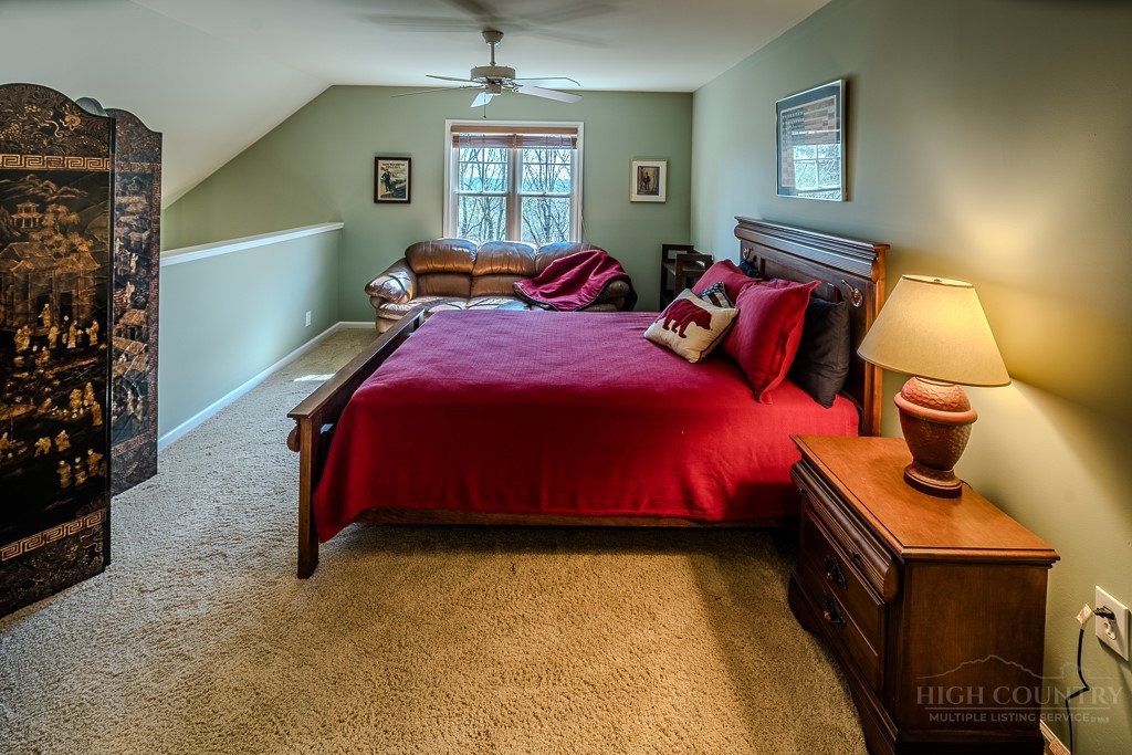 Easy living at The Cones Condos located across the street from Bass Lake and Moses Cone National Park. Walk to town and enjoy restaurants and shopping of mountain village life in Blowing Rock. Walk up stairs to upper unit tranquility. Open floor plan. Kitchen has granite countertops and stainless steel appliances. Primary ensuite bedroom is located in the back corner. Double vanity, bathtub and separate shower in the primary bathroom. Screened and open porches to enjoy the cool weather mountain breezes and a game of mahjong. Second bedroom is also ensuite. Laundry on the main floor. Upstairs is the third bedroom loft and bathroom. HVAC in and outdoor units were installed in 2024. New water heater in 2019. Under new management with a 24/7 communication portal. South-facing. Well cared for and fully furnished. Grab your keys and head up the mountain to enjoy this turn-key condo!