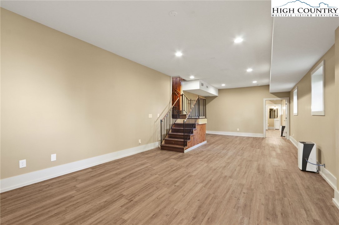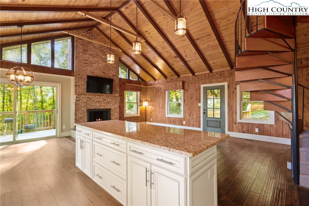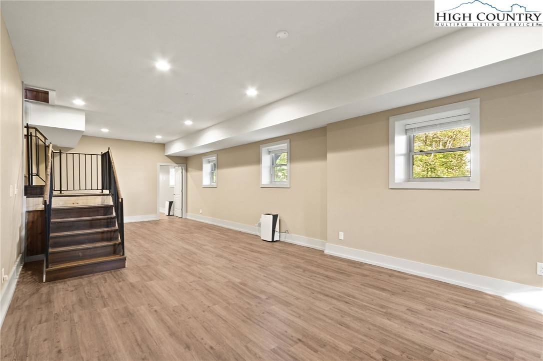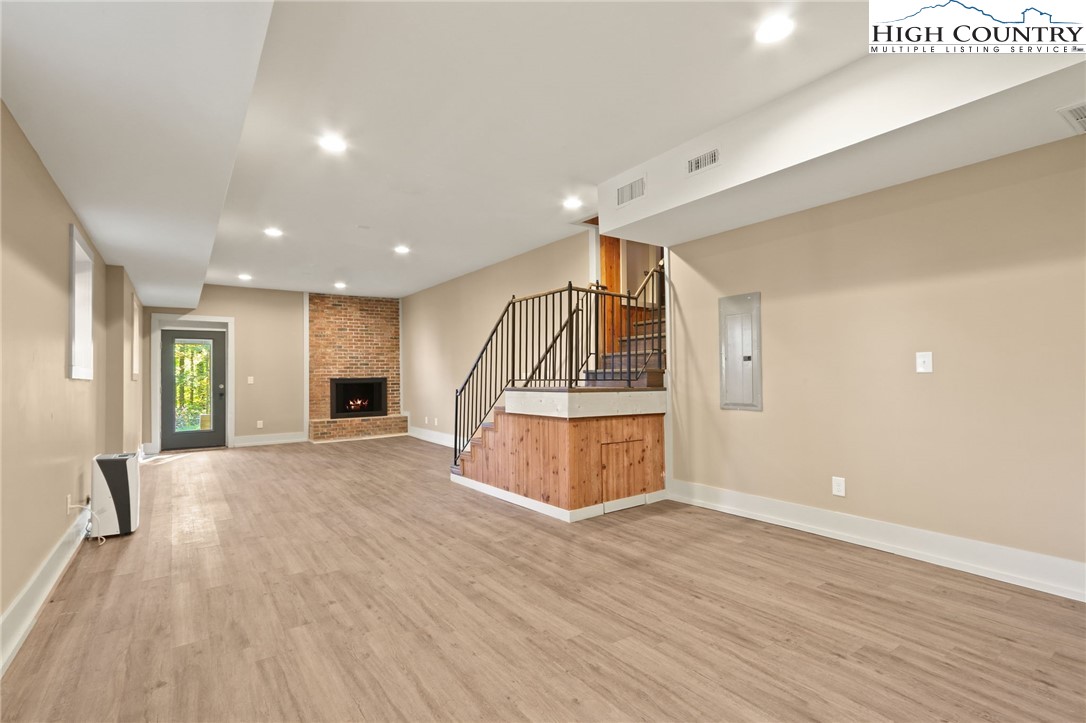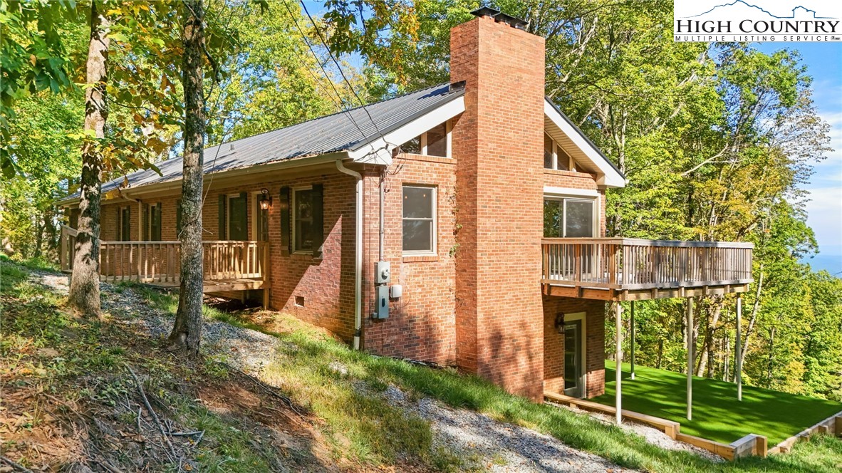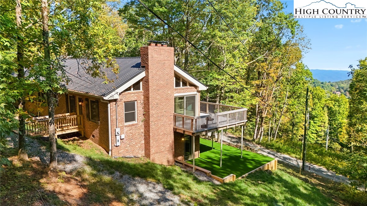 This spacious, recently renovated mountain brick ranch offers the perfect blend of comfort, charm, and convenience just minutes from Boone. Perched beside the top of Rocky Knob Mountain Bike Park and situated in the sought-after Parkway School District, the home enjoys a prime location for outdoor enthusiasts and families alike. Originally built in the 1970s, the home has been thoughtfully updated while preserving its classic character. Inside, soaring vaulted ceilings and an open-concept kitchen and living area create an airy, inviting space filled with natural light. Step out onto the expansive deck to soak in long-range mountain views or unwind on the lower turf patio surrounded by nature. The main level features a spacious primary suite with a laundry nook, a second bedroom, a flexible bonus room, and a charming loft with low ceilings, perfect for children. Downstairs, the finished basement offers additional living space, featuring a large family room, another bonus room, and a convenient half bath. Modern upgrades, including spray foam insulation, replacement windows, a sealed crawlspace, and an efficient heat pump system, ensure year-round comfort and energy savings in this beautifully reimagined mountain retreat.