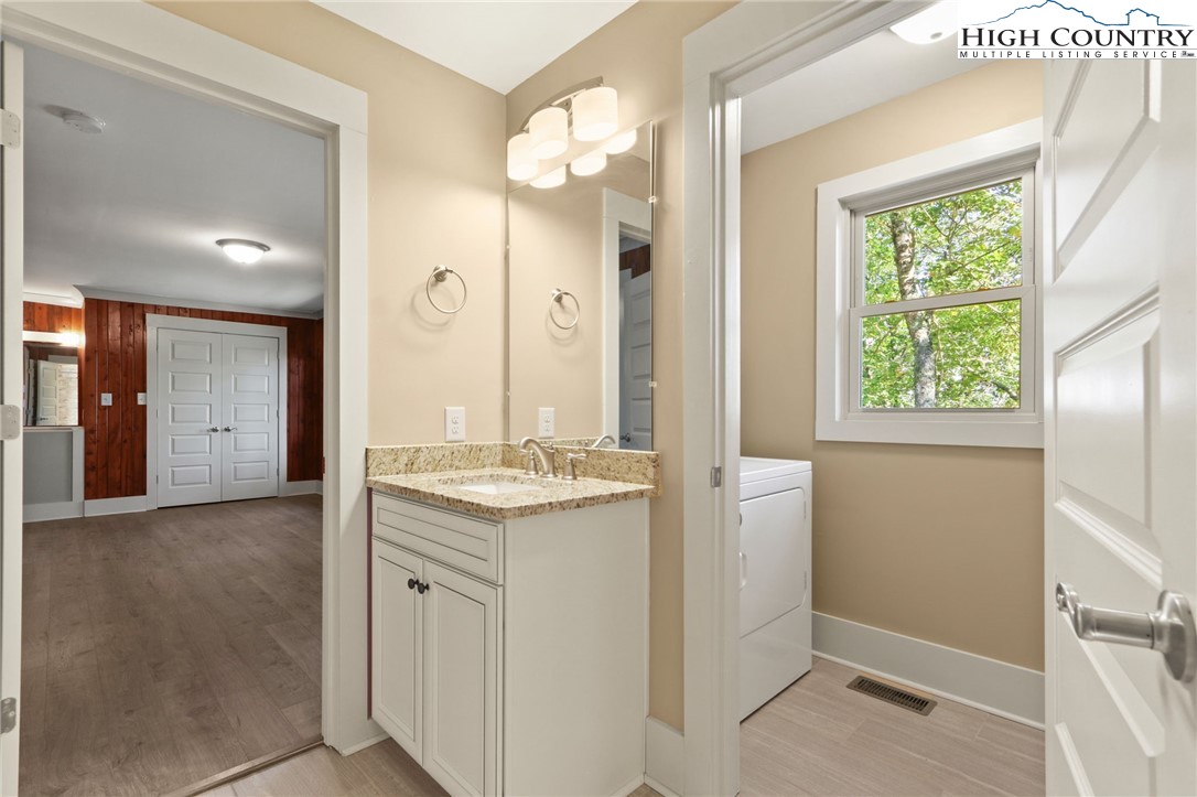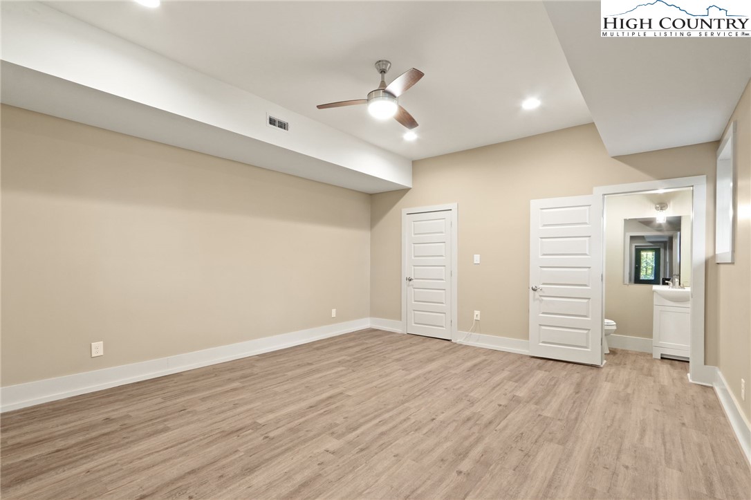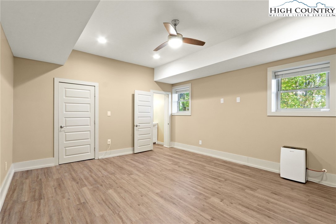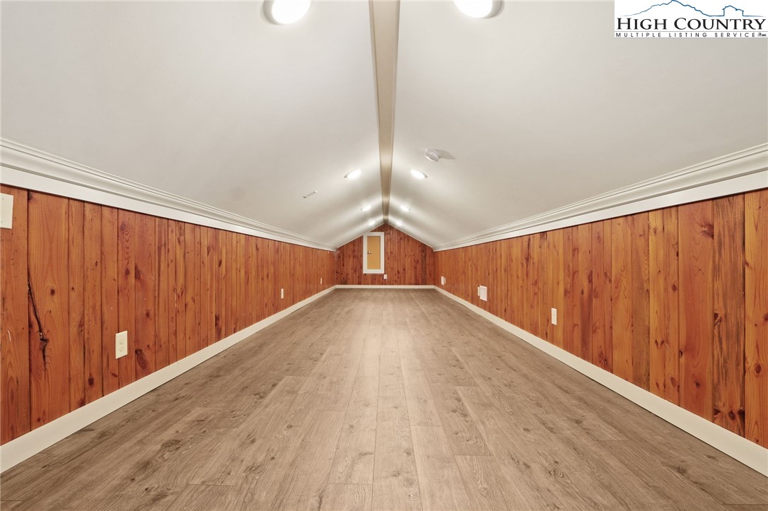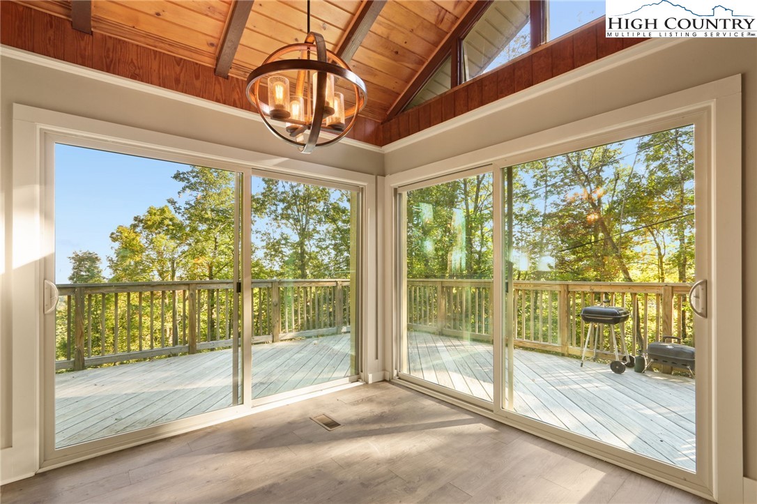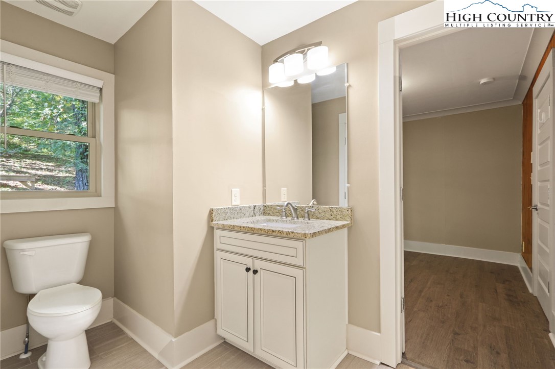 This spacious, recently renovated mountain brick ranch offers the perfect blend of comfort, charm, and convenience just minutes from Boone. Perched beside the top of Rocky Knob Mountain Bike Park and situated in the sought-after Parkway School District, the home enjoys a prime location for outdoor enthusiasts and families alike. Originally built in the 1970s, the home has been thoughtfully updated while preserving its classic character. Inside, soaring vaulted ceilings and an open-concept kitchen and living area create an airy, inviting space filled with natural light. Step out onto the expansive deck to soak in long-range mountain views or unwind on the lower turf patio surrounded by nature. The main level features a spacious primary suite with a laundry nook, a second bedroom, a flexible bonus room, and a charming loft with low ceilings, perfect for children. Downstairs, the finished basement offers additional living space, featuring a large family room, another bonus room, and a convenient half bath. Modern upgrades, including spray foam insulation, replacement windows, a sealed crawlspace, and an efficient heat pump system, ensure year-round comfort and energy savings in this beautifully reimagined mountain retreat.