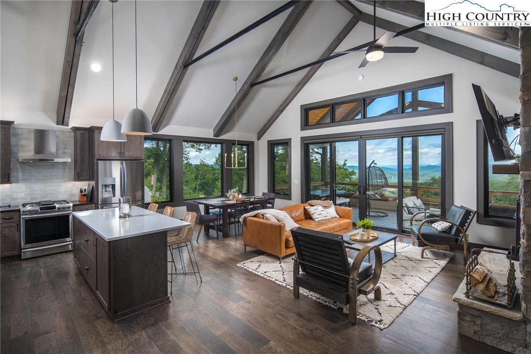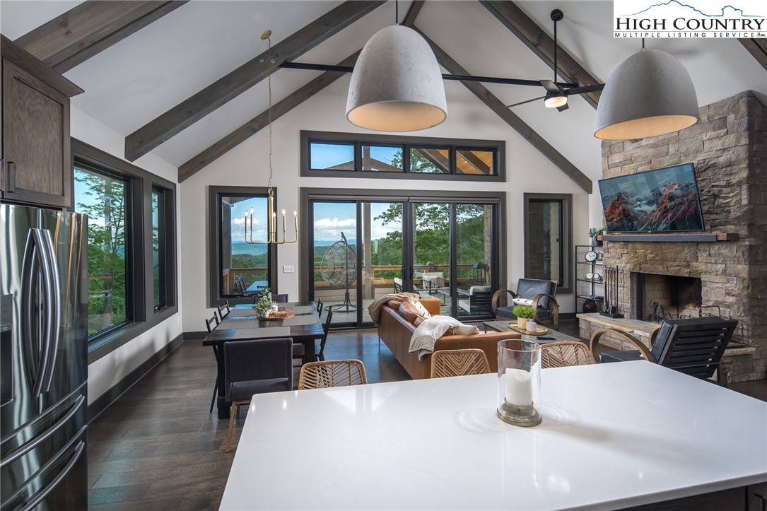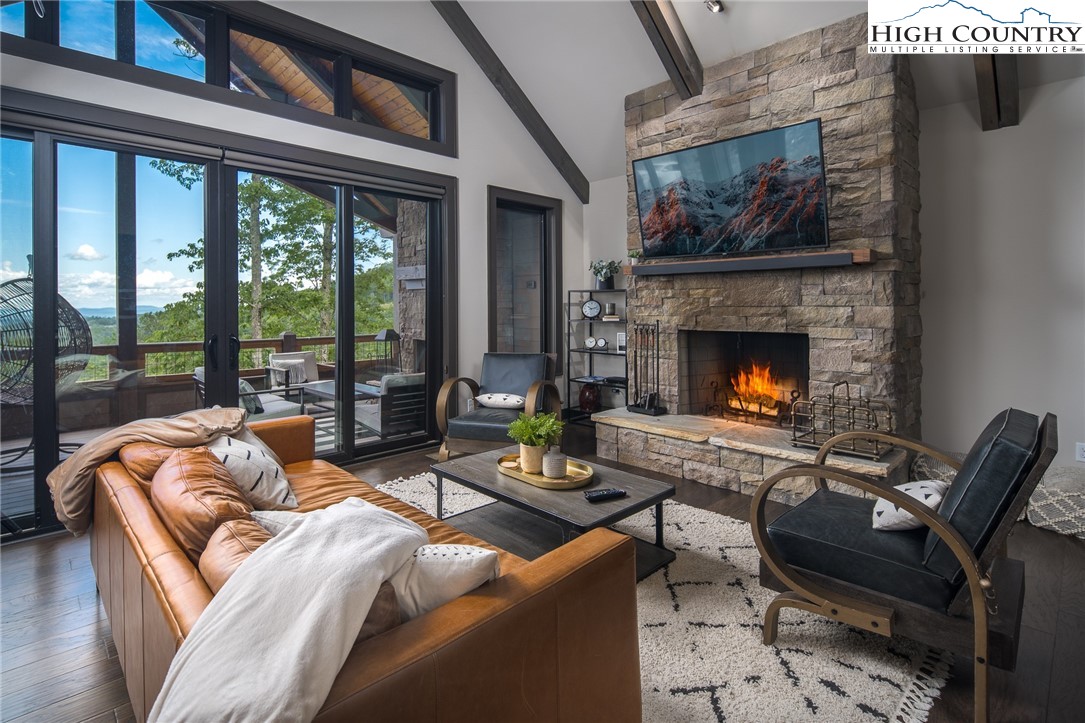 Welcome home to 137 Sweetspire Lane located in the Yadkin Point Neighborhood in Blue Ridge Mountain Club. Modern mountain elegance abounds in this exquisite home. Charming, warm, and inviting with 2 separate living areas, one car garage game room, ample outdoor living space, hot tub (not shown), floor to ceiling windows and all with incredible Blue Ridge Mountain views. Featuring a stunning interior stone fireplaces as well as a bonus outdoor wood burning fireplace, this home is 4-season living at its best. Offering three private retreats creates an escape and solace as you need it. 137 Sweetspire Lane delivers a luxury lifestyle just steps from a world of adventure. Offered furnished and available to short term rent should you so choose. Add to this an outdoor, adventure-forward lifestyle with premier amenities. This is truly beauty from the outside in. BRMC amenities include Ascent Wellness and Fitness Center, Lookout Grill, Jasper House, Watson Gap Park (Featuring Pickleball Courts, Bocce Ball, and Horse Shoe) as well as Chetola Sporting Reserve and, The Meadows Village (Featuring stunning Mountain Side Pool, Pickleball Courts, Pavilion and Great Lawn). For the nature lover, nearly 50 miles of hiking/UTV trails, tucked swimming holes, pure mountain streams, and a 6,000 acres backyard are waiting for your exploration. BRMC’s national park-like setting and elevated amenities create the perfect blend of retreat, rewind, and recreation. 137 Sweetspire Lane awaits you in Blue Ridge Mountain Club, a premier mountain community, where a life-well lived is yours.