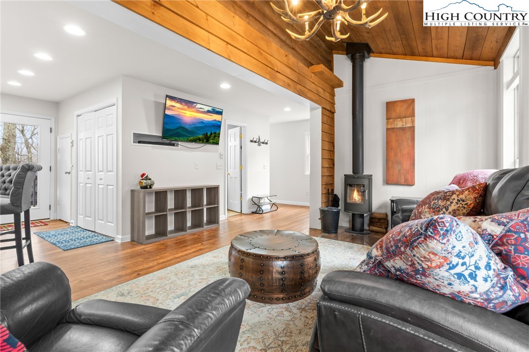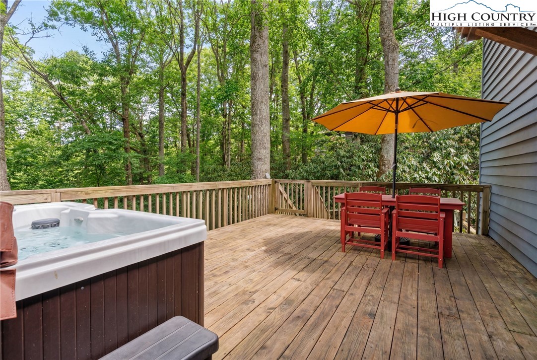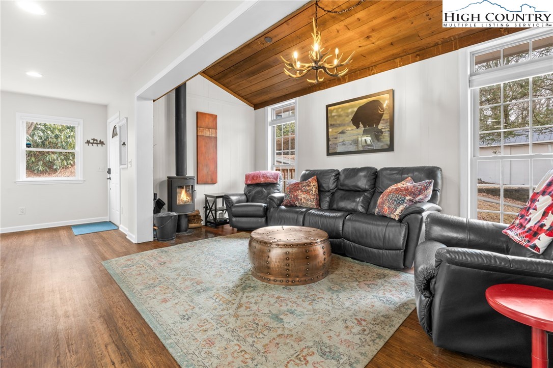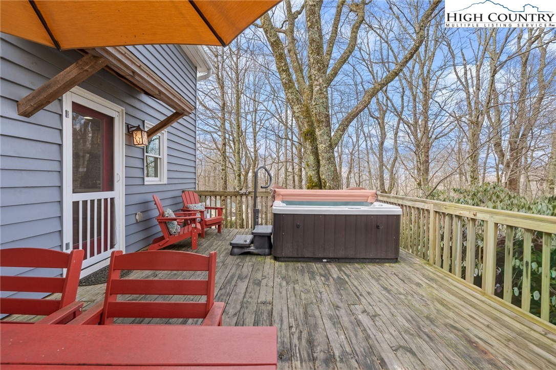 This delightful cottage in Blowing Rock is the perfect mountain getaway! Situated just 2 miles from downtown Blowing Rock and only a mile from the stunning Blue Ridge Parkway, its location is ideal for those eager to soak in the beauty of the Appalachian Mountains. As you enter, you're welcomed into a warm, inviting atmosphere that transitions seamlessly from the living room to the kitchen. The spacious layout is enhanced by a Morso wood stove, which brings a cozy mountain charm and is perfect for chilly evenings. With an abundance of windows, natural light pours into the space, creating a bright and uplifting ambiance. On the main floor, you'll find a thoughtfully designed kitchen featuring all-new painted cabinets and a butcher-block-centered island, perfect for meal prep and social gatherings. A full bathroom adds convenience, alongside a laundry area that boosts the home's functionality. Step out onto the large back deck, where you can unwind in the hot tub or fire up the grill, and there's a fenced-in backyard for your furry companions—making it an excellent spot for entertaining or simply enjoying the tranquility of warmer days. Venture upstairs to discover two cozy bedrooms, each equipped with plenty of closet space for comfort. A shared en suite conveniently connects both rooms, enhancing practicality. This property not only serves as a lovely escape but also generates impressive rental income as a short-term investment, providing a fantastic opportunity to earn while enjoying your mountain retreat. It comes turn-key and fully furnished, ready for you or your guests to enjoy from day one!