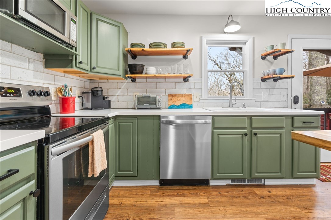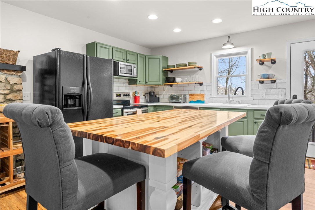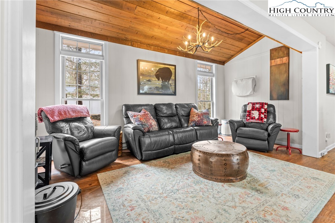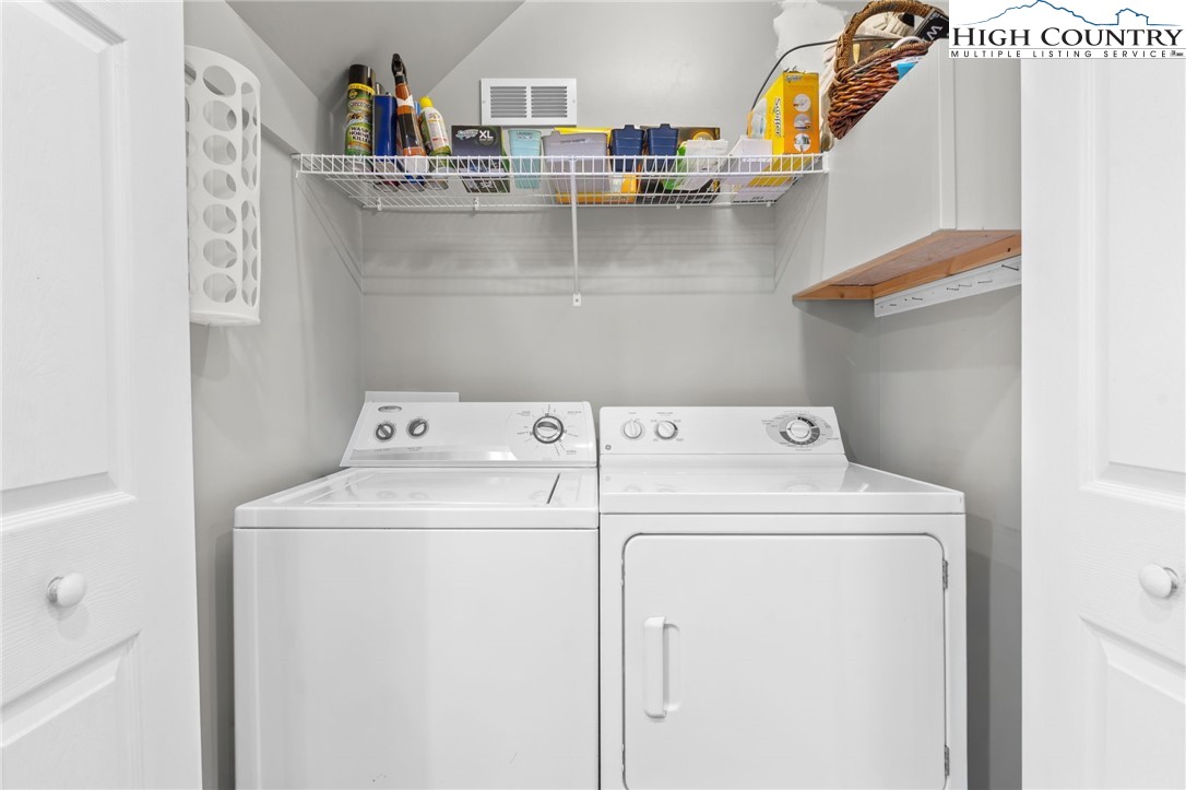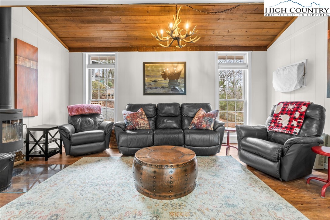 This delightful cottage in Blowing Rock is the perfect mountain getaway! Situated just 2 miles from downtown Blowing Rock and only a mile from the stunning Blue Ridge Parkway, its location is ideal for those eager to soak in the beauty of the Appalachian Mountains. As you enter, you're welcomed into a warm, inviting atmosphere that transitions seamlessly from the living room to the kitchen. The spacious layout is enhanced by a Morso wood stove, which brings a cozy mountain charm and is perfect for chilly evenings. With an abundance of windows, natural light pours into the space, creating a bright and uplifting ambiance. On the main floor, you'll find a thoughtfully designed kitchen featuring all-new painted cabinets and a butcher-block-centered island, perfect for meal prep and social gatherings. A full bathroom adds convenience, alongside a laundry area that boosts the home's functionality. Step out onto the large back deck, where you can unwind in the hot tub or fire up the grill, and there's a fenced-in backyard for your furry companions—making it an excellent spot for entertaining or simply enjoying the tranquility of warmer days. Venture upstairs to discover two cozy bedrooms, each equipped with plenty of closet space for comfort. A shared en suite conveniently connects both rooms, enhancing practicality. This property not only serves as a lovely escape but also generates impressive rental income as a short-term investment, providing a fantastic opportunity to earn while enjoying your mountain retreat. It comes turn-key and fully furnished, ready for you or your guests to enjoy from day one!