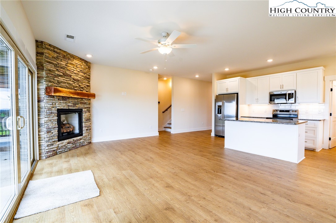 New construction 3 Bedroom 2-1/2 bath home with fantastic long range views, at The Coves Mountain River Club. Built by Moss Marlow Building Co. The Cottages at The Coves is a cluster of 12 patio homes, located just below the clubhouse. This home is one of two remaining lots at The Cottages. Ensuite Primary Bedroom and laundry on main level. Open concept living room and kitchen with beautiful stone fireplace and a large kitchen island. The screened porch is a sweet spot to relax and take in views across the valley to mountains beyond. Upstairs, 2 BR, 1 BA. Enjoy views from anywhere in the home, including the screened porch and large concrete deck facing the dramatic views. Lawn maintenance at The Cottages is included with your annual HOA fee. Walk to the clubhouse, only 400 yards away via Overlook trail. The Coves is a 3,200 acre gated community in the Blue Ridge Mountains of North Carolina. There are miles of community exclusive trails to hike, bike, ride horses, or UTVs. There are 5 miles of frontage on the Johns River, with areas to put in and take out your kayak, wade and fish, picnic, or gather round a stone fire pit. The crown jewel of The Coves is the magnificent post and beam constructed clubhouse, Pisgah Lodge, located on one of the highest peaks. There, you'll enjoy a saline pool, fitness center, locker rooms, full kitchen, lending library, pool table, fire pits, wrap around porches, decks, and overlooks to take in 360º views of the Blue Ridge Mountains, South Mountains, and Brushy Mountains. The Coves is a Dark Sky Community, which minimizes light pollution and provides breathtaking star-gazing. Down by the river you can garden your private plot at the Community Garden or join your neighbors to care for and harvest the community cooperative vineyard. Pickle-ball and shuffleboard courts, putting green, and a picnic pavilion are located at another Coves's park, Wyatt's Landing. Additional amenities include 2 Equestrian Centers and a Dog Park. Join your neighbors for social events, excursions, hiking, travel, yoga. *500K acre Pisgah National Forest and the Wilson Creek Wild and Scenic River Area are across the road! 1.25 hour drive to Charlotte or Asheville, minutes to Lenoir, Blowing Rock, Morganton, and the Blue Ridge Parkway.