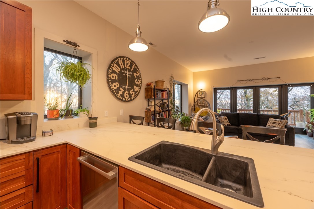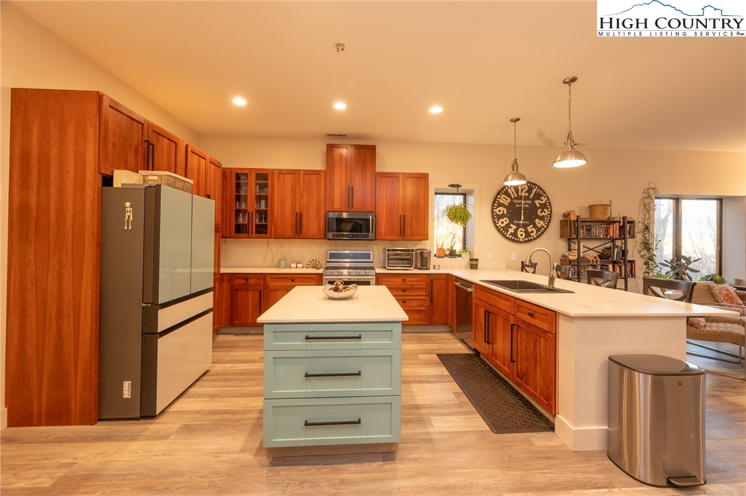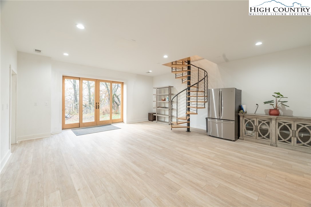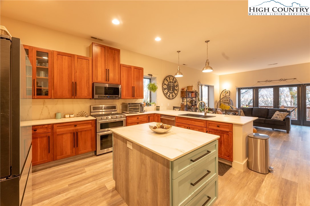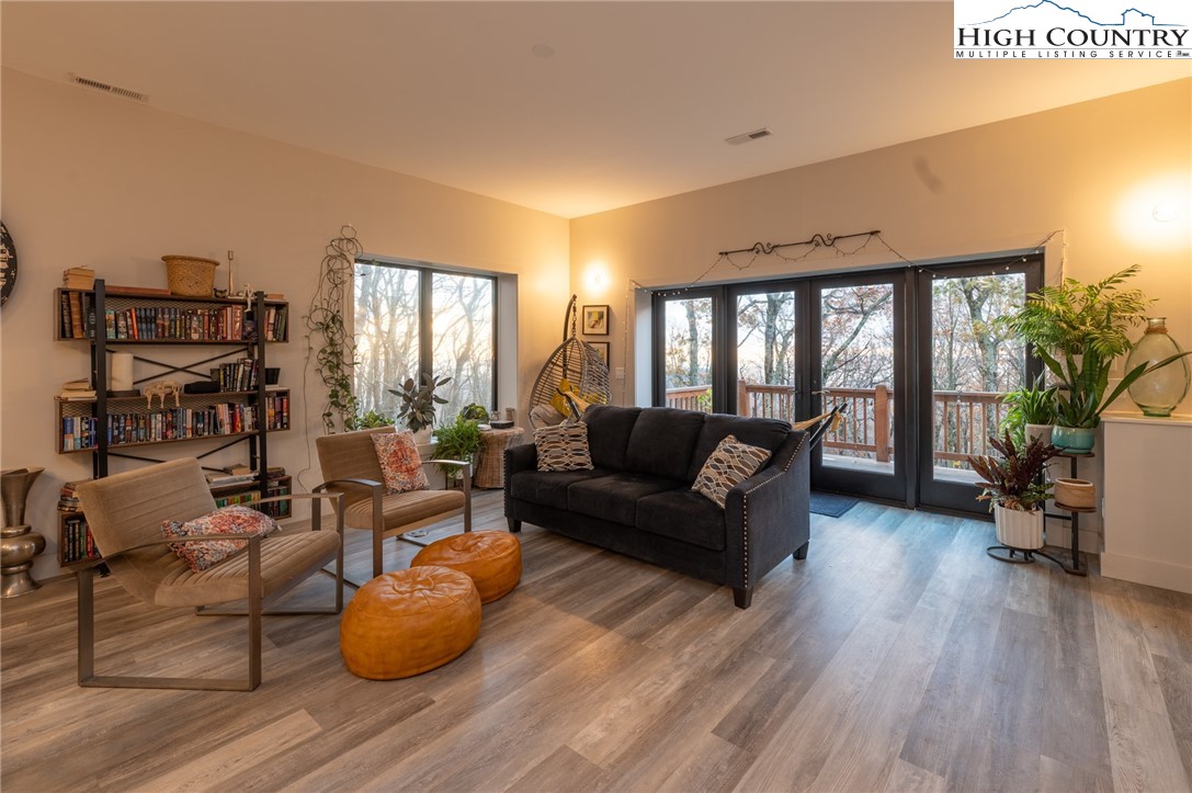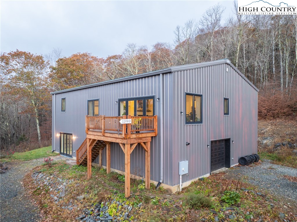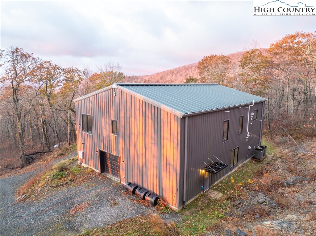 Modern Mountain Barndominium on 21.89 acres with Amazing Views and Privacy at approx 4500 feet in elevation. This 4BR/4BA, Contemporary Mountain Home features an Open floor plan with an abundance of light and space. Large glass doors open into the bright living space featuring a large modern fireplace. The Open Kitchen features stainless steel appliances with all the modern amenities as well as a spacious countertop bar for eating and a kitchen island with extra storage. The master bedroom features a private bath with quartz counters and a modern glass door shower. There is a second bedroom with plenty of closet space and its own personal shower/tub bath. A Convenient laundry room with cabinetry is also located on same level. The front open deck offers a breathtaking panoramic view from the home. There is also ample garage, workshop and office spaces, including a heated finished room with a half bath suite. Two Large garage entrances with one to the large garage/shop and the other one to a smaller bay. This property has 4BR septic permit There is a fantastic building site directly the right of this home - A 2nd septic tank is also installed and on property - ready to build. No Zoning or Restrictions! Included is 2 high quality dual-fuel HVAC systems installed by Mountaineer, one on each level, and an artesian well. Expand your horizons with this Amazing Mountain Living Home and all its Possibilities!