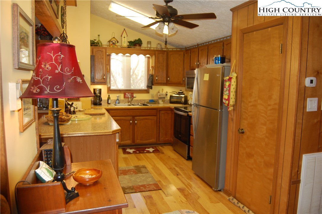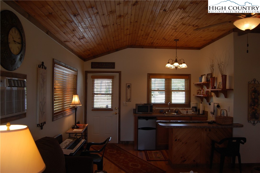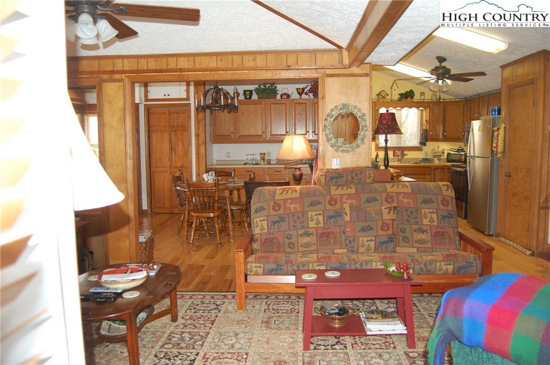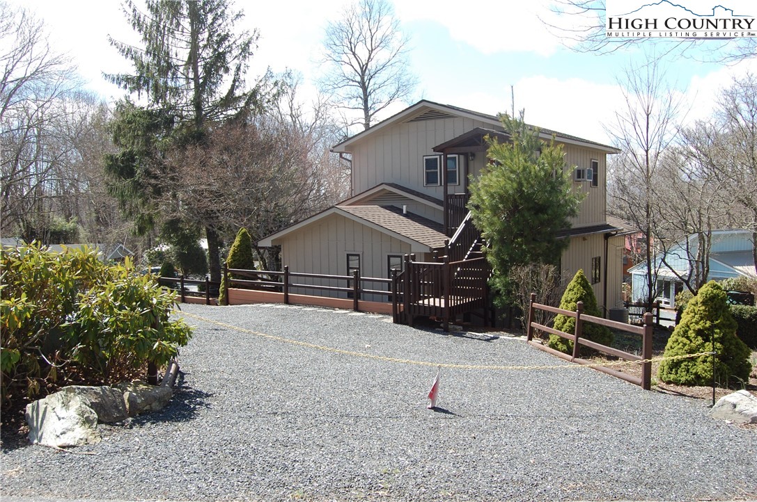 Unique home in the resort community of Linville Land Harbor. Main level great room and kitchen with two bedrooms and two full bath. Separate quarters upstairs with living/sleeping area, cooking facilities and full bath. Great set-up for those who like to have company....but want them in their own space maybe?? Two covered deck/patio for enjoying summer evenings on the mountain. New LP Gas Furnace and AC in 2025. New water heater in 2025. Professionally landscaped grounds and brick patio. Golf Cart storage below...Golf Course and The Patio Grill just minutes away! Land Harbor also has pickleball, tennis, fishing, hiking, outdoor seasonal heated swimming pool and so much more! A truly great all seasons community near all the area has to offer...Grandfather Mountain, Blue Ridge Parkway, Linville Falls Winery, Shopping, Restaurants!!! It is all here for you at Linville Land Harbor.