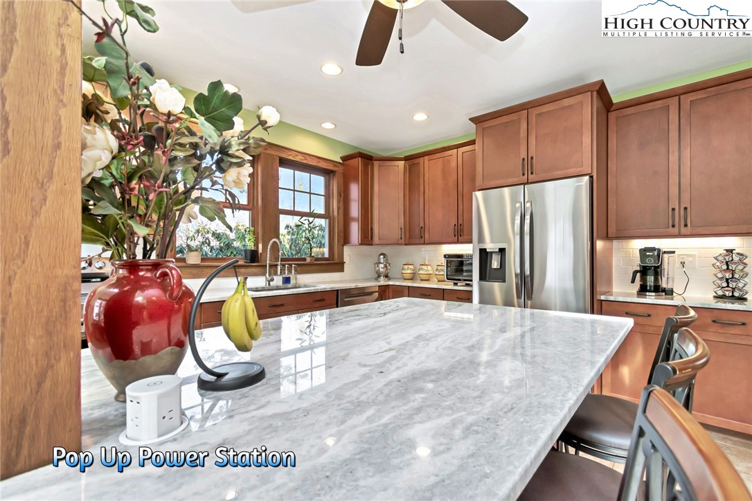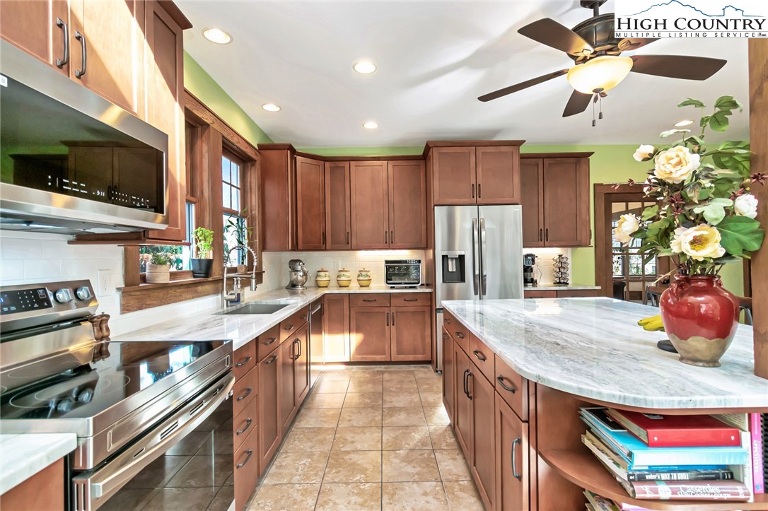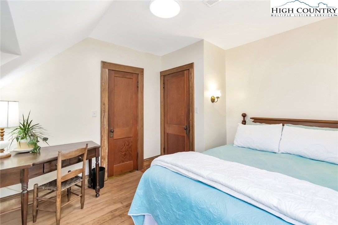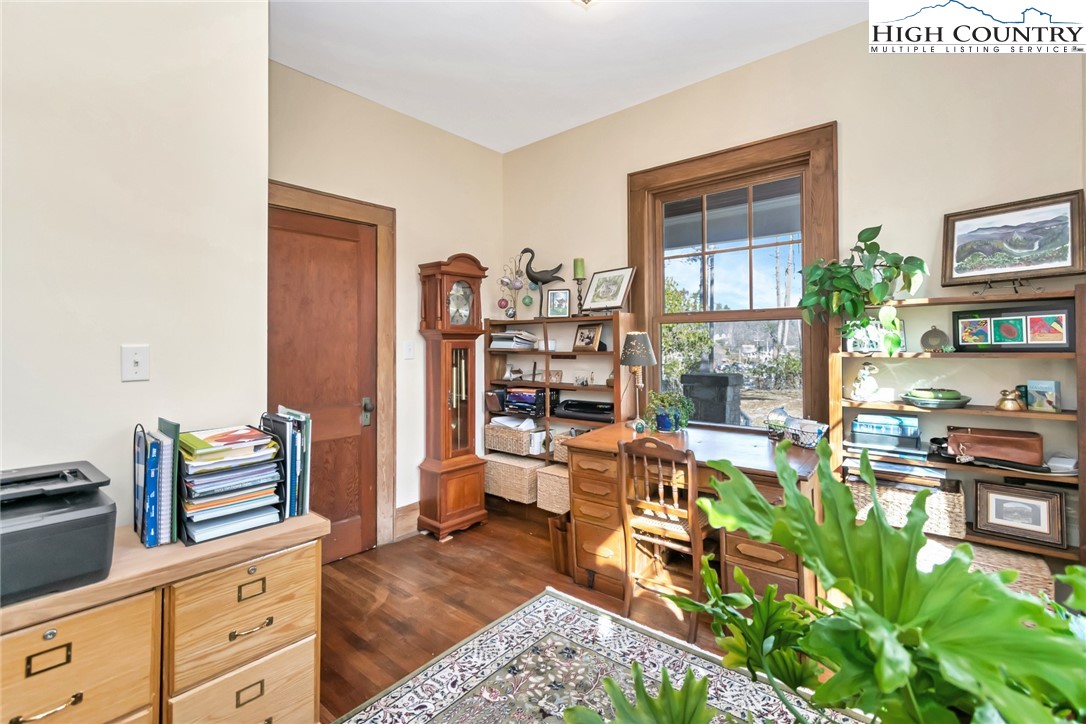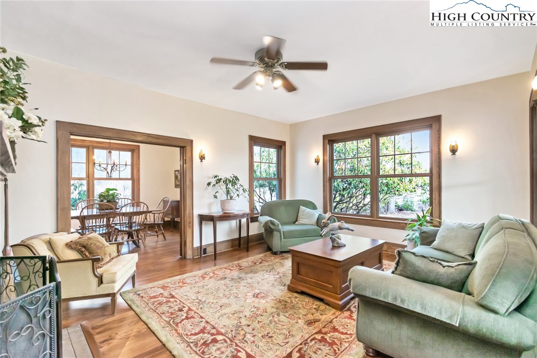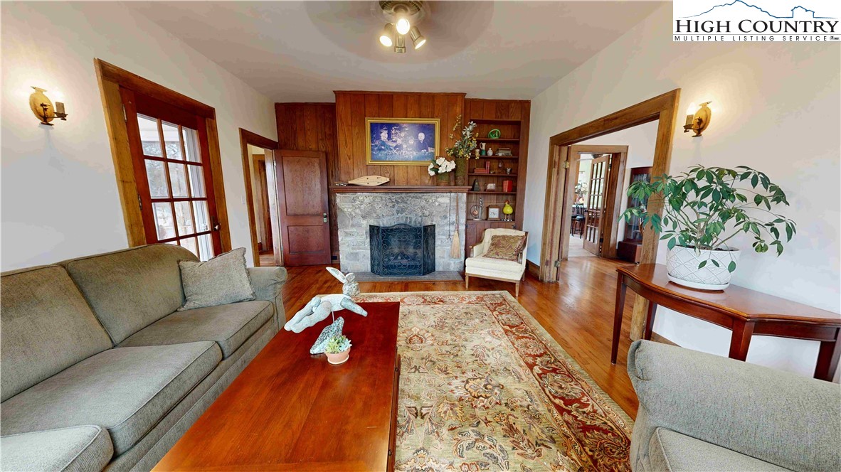 140 Library Lane is an iconic in-town historic estate offering nearly 3 private acres in the heart of Banner Elk. Perfectly positioned just steps from Lees-McRae College and moments from downtown, this rare property combines exceptional privacy, timeless character, and unmatched convenience. Enjoy walkable access to acclaimed dining, boutique shopping, concerts, festivals, and greenway trails, while surrounded by the serenity of mature trees, curated landscaping, and expansive grounds. The 4-bedroom, 3-bath main residence with over 3,700 sq. ft. showcases craftsmanship rarely found today, with original hardwood floors, solid wood doors, wide baseboards, and rich wormy chestnut trim throughout. 3 impressive stone natural gas fireplaces anchor the living spaces and reflect the home’s historic charm. The original parlor offers warmth and character, while the spacious family room with abundant windows provides a welcoming gathering space with stone fireplace and rich wormy chestnut accents. There is an office that could be utilized in other ways on the main level. A formal dining area connects easily to the kitchen, creating ideal flow for entertaining. The kitchen features a stone fireplace, high-level granite countertops, a large island with seating, and generous cabinetry complemented by an impressive pantry with pull-out storage. There is a dining table here overlooking the landscaped yard for casual meals. A full laundry/mudroom with sink & storage provides convenient access to the stone patio and outdoor living areas as well as the garage. Upstairs, four bedrooms offer comfort and flexibility, each with its own character. The spacious primary suite includes a sitting area, office space, 2 walk-in closets, a full bath, enclosed water closet and walk-in shower, creating a private retreat within the home. Thoughtful updates enhance both comfort and efficiency, including updated siding, windows, and a new roof, while preserving the home’s architectural integrity. A beautifully designed deck extends the living space outdoors, overlooking the wooded acreage and providing an ideal setting for quiet relaxation. A fully furnished spacious 1-bedroom, 1-bath apartment with over 750 sq. ft. above the oversized heated 2 car garage offers exceptional versatility for guests, extended family, or rental income. The garage includes an EV-capable outlet, and the attached heated workshop with 220v/45-amp service is ideal for hobbies, wood working, studio use, or professional workspace. Additional storage buildings provide further utility. The nearly 3-acre grounds create a private, park-like setting within town limits, featuring stone patios, covered porches, perennial gardens, rhododendron groves, and open lawn areas. Zoned R-2, the property allows for accessory dwellings and home occupations, with potential rezoning opportunities subject to approval. Properties offering this combination of acreage, historic character, flexibility, and premier location are exceptionally rare. Library Lane is one of Banner Elk’s most desirable in-town settings—quiet, established, and adjacent to Lees-McRae College. Properties of this scale and proximity simply do not come to market often. There is a total of 5 bedrooms and 4 baths with the apartment that is not counted in the total square footage. TOTAL SQ. FT. 4,474!. Properties offering this combination of acreage, historic character, flexibility, and premier location are exceptionally rare.