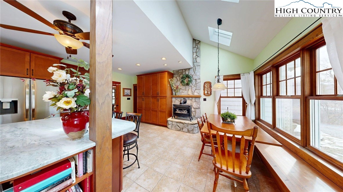 Fireplace: Three, Free Standing, Other, See Remarks, Stone, Vented, Wood Burning, Gas