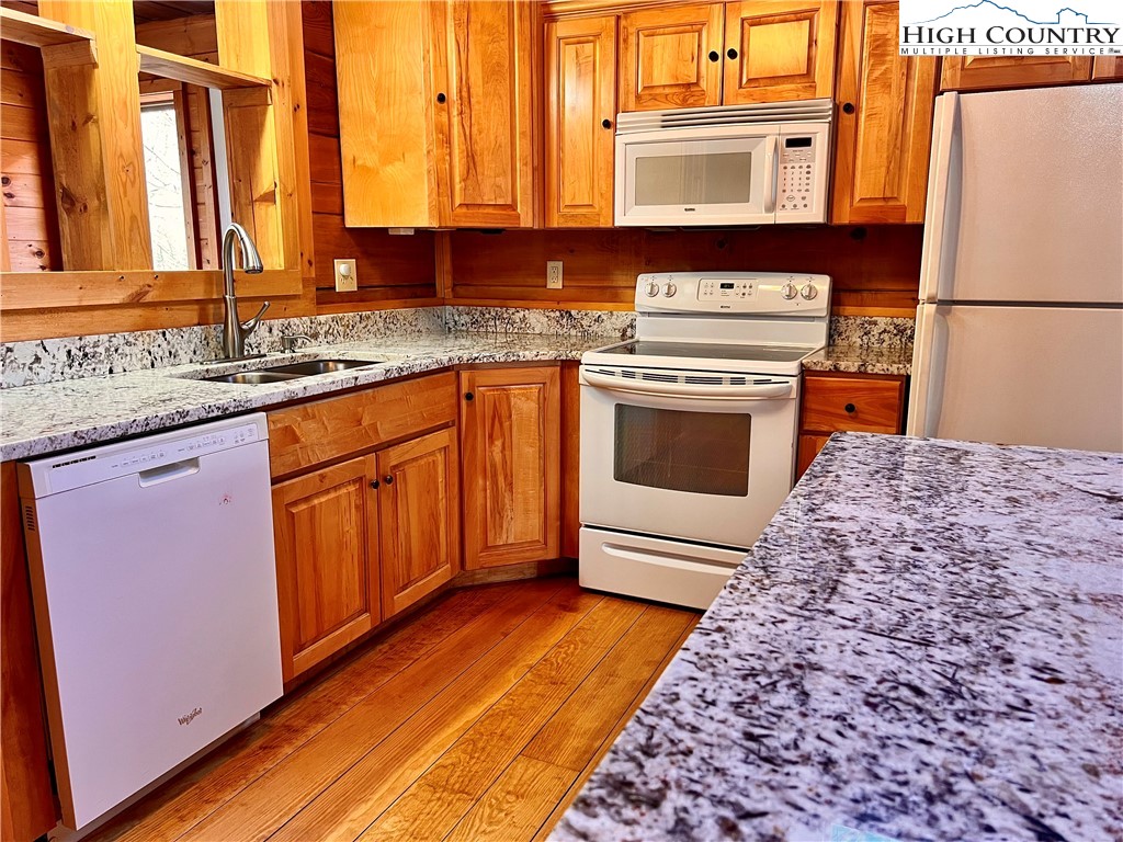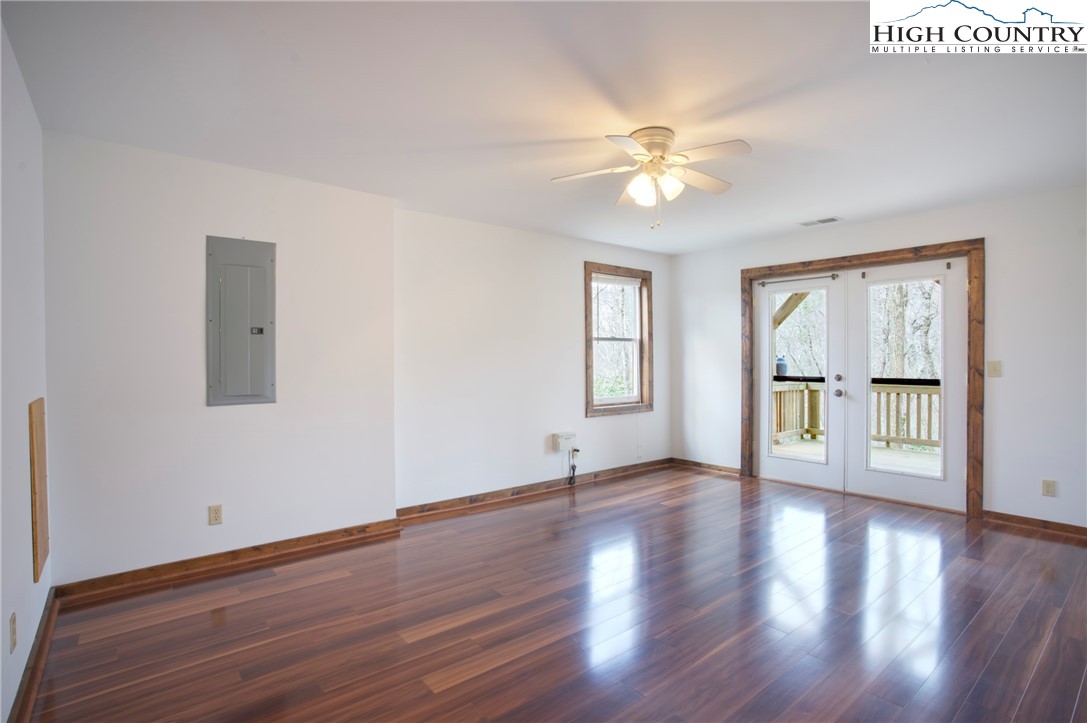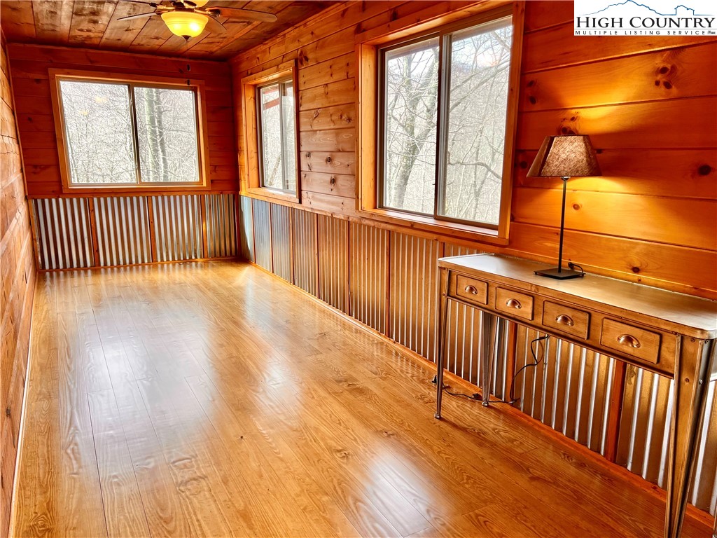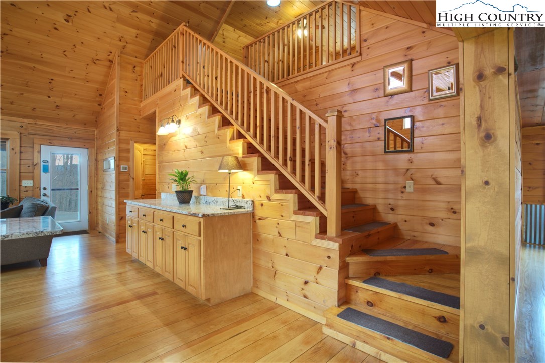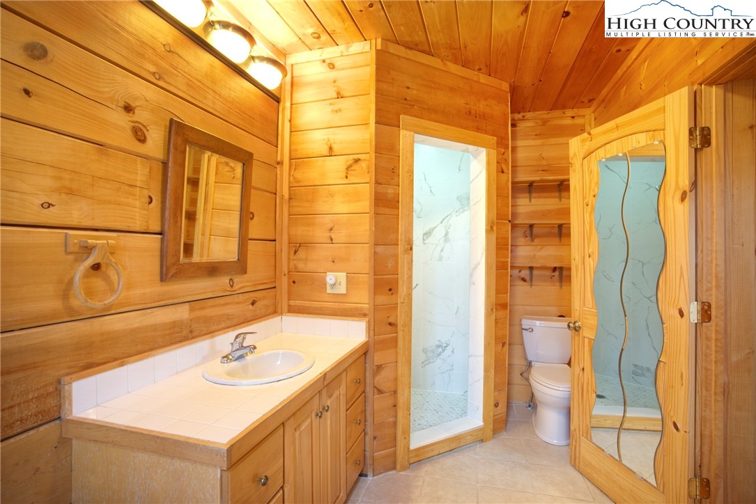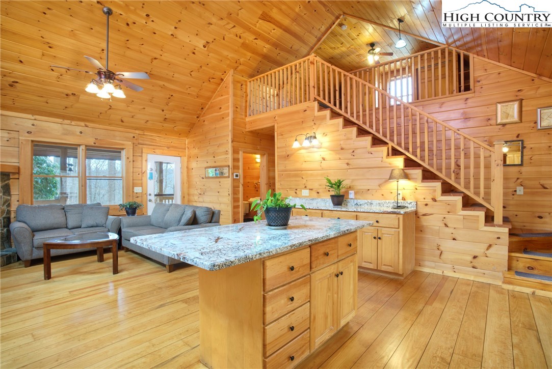 This 2 bedroom, 2.5 bath log cabin sits on just over an acre within a quiet gated community and offers approximately 2,467 square feet of comfortable High Country living at 140 Vixen Den Drive. With seasonal mountain views and the peaceful sound of a creek along the back of the property, this High Country home blends classic log cabin character with thoughtful updates. Located about 10 minutes from Elk Knob State Park, known for some of the High Country's best hiking and panoramic mountain views; plus, a scenic drive from Boone, the home offers a peaceful setting surrounded by nature, privacy, and mountain beauty. Inside, oversized windows bring in abundant natural light, highlighting the recently refinished hardwood floors and warm wood interior. Two fireplaces create inviting gathering spaces for relaxing during cool High Country evenings. The kitchen features granite countertops, a center island with seating, and generous cabinet storage, creating an inviting space for cooking and gathering. Just off the kitchen, a window-lined sunroom with hardwood floors offers a bright and welcoming space for reading, morning coffee, or a quiet workspace. The main-level primary suite offers comfort and convenience with two closets and an armoire providing excellent storage. The ensuite bathroom includes a newly updated tile shower and a jetted soaking tub, creating a comfortable space to unwind at the end of the day. Upstairs, a loft area provides additional storage, closet space, and flexibility for guests, hobbies, or additional sleeping space. The lower level offers additional living space with a bedroom, full bathroom, and a spacious living area that works well for guests or extended stays. This level also includes the laundry room, mechanical room, and access to a lower deck. Outdoor living is just as inviting with a covered front porch that offers a perfect spot for rocking chairs and quiet mountain mornings. A fire pit creates a natural gathering place for evenings outdoors, while perennial gardens throughout the property add color and seasonal interest. A paved driveway and paved parking area provide easy access and convenient parking. The home includes a detached oversized two-car garage and a finished room over the garage of 379 heated square feet, offering flexible space for storage, a workshop, studio, or home office. This additional heated area also provides excellent options for guest overflow, creative projects, or remote work. Located within a quiet gated community, residents enjoy access to an easy walking trail, a community garden just outside the gate, and a pavilion area with fire pit, picnic space, and parking for gatherings. With seasonal mountain views, natural surroundings, and flexible living spaces, this log cabin offers a relaxed High Country setting for full-time living or a mountain getaway.