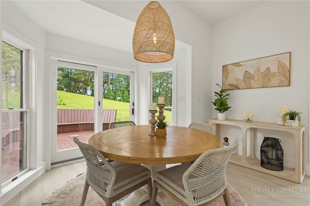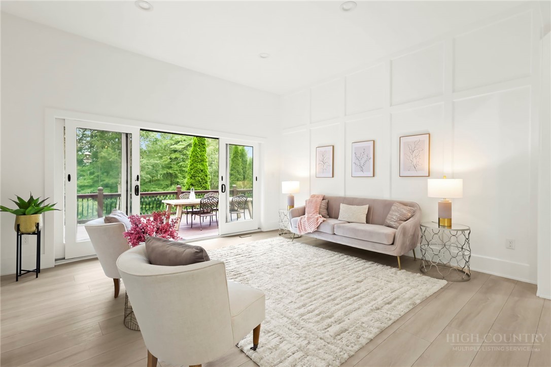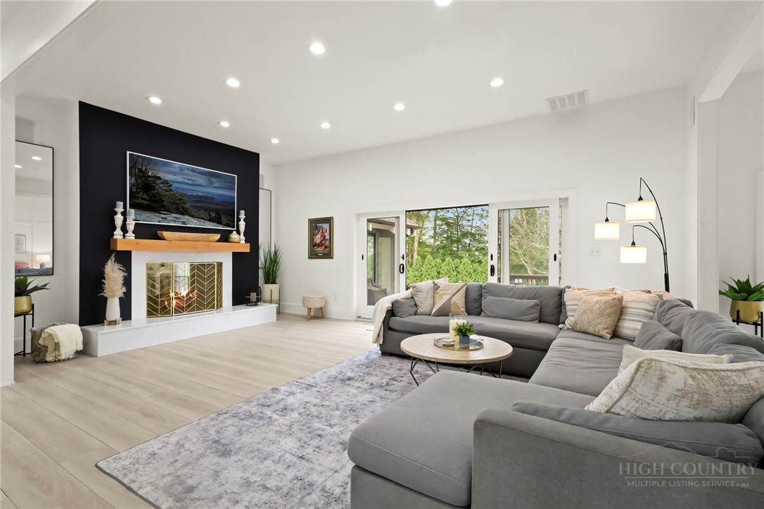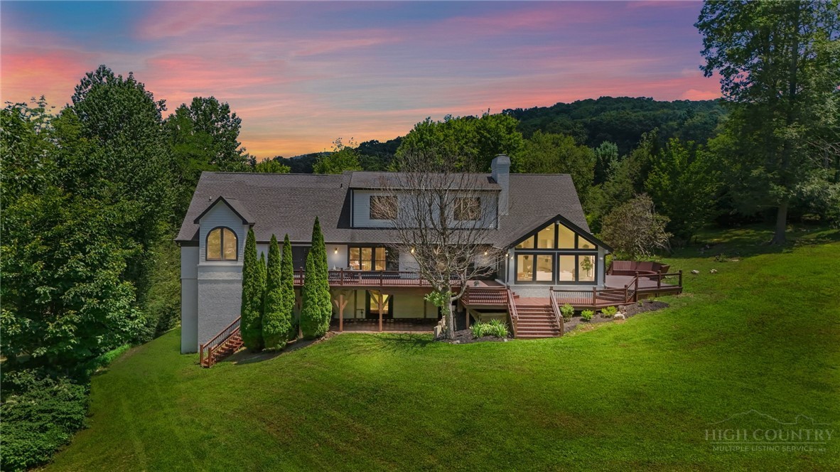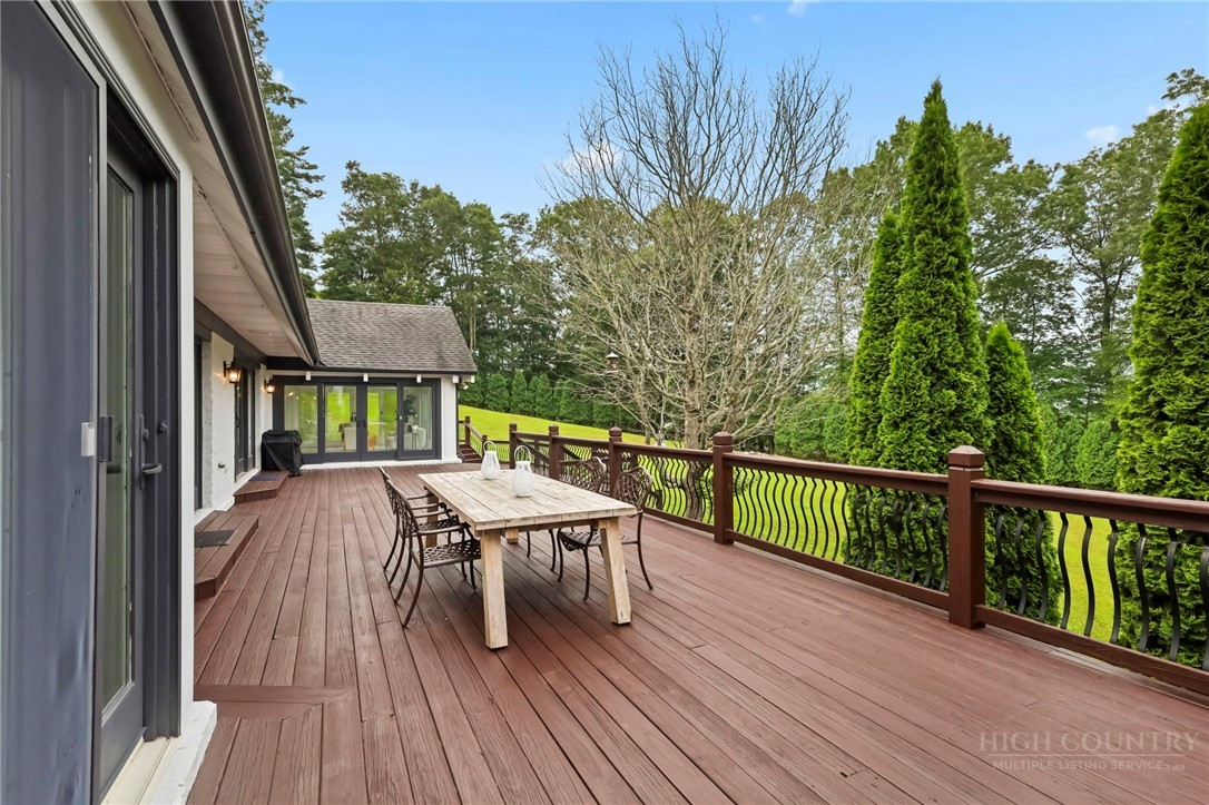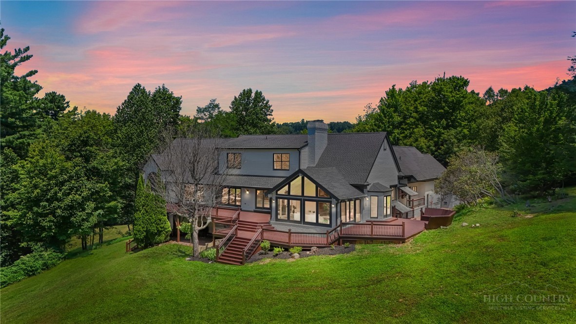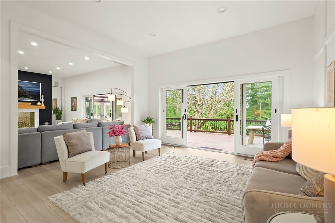 Public Remarks Enjoy peaceful mountain views from this beautifully remodeled contemporary home on 6.84 unrestricted acres in Boone, NC, just minutes from downtown & Watauga Medical Center. This thoughtfully redesigned home offers an open, light-filled main level with spacious living room featuring unique double-sided fireplace connecting to the cozy seating area & remodeled chef’s kitchen. The vaulted sunroom beyond creates a perfect spot to relax or entertain. The main floor also includes an inviting primary suite with large walk-in shower & fireplace in the bath. Upstairs, discover 2 bedrooms with Jack & Jill bathroom & versatile bonus area. The lower level expands living options with 3 additional bedrooms, full bathroom, large game room, home theater, & over 1,100 sq ft of garage/storage space. Multiple expansive decks, opening to peaceful acreage—ideal for outdoor gatherings & soaking in the natural beauty of mountain living with no restrictions. STR are permitted. Furnishings negotiable. There are few cables of stairwell railing that need adjustment/repair and 4 windows with blown seals. Seller has estimate for window glass repair.