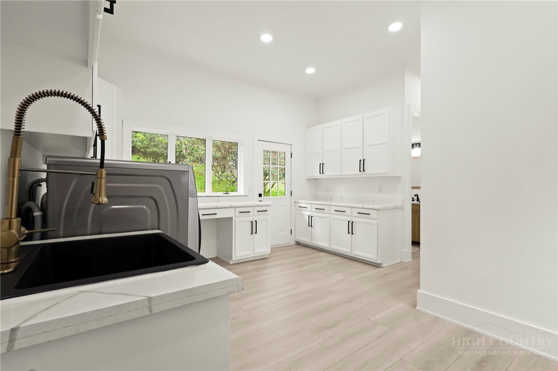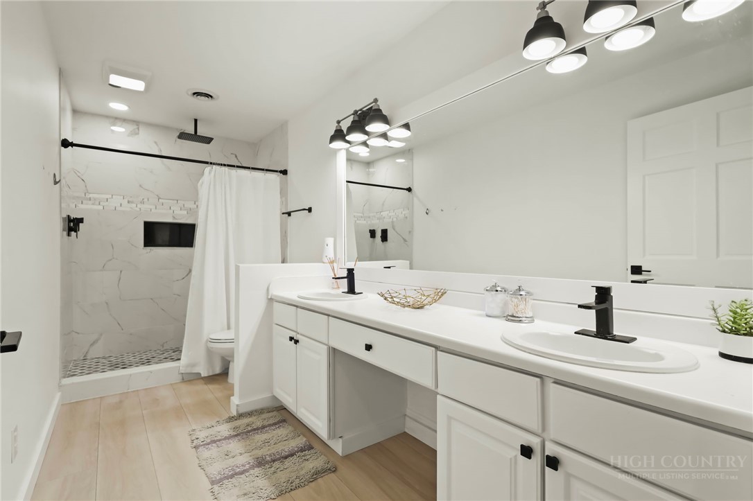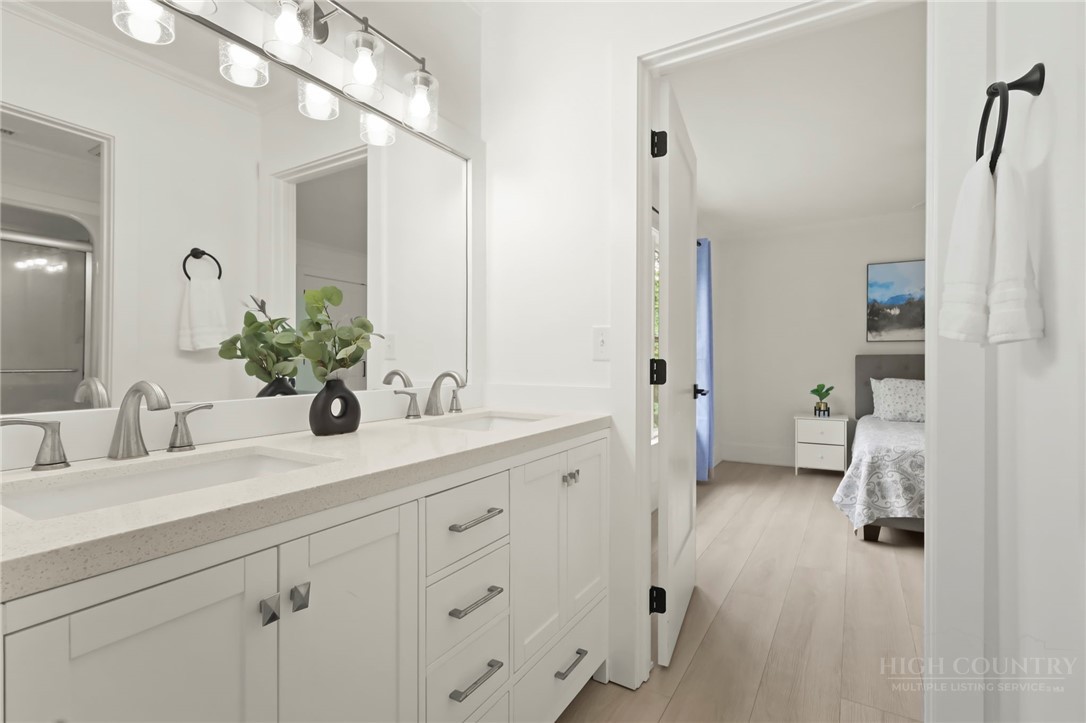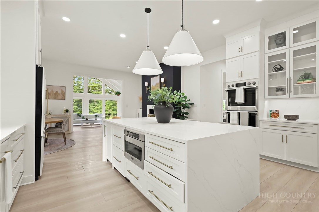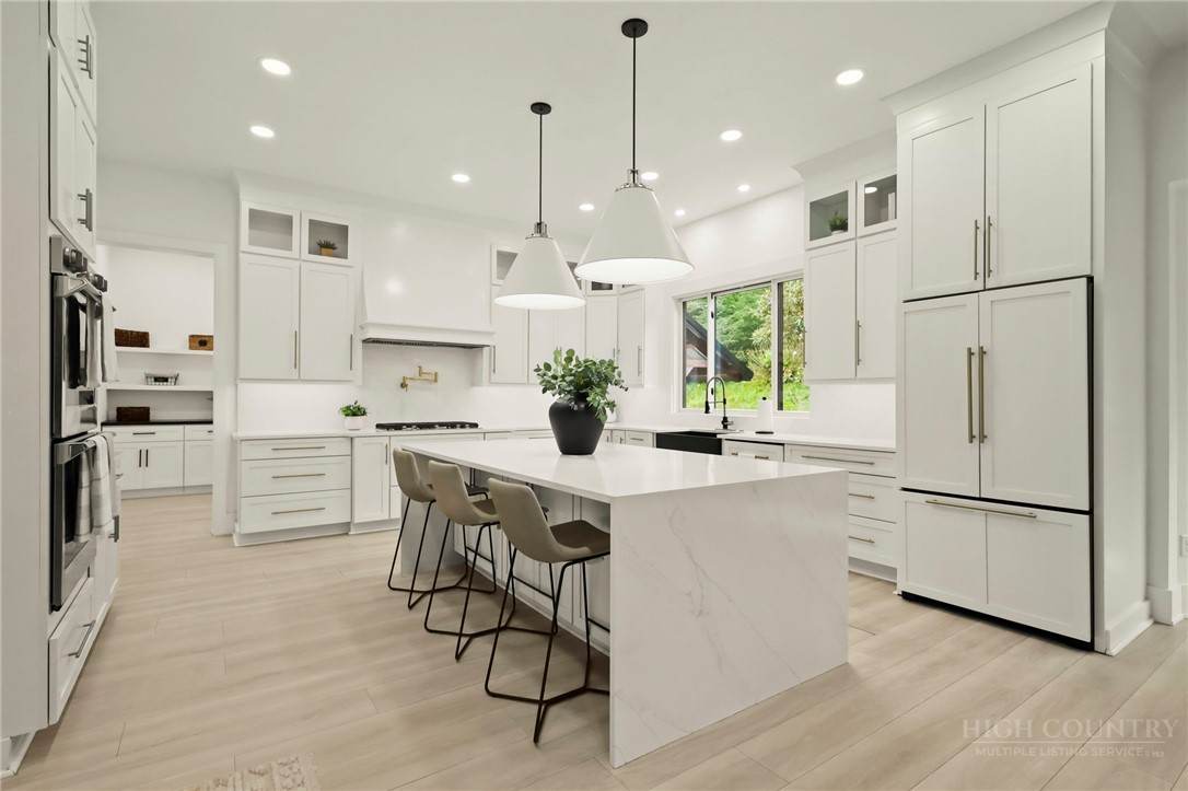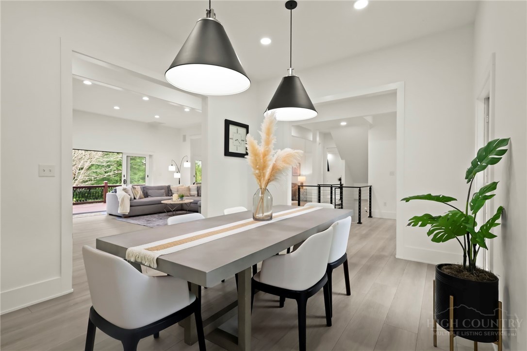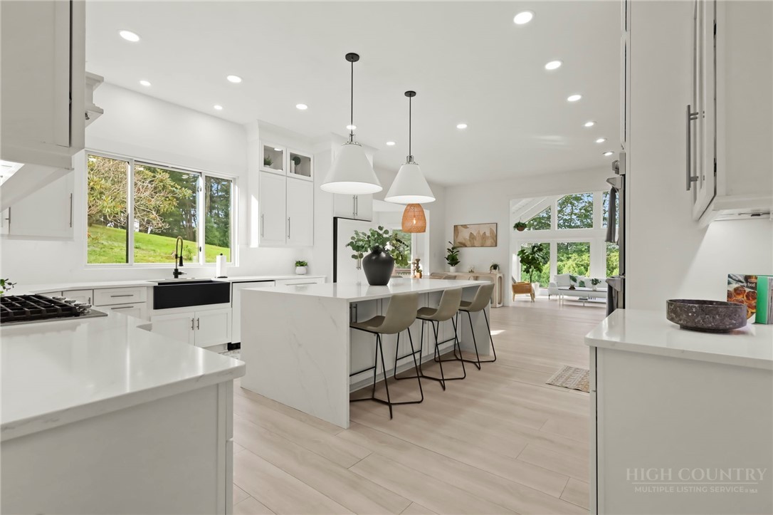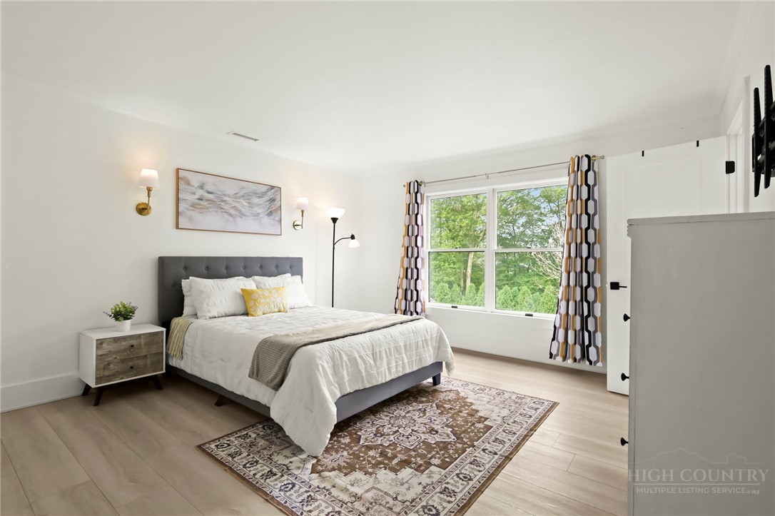 Public Remarks Enjoy peaceful mountain views from this beautifully remodeled contemporary home on 6.84 unrestricted acres in Boone, NC, just minutes from downtown & Watauga Medical Center. This thoughtfully redesigned home offers an open, light-filled main level with spacious living room featuring unique double-sided fireplace connecting to the cozy seating area & remodeled chef’s kitchen. The vaulted sunroom beyond creates a perfect spot to relax or entertain. The main floor also includes an inviting primary suite with large walk-in shower & fireplace in the bath. Upstairs, discover 2 bedrooms with Jack & Jill bathroom & versatile bonus area. The lower level expands living options with 3 additional bedrooms, full bathroom, large game room, home theater, & over 1,100 sq ft of garage/storage space. Multiple expansive decks, opening to peaceful acreage—ideal for outdoor gatherings & soaking in the natural beauty of mountain living with no restrictions. STR are permitted. Furnishings negotiable. There are few cables of stairwell railing that need adjustment/repair and 4 windows with blown seals. Seller has estimate for window glass repair.