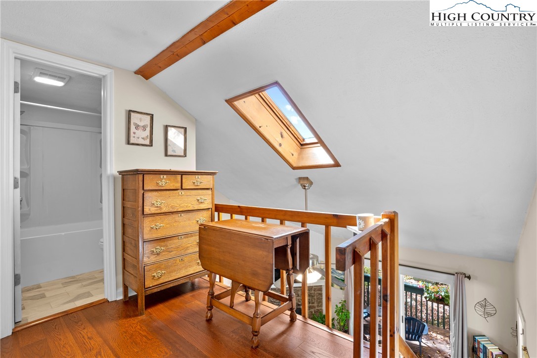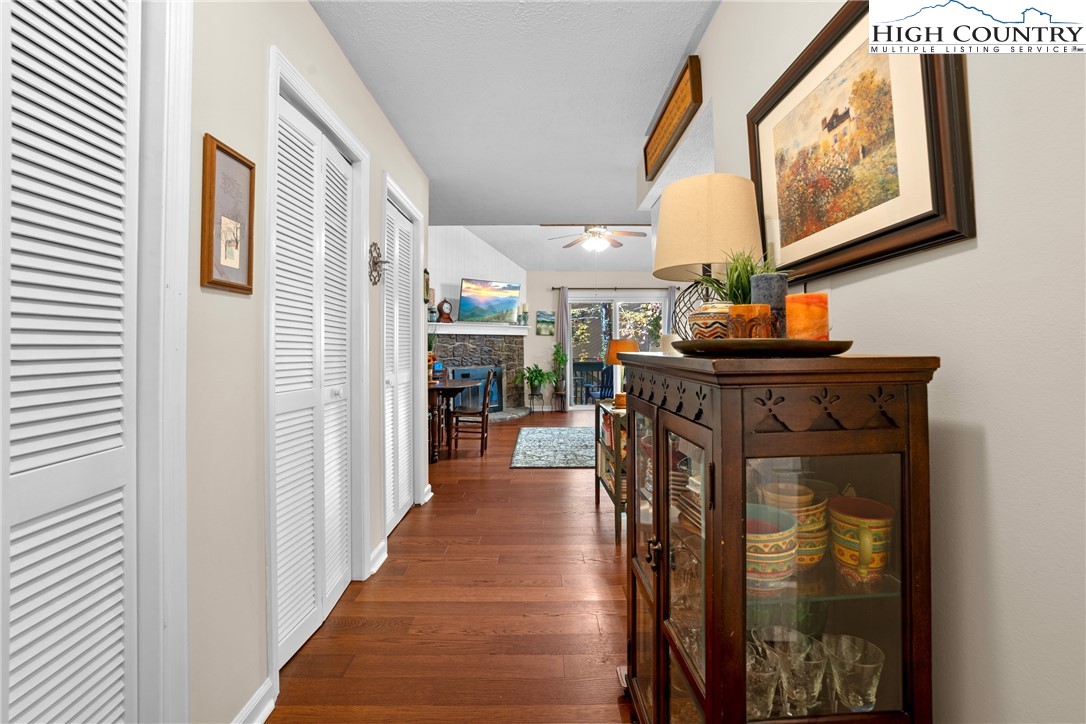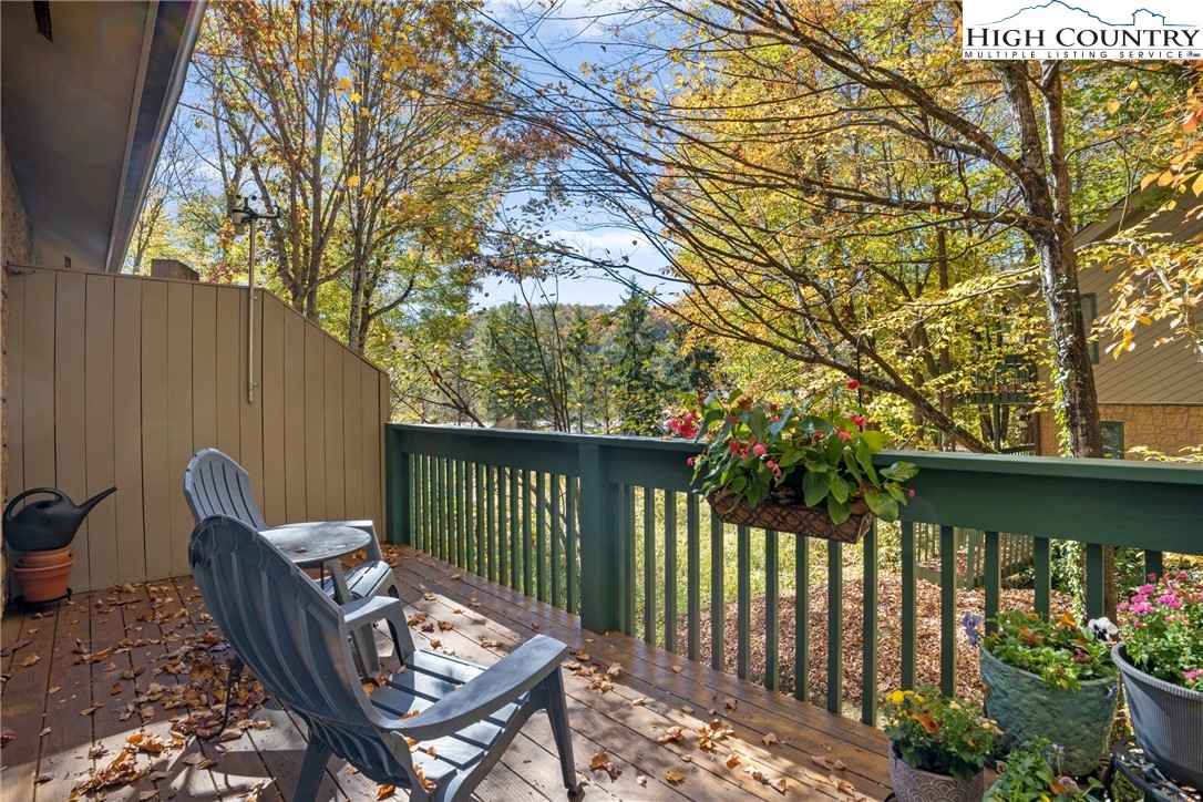 Perfectly centered between Boone and Banner Elk, this beautifully updated one-bedroom condo in the Foscoe community offers both comfort and convenience in the heart of the High Country. The vaulted ceilings and stone fireplace create a warm, inviting atmosphere, while the flexible layout provides extra space for entertaining and living space. The home has been thoughtfully maintained and tastefully improved with new hardwood floors throughout both levels, fresh interior paint, and fresh carpet on the stairs. The kitchen features a new sink, fixtures, stove/exhaust, along with a refrigerator and dishwasher just added in 2025. The upstairs bath was completely refreshed in 2022. Additional improvements include a new water heater, updated window glass throughout the home, and a new sliding door that brightens the space while improving energy efficiency. Outdoor spaces have been renewed with a new deck, dividing wall, and railings, all replaced and freshly painted or stained in 2024. This move-in-ready mountain retreat offers a low-maintenance lifestyle perfectly suited for students, professionals, or anyone who loves the outdoors, with close proximity to hiking trails, fly-fishing streams, ski slopes, and scenic overlooks along the Blue Ridge Parkway. A fantastic spot to enjoy life between Boone and Banner Elk.