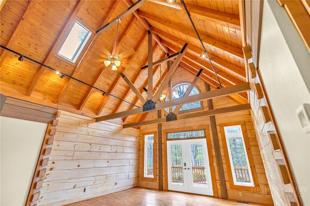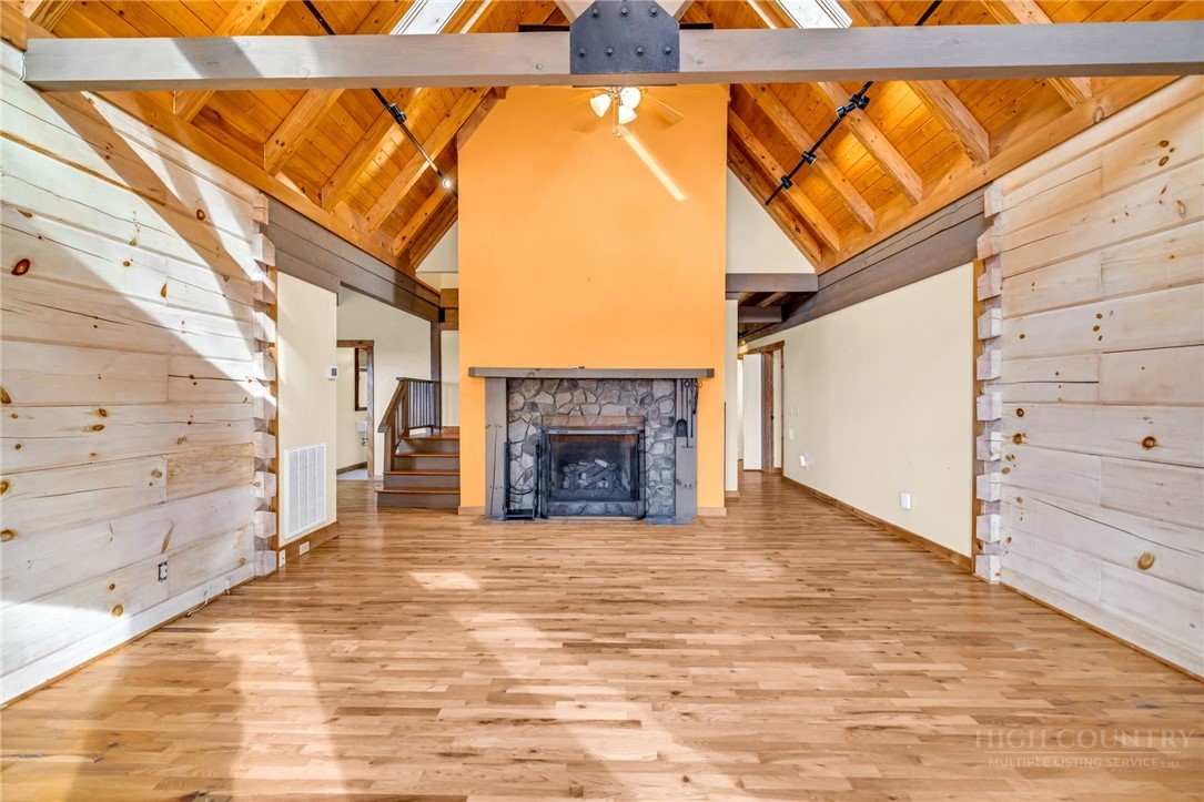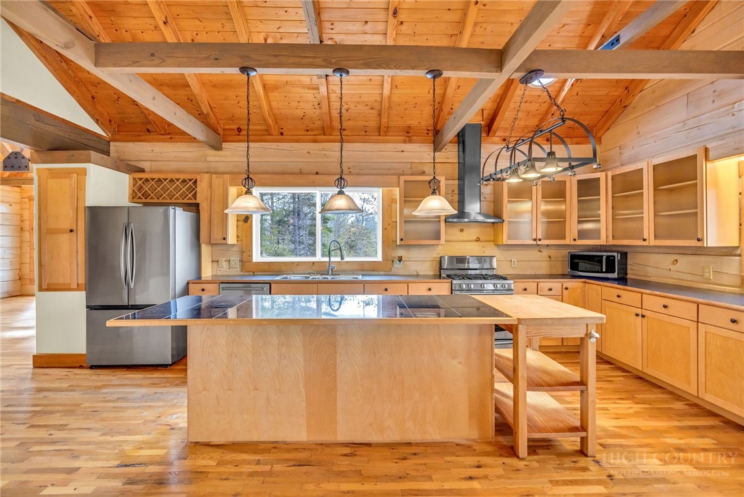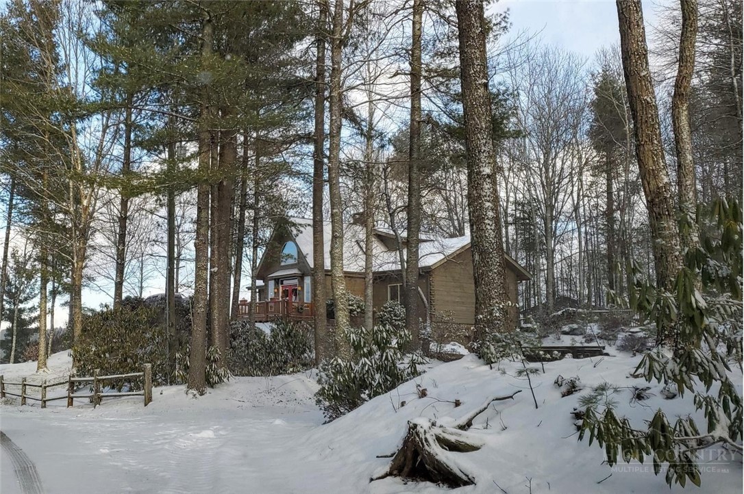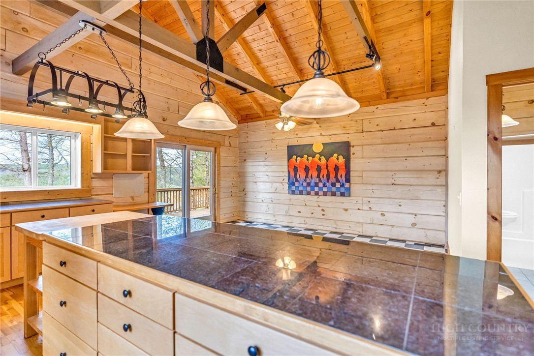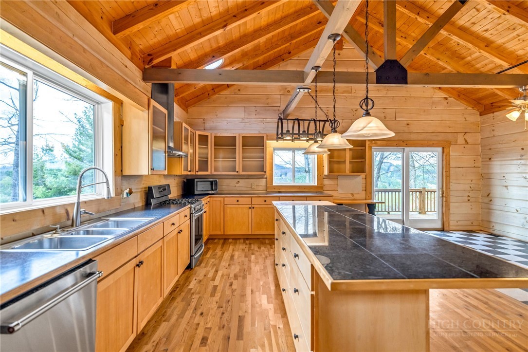 Tucked into the scenic Blue Ridge Mountains of North Carolina near Jefferson and West Jefferson, this artist-designed log cabin blends rustic charm with thoughtful, modern functionality. Offering three bedrooms and three full bathrooms, the home is a warm and inviting retreat with soaring cathedral ceilings and expansive windows that frame breathtaking long-range views as far as Mount Rogers in Virginia. At the heart of the home, a spacious kitchen provides ample room for cooking, gathering, and entertaining, while the stunning stone gas fireplace—easily convertible to wood-burning—anchors the living area with cozy mountain character. Two bedrooms and full baths and a laundry on the main level provide one level living with another bedroom and bath on the second level. Every detail reflects a balance of craftsmanship and comfort. Outside, beautifully curated landscaping surrounds the property, complete with a serene water feature that enhances the peaceful setting. Wraparound decks provide areas for grilling or just enjoying the cool mountain breezes and gorgeous views. Practical features abound, including ample parking, a dedicated service for an EV charger, and a separate electrical hookup for an RV—ideal for hosting guests or accommodating travel lifestyles. Located in the desirable Glendale Springs area, this property offers both privacy and convenience, just a short drive from the historic New River. Whether you're exploring local art galleries, enjoying boutique shopping, or taking advantage of nearby canoeing, kayaking, and state parks, there’s no shortage of outdoor adventure and cultural experiences. With both short-term and long-term rentals permitted, this home presents an exceptional opportunity as a unique mountain getaway, full-time residence, or income-producing investment.