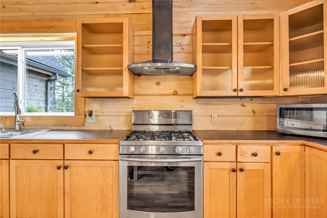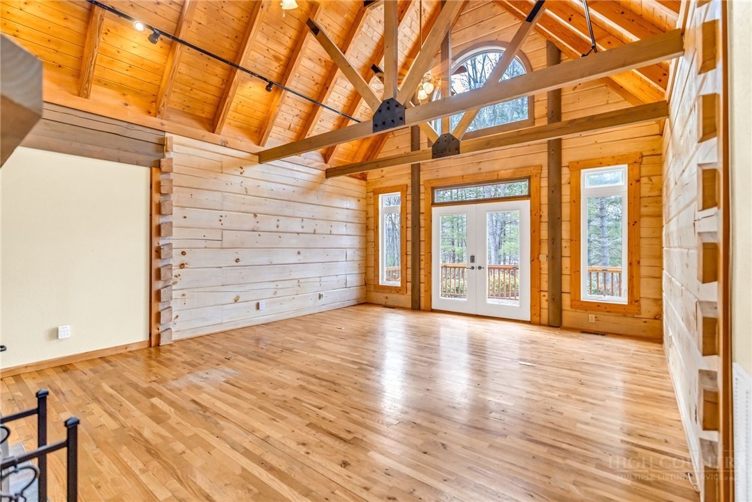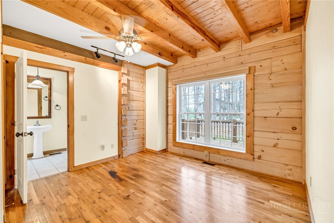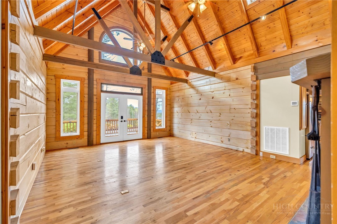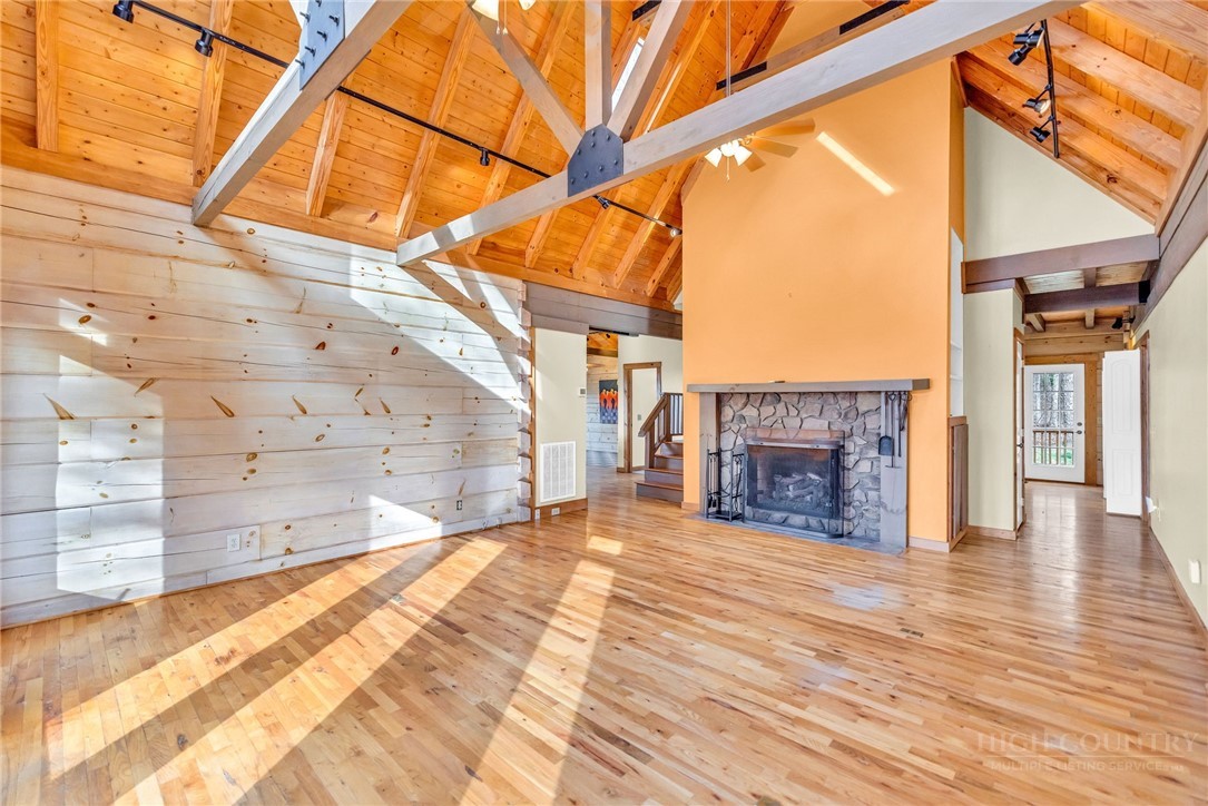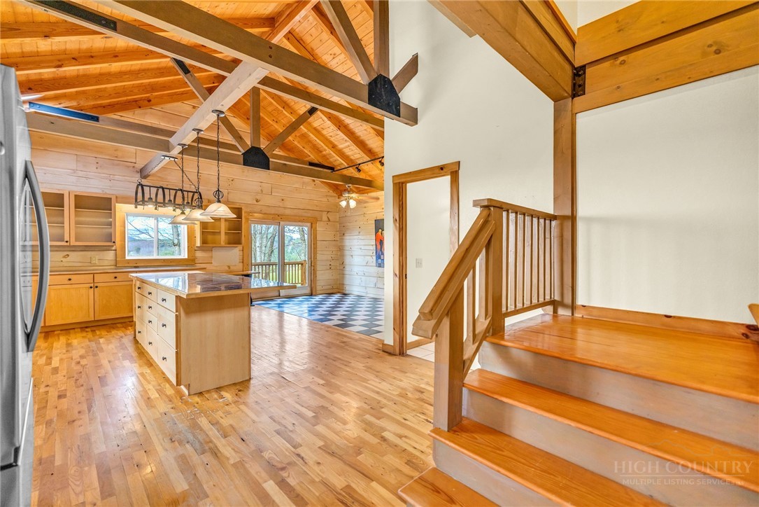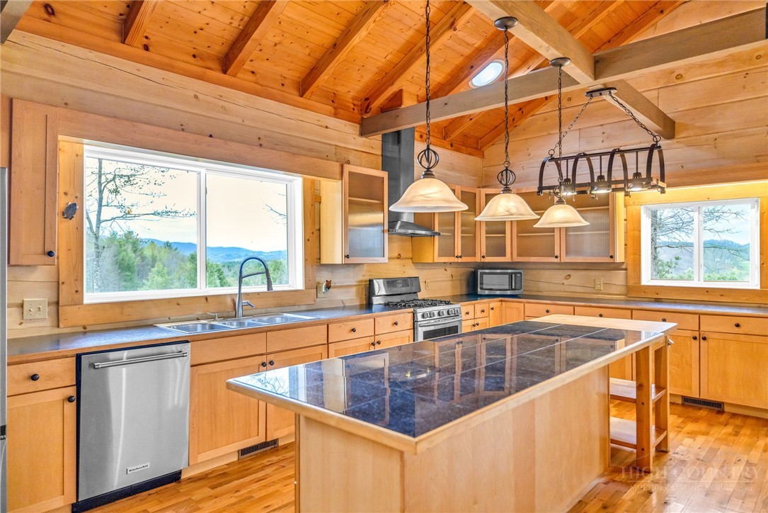 Tucked into the scenic Blue Ridge Mountains of North Carolina near Jefferson and West Jefferson, this artist-designed log cabin blends rustic charm with thoughtful, modern functionality. Offering three bedrooms and three full bathrooms, the home is a warm and inviting retreat with soaring cathedral ceilings and expansive windows that frame breathtaking long-range views as far as Mount Rogers in Virginia. At the heart of the home, a spacious kitchen provides ample room for cooking, gathering, and entertaining, while the stunning stone gas fireplace—easily convertible to wood-burning—anchors the living area with cozy mountain character. Two bedrooms and full baths and a laundry on the main level provide one level living with another bedroom and bath on the second level. Every detail reflects a balance of craftsmanship and comfort. Outside, beautifully curated landscaping surrounds the property, complete with a serene water feature that enhances the peaceful setting. Wraparound decks provide areas for grilling or just enjoying the cool mountain breezes and gorgeous views. Practical features abound, including ample parking, a dedicated service for an EV charger, and a separate electrical hookup for an RV—ideal for hosting guests or accommodating travel lifestyles. Located in the desirable Glendale Springs area, this property offers both privacy and convenience, just a short drive from the historic New River. Whether you're exploring local art galleries, enjoying boutique shopping, or taking advantage of nearby canoeing, kayaking, and state parks, there’s no shortage of outdoor adventure and cultural experiences. With both short-term and long-term rentals permitted, this home presents an exceptional opportunity as a unique mountain getaway, full-time residence, or income-producing investment.
