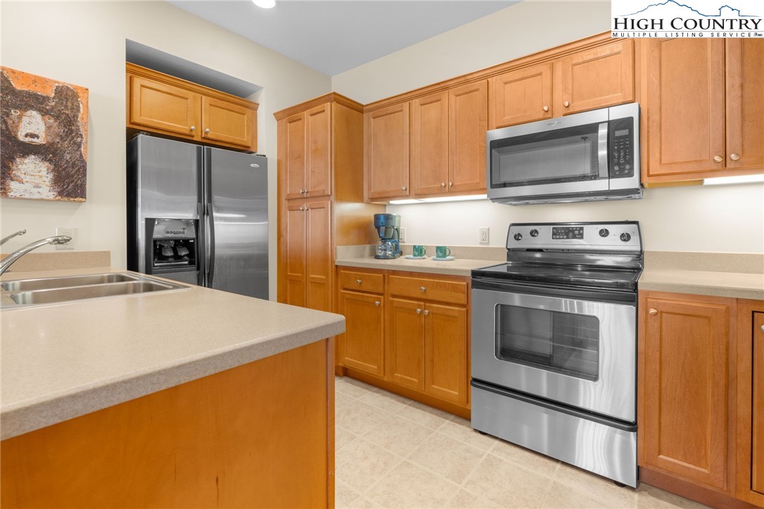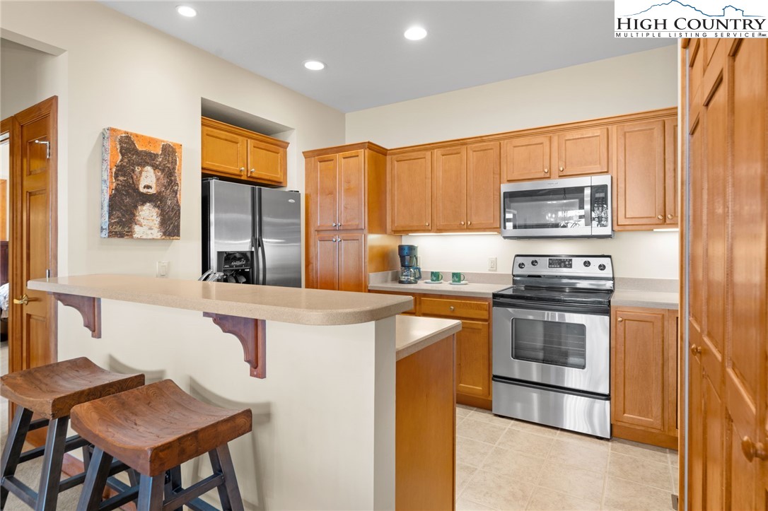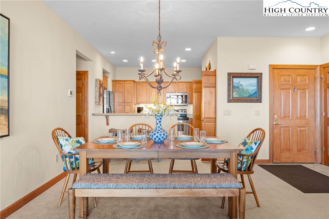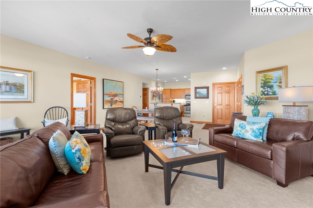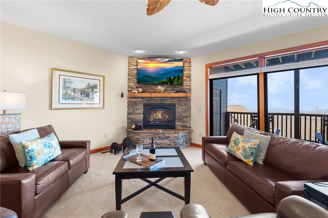 Beautiful condo located at The Reserve at Sugar Mountain with stunning Blue Ridge Mountain views! This luxurious condo features 2 bedrooms, 2 bathrooms, and 1,337 sqft of living space. Inside, it features a large living room with a stacked-stone, gas-burning fireplace and sliding glass doors that access the covered back deck and help bring in the big mountain views. The open-concept layout ties right into the dining room and high-end kitchen, which includes granite countertops, bar-top seating, stainless steel appliances, and a washer & dryer located behind bi-fold doors. Wake up to beautiful views of the mountains through the primary bedroom’s sliding glass doors. The primary bedroom is plenty spacious and has its own en-suite bathroom with a deep soaking tub and extra-large shower. The second bedroom with a queen bed feels very private and features a bathroom that can be accessed via the bedroom or the hall. This unit is being offered fully furnished. Never rented by its current owners, but The Reserve is an Airbnb/VRBO-friendly community for those who wish to rent when not in use. Just minutes from golf, tennis, skiing, shopping, outdoor recreation, parks, and dining that both Sugar Mountain and Banner Elk have to offer.
