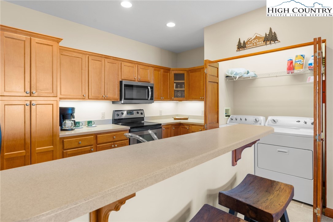 Appliances: Dryer, Dishwasher, Electric Range, Electric Water Heater, Microwave Hood Fan, Microwave, Refrigerator, Washer