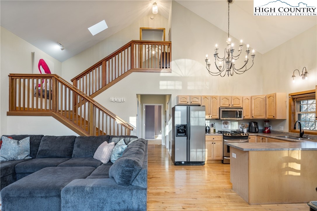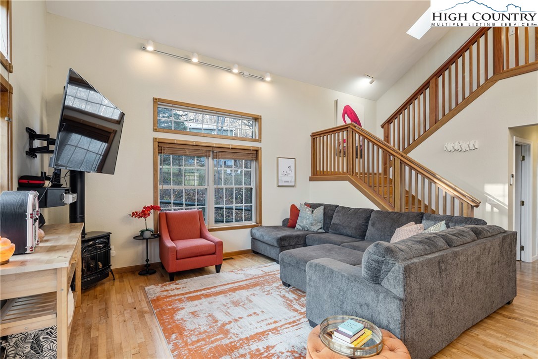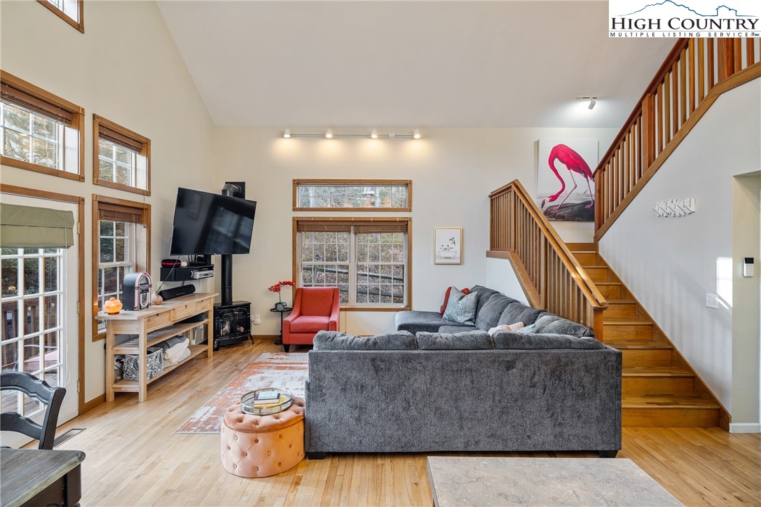 Stunning and Serene. Wake up to Grandfather Mountain perfectly framed in your primary bedroom window—an unforgettable view that sets the tone for this inviting 3-bedroom, 2-bath home. Inside, vaulted ceilings, large windows, and abundant natural light create a bright, airy atmosphere with the warmth and charm of a classic mountain cabin. Hardwood flooring adds richness and character, with tile accents in key areas for a polished, practical touch. The kitchen flows seamlessly into the living room through an open floorplan that feels both welcoming and functional. Generous counter space, a stainless steel appliance package, and easy sightlines into the main living area make this a natural gathering spot—whether you’re cooking, entertaining, or enjoying a slow mountain morning. The bathrooms feature clean, well-kept finishes and tasteful details that offer comfort without demanding updates. Set within the desirable Grandfather Farms community, the home sits almost exactly between Boone and Banner Elk, giving you effortless access to the best of both towns. Sugar Mountain’s ski slopes are only minutes away, and Tynecastle Center is just three minutes down the road for groceries, dining, and everyday essentials. ASU events, Banner Elk’s boutique shops, and Linville’s scenic trails all sit comfortably within reach. The multi-level layout enhances privacy and flexibility. The elevated primary suite feels like its own retreat, complete with peaceful morning light and long-range views. The fully finished, heated-and-cooled basement adds versatility—great for an extra sleeping area, home office, gym, studio, or den. Outside, the expansive side porch invites you to unwind in the crisp mountain air, whether you're sipping coffee or hosting friends at sunset. The attached garage is a rare High Country convenience, especially during snowy months. To make transitioning effortless, the hot tub and most furnishings can convey with the sale—allowing you to settle in and enjoy the space right away. Whether you're seeking a scenic getaway or a comfortable full-time residence, this home blends iconic views, flexible living spaces, inviting finishes, and unbeatable access to Boone, Banner Elk, and Sugar Mountain—capturing the heart of High Country living in a beautifully designed package.