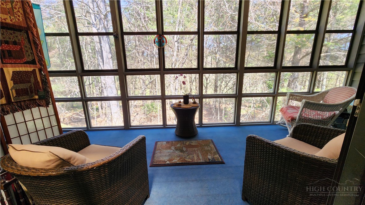 Gently used, owner occupied 2 BR, 2 BA condo in Village Green near Boone Golf Course - same owner for 27 years has meticulously cared for the interior. Non-smoking, no kids, seller has no pets - very clean. Easy park and walk in main level to great room with high vaulted ceiling, gas log fireplace, cozy living and dining room, bedroom and full bath. Special feature of this condo is the adjoining sunroom with window wall which allows lots of natural light and peaceful outdoor wooded scenery into the living areas. Great room is uplifting and serene because of this wonderful design feature. Upstairs is bedroom, laundry room with full size side by side appliances and full bath. You can fit a small office niche onto the landing upstairs. You will be pleasantly surprised at the large amount of storage spaces in all the big closets. Assigned parking plus guest parking. Pets are not allowed in this complex. Home inspection already done by seller is available to buyers - short list of items has already been addressed by the seller. Water heater replaced in 2020. PEX plumbing done in 2011. Roof replaced around 2006. Radon mitigation system already in place. Good choice for downsizing if you want to stay in the mountains or make this your very affordable mountain getaway to clean air, cool summer breezes. SOLD AS IS.