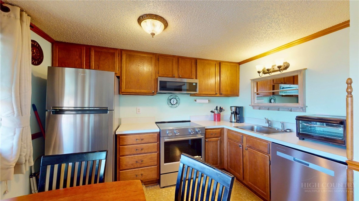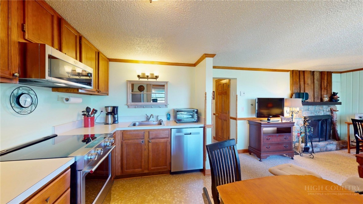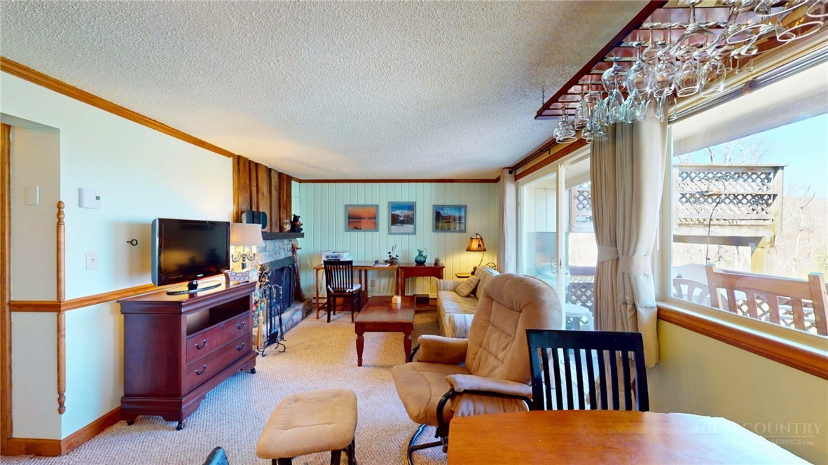 Cozy Sugar Mountain retreat within walking distance to all activities. Small but mighty, this one bedroom condo has full kitchen with all new appliances as of April 2026, a real stone front gas log fireplace, ample storage, in-unit washer/dryer and a generous balcony. Walk to the ski resort, the golf course club house and the tennis courts. This one is the perfect home base for all of Sugar Mountain's activities, concerts, festivals and events.