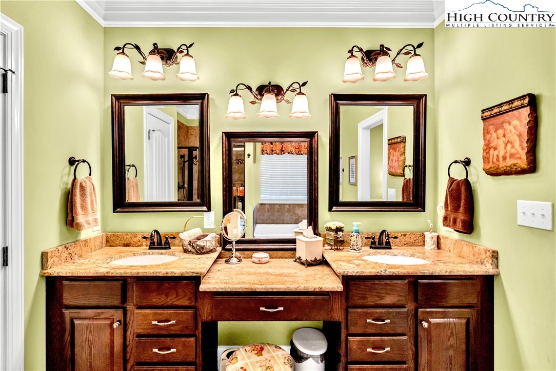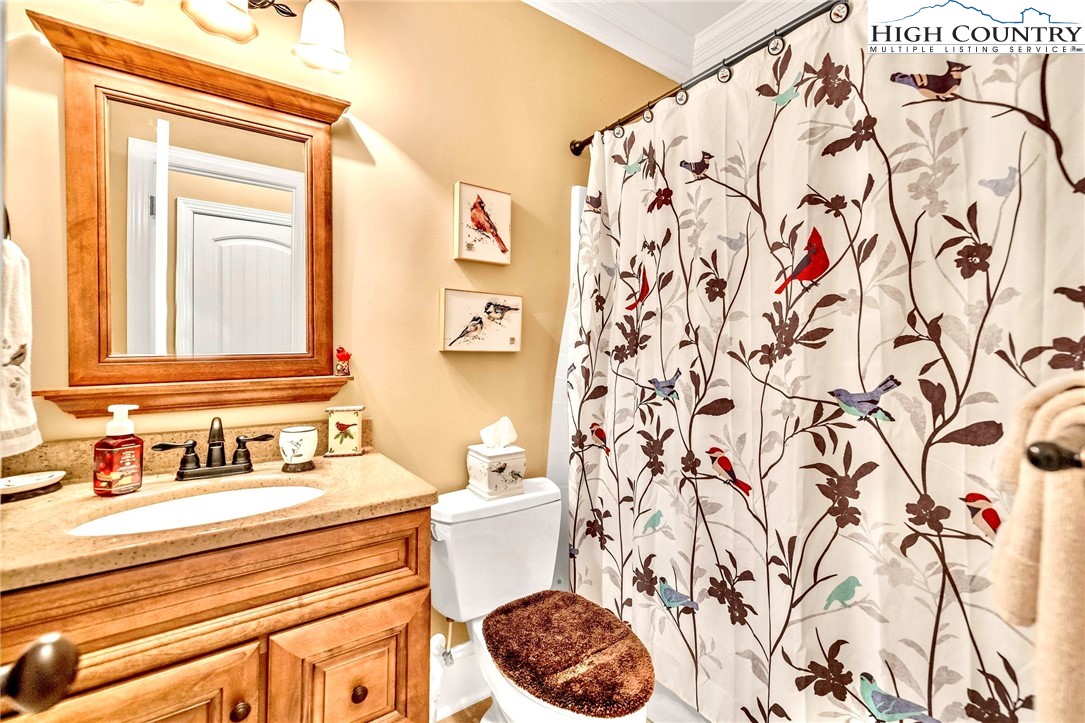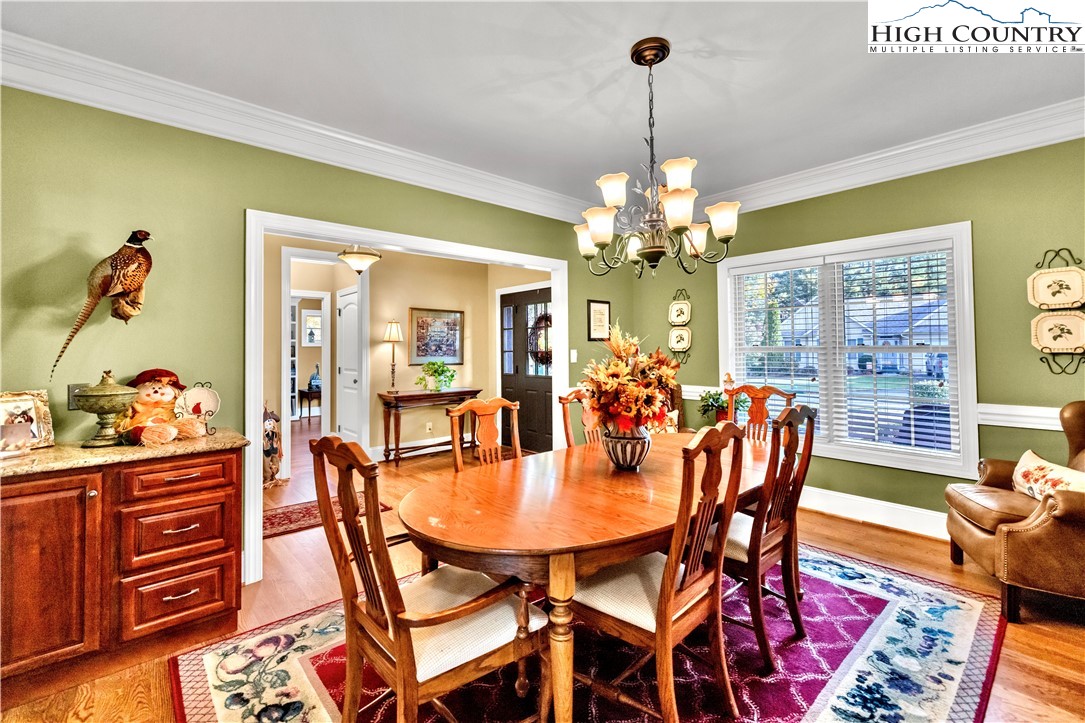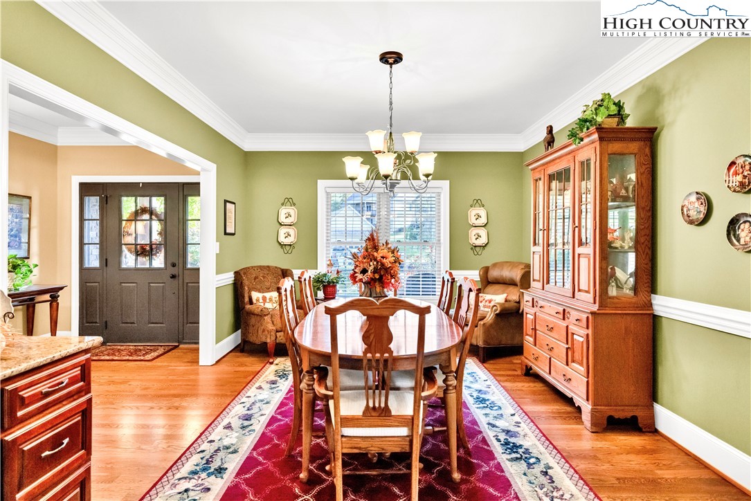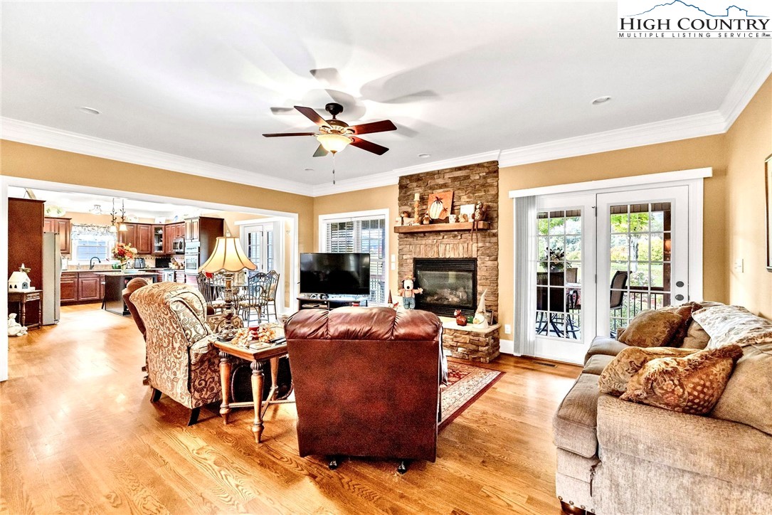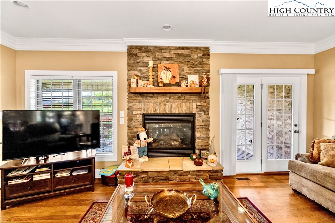STUNNING HOME IN THE RESORT COMMUNITY OF JEFFERSON LANDING SITUATED ON THE GOLF COURSE WITH AMAZING VIEWS OF MT. JEFFERSON!! As an immaculate 4-bedroom, 3-full-bath residence it affords captivating views, an abundance of natural light and open floor plan for ease of living and entertaining. The main level features hardwood floors, granite countertops, under cabinet lighting, and a stone fireplace with natural gas logs to cozy up on cool evenings. The primary ensuite and laundry room with sink are conveniently located on the main level, while a welcoming covered back porch provides a peaceful oasis to enjoy the natural spendor of the gorgeous surroundings. Upstairs you will find two additional bedrooms, full bath, bonus room, and large floored attic space for plentiful storage. Built with quality and attention to detail, this home boasts brick, stone and hardy exterior, encapsulated crawl space, pristine landscaping, and convenient main level living. Located within the sought after gated community of Jefferson Landing, residents enjoy 24 hour gated security, and incredible amenities associated with Club membership including 630 SF covered rock patio. Jefferson Landing, a gated golf community, features a magnificent 18 hole golf course. Additional amenities associated with Club Membership include access to the clubhouse, swimming pool with dining/ bar area offering tasty food & drink options, well equipped fitness center, pickleball /tennis courts and Riverside Park, which features a covered pavilion adjoining the New River. Himalayan style putting course & a total of seven par 3 practice holes w/ bar & food options available. There is a $1000 Capital Improvement fee pd to the JL POA, by the buyer at closing.This custom home is a rare treasure. Come see it today!