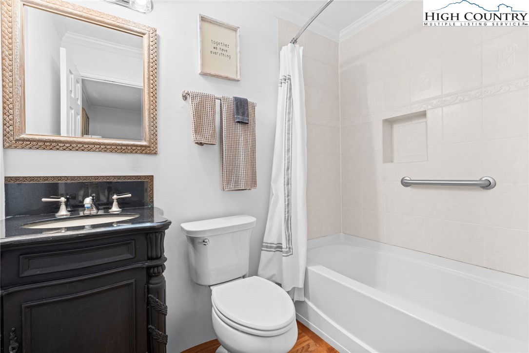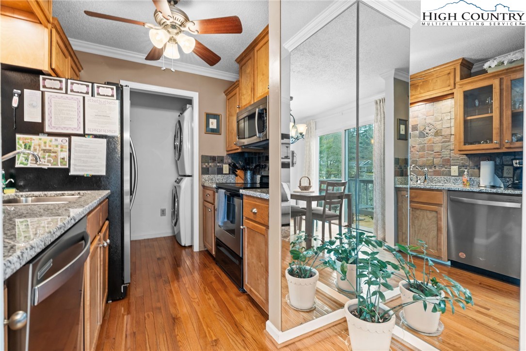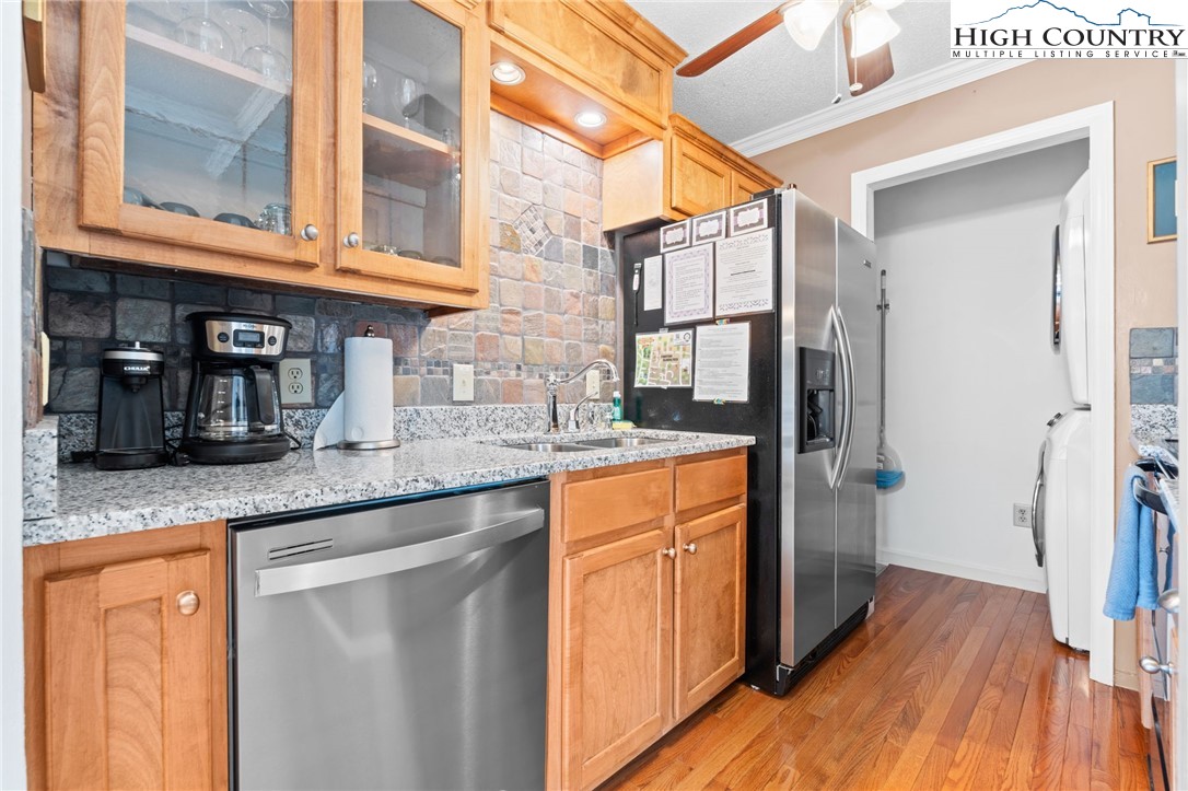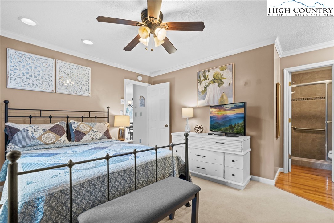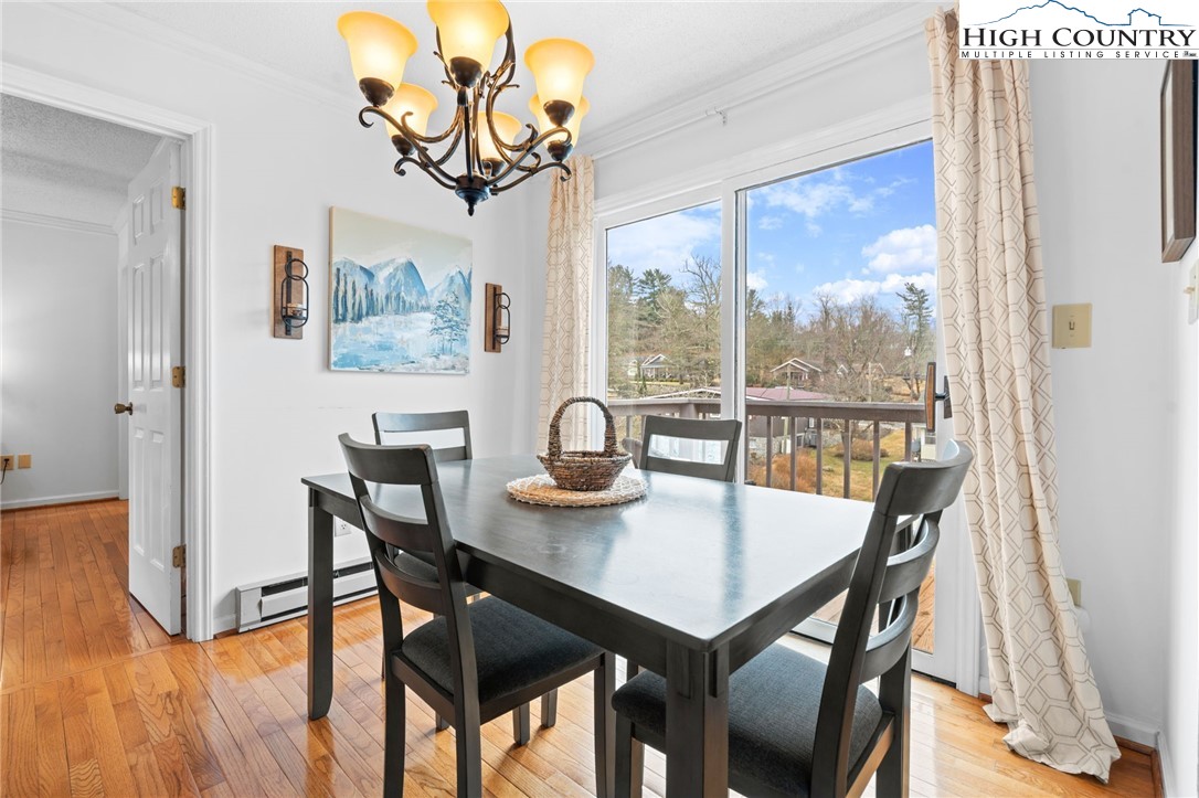 Tucked into the heart of Blowing Rock, this fully furnished condominium offers the ideal blend of mountain charm and walkable convenience. Inside, you’ll find two spacious bedrooms, each with its own private ensuite bath, creating a comfortable and functional layout for guests or full-time living. The living room features a stone-faced fireplace and soaring cathedral ceilings, adding warmth and architectural interest while enhancing the sense of space and light. The dining area opens to a private balcony — a highly sought-after feature, with only a limited number of units in the complex offering this outdoor extension. It’s the perfect spot for morning coffee or cool mountain evenings. The galley-style kitchen is efficiently designed and comes complete with a full appliance package, generous pantry storage, and a stackable washer and dryer for everyday convenience. Located just a short stroll from Main Street, you’ll enjoy easy access to charming boutiques, art galleries, and local dining. Outdoor enthusiasts will appreciate the close proximity to the scenic Blue Ridge Parkway, offering miles of breathtaking views and recreation. With vacation rentals permitted, this property presents a compelling opportunity as a full-time residence, second home, or income-producing investment in one of the High Country’s most desirable destinations.