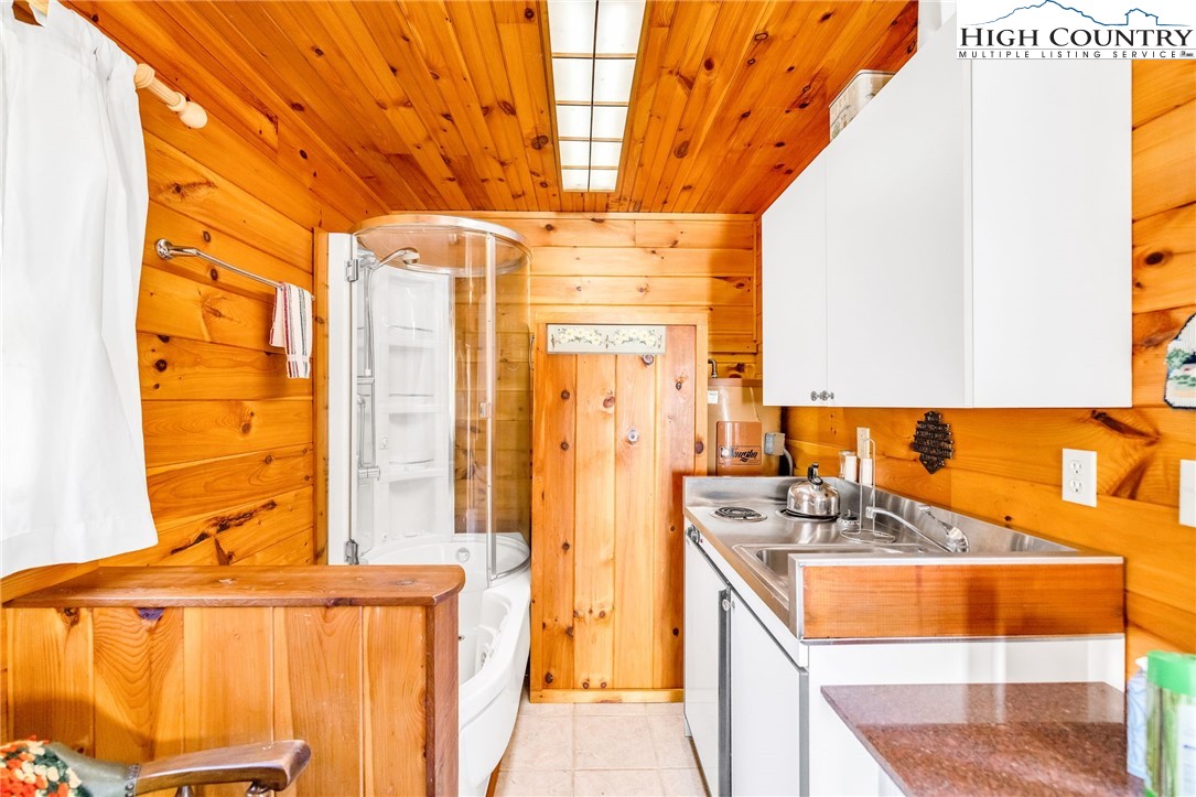 Charming 1BR/1BA cabin on 58+/- unrestricted acres, less than 4 miles from downtown West Jefferson. Originally designed as a honeymoon suite and rental (but unused in recent years), this cozy cabin features wood walls and ceilings, tile flooring, an electric fireplace, a small kitchenette with cooktop and refrigerator, and an open living/bedroom layout and bath with whirlpool tub and shower.. Enjoy over 400 sq ft of outdoor living space between the deck and gazebo, perfect for relaxing in the peaceful setting. The cabin sits on flat, open land with a creek running nearby. A 2-bedroom septic system is already installed, providing options for expansion. The remaining acreage stretches behind the cabin and consists of wooded terrain with a mix of hardwoods, a few apple trees, and multiple potential building sites. Higher elevations offer knolls that will provide long-range view opportunities. With easy, year-round access off a state-maintained paved road, this property offers endless possibilities—expand, create a family retreat, develop additional rentals, or simply enjoy the acreage for ATV riding, hiking, and abundant wildlife. Let your imagination run and come explore everything this unique property has to offer.