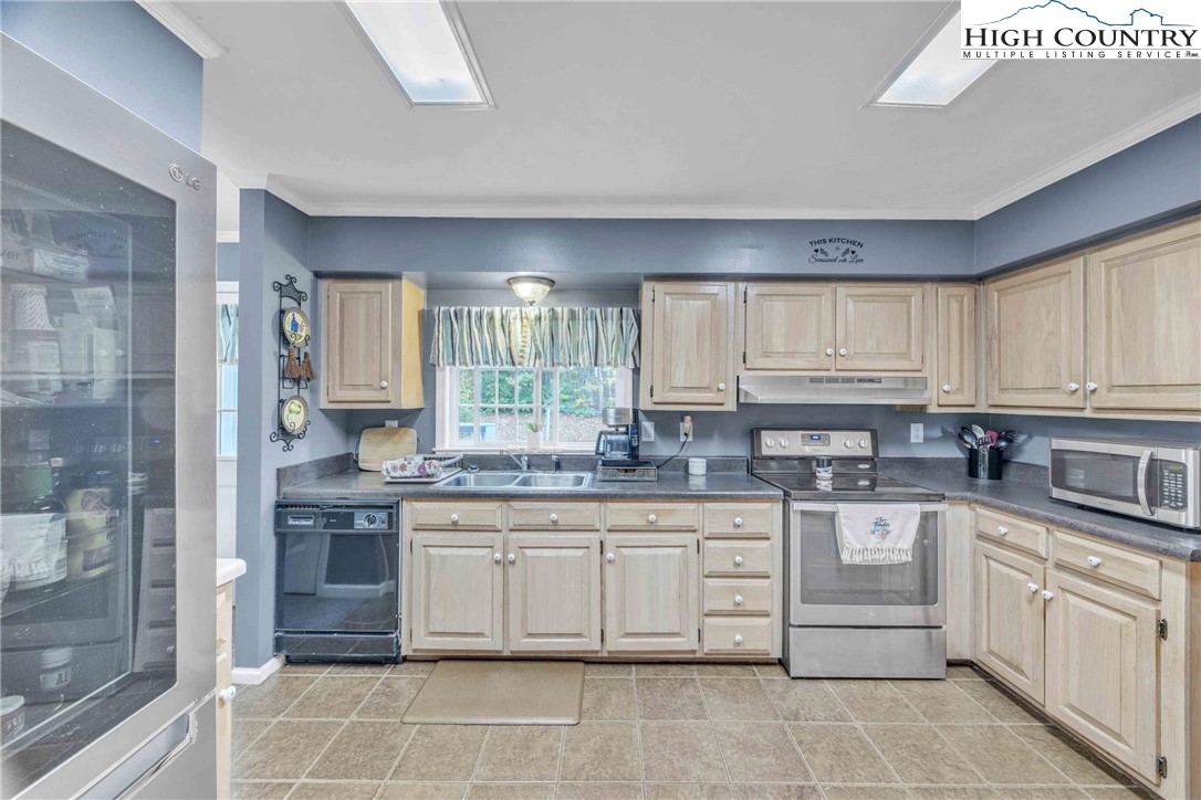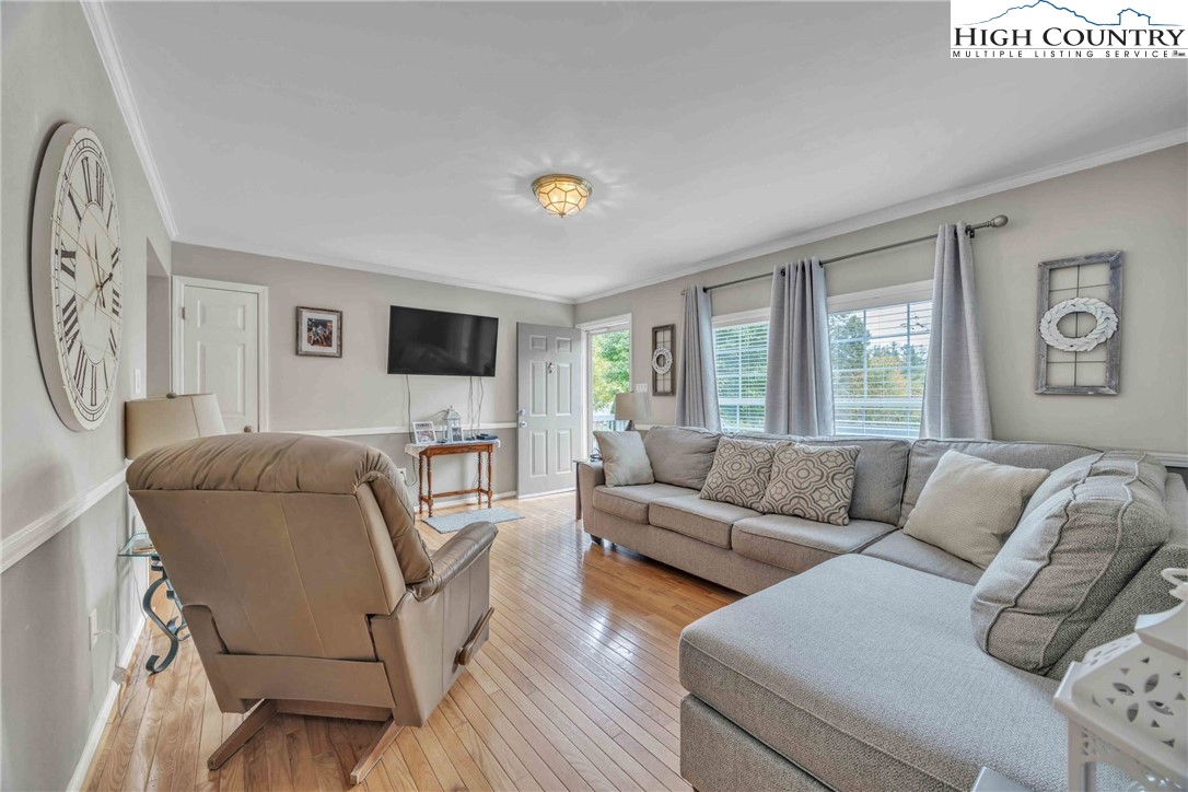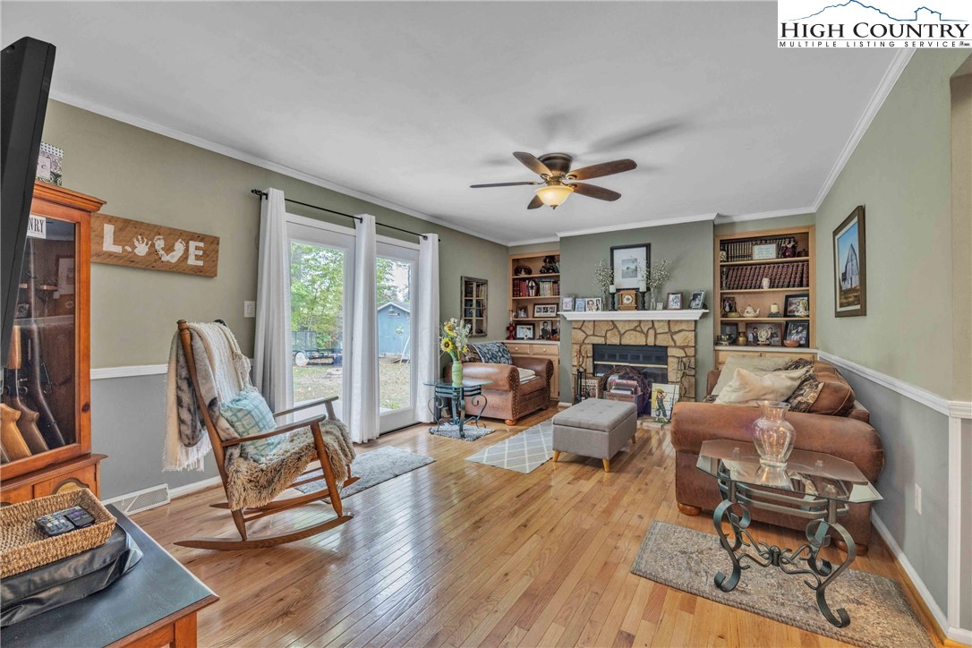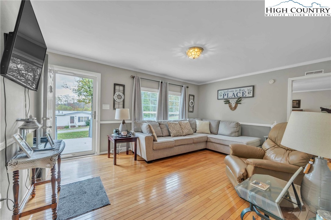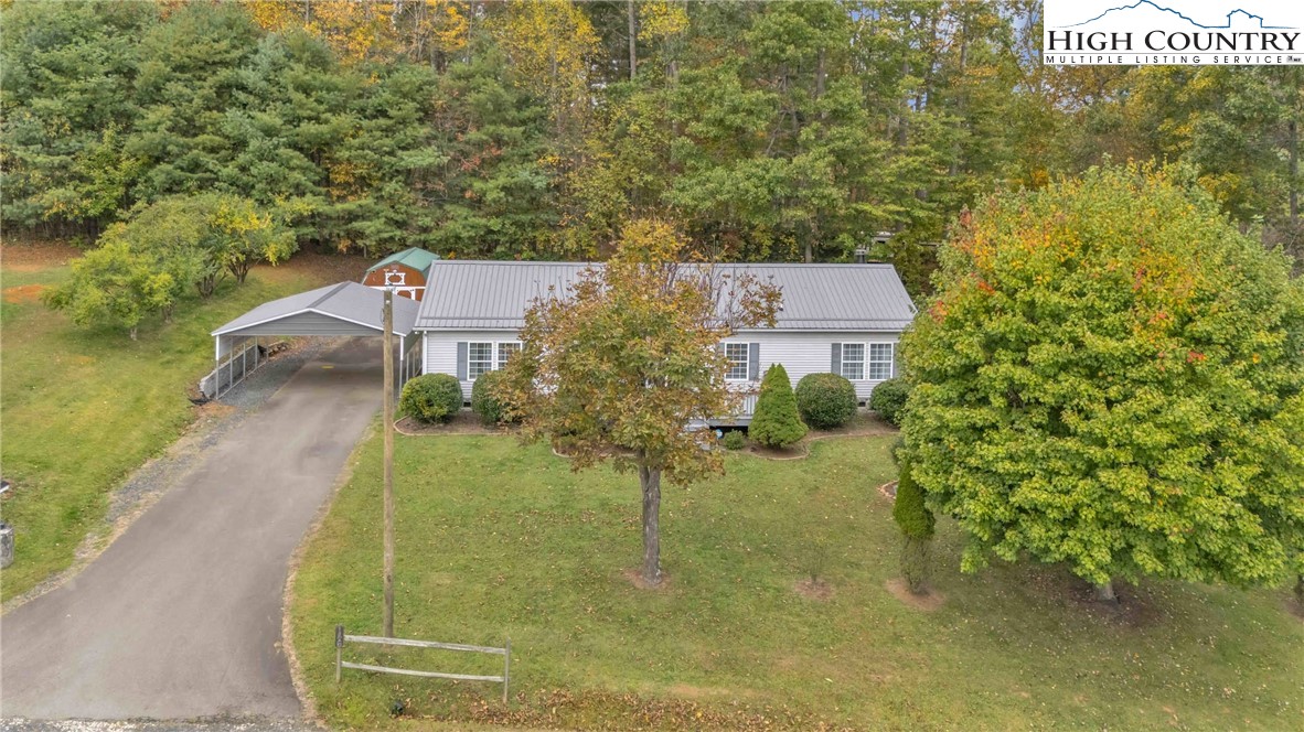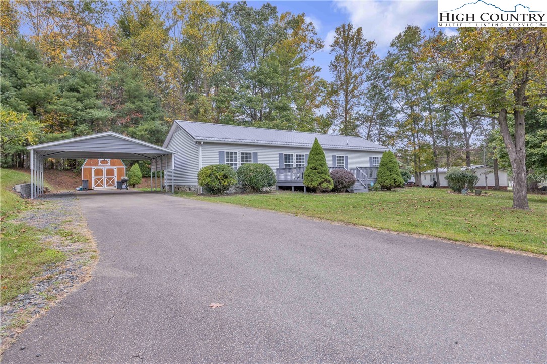 CLEAN AS A PIN AND MOVE-IN READY! This immaculate one-level modular home offers everything you could want — perfect for retirees, first-time buyers, or anyone seeking low-maintenance living in the mountains. Featuring 3 bedrooms and 2 full baths, this home shines with hardwood floors throughout, a spacious kitchen with ceramic tile, black and stainless appliances, and tons of cabinet space. Enjoy a formal dining area, a great room with a stone propane fireplace, and an extra den ideal for relaxing or entertaining. The primary suite includes a walk-in closet and a full bath with shower. Outside you’ll find a flat, usable yard, paved driveway, 2-car carport, outbuilding, storage shed, and beautiful landscaping. A rare find — move-in ready modular home with fireplace, carport, and level yard close to all the conveniences of Jefferson, West Jefferson, Lansing and the New River! The security cameras and system does not convey.