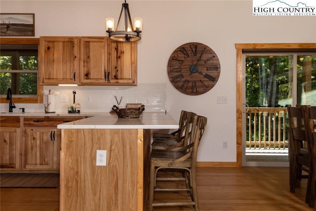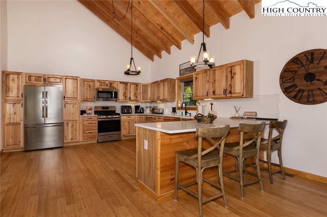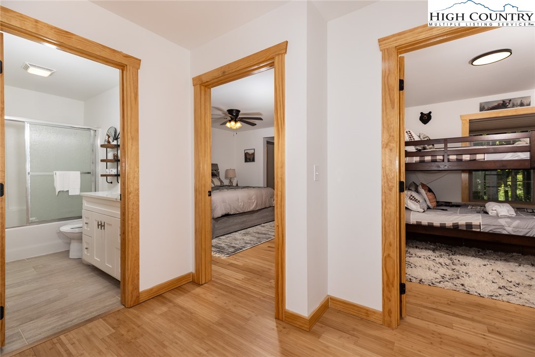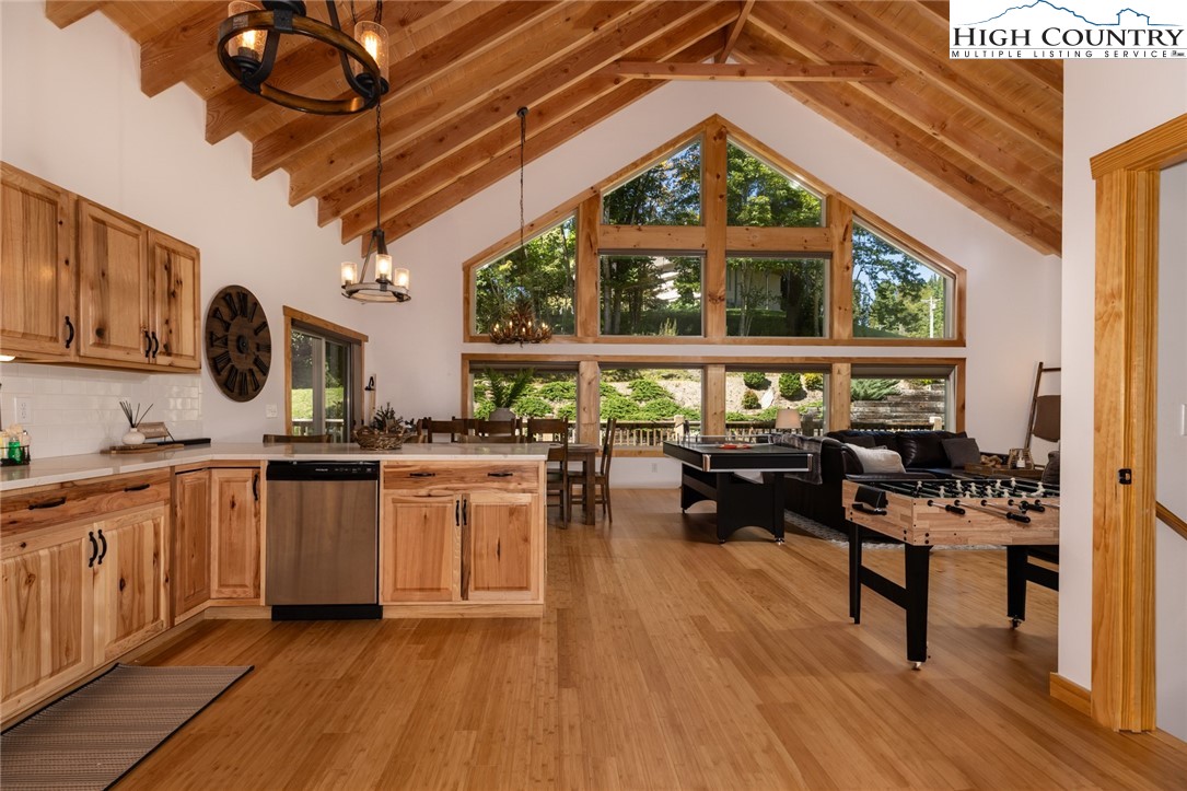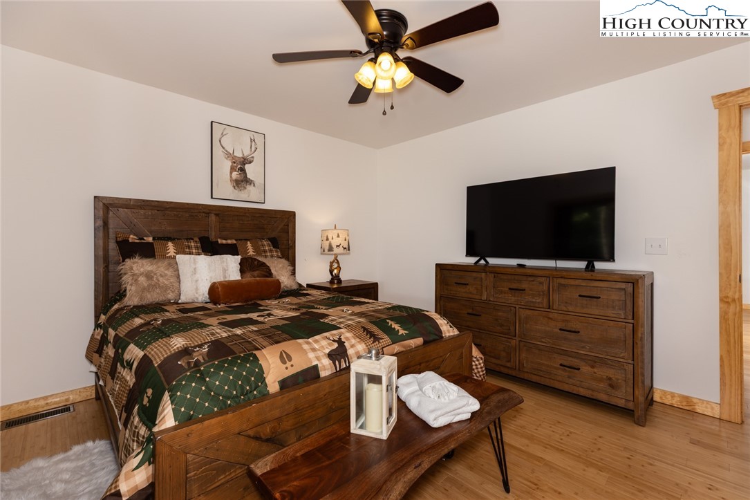 Well maintained, newer mountain style mountain home on 1.295 acres convenient to downtown Boone, ASU, hospital, shopping, fine dining & casual dining, rivers for fishing, tubing, kayaking or canoeing, parks & trails in the popular mountain town of Boone. There are 2 levels of porches, the upper-level porch surrounds the home, and the lower-level porch is partially wrapped around. As you enter the house there is a large open area that features a beautiful, vaulted ceiling, wood floors and includes the great room with fireplace, dining area & large kitchen. The dining area and great room have a wall of windows allowing natural light & brightness into the home. Great area for gathering with family & friends. The dining room has double glass doors leading to the back deck and grilling area. The primary bedroom with a beautiful, tiled bathroom, walk-in closet, laundry room and half bath completes the main level of the house. The lower level of the house contains 2 bedrooms (each with access to the lower wrap around deck), a full tiled bath and a bonus room (currently used as a bunk room). This house comes fully furnished and is very attractive. End of road privacy is a plus! House is move-in ready. Short term and long-term rentals are allowed!