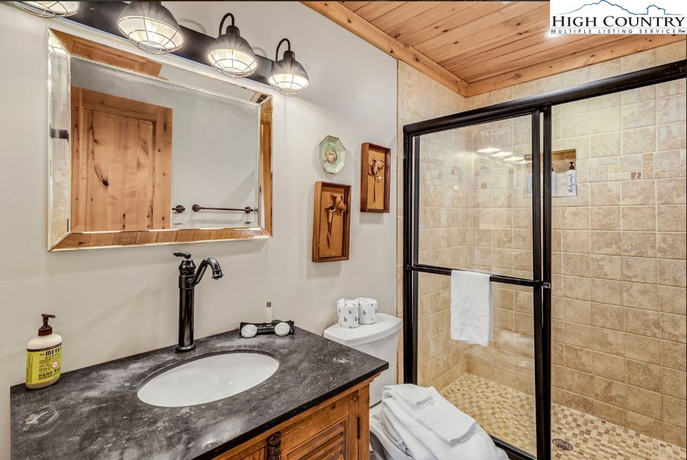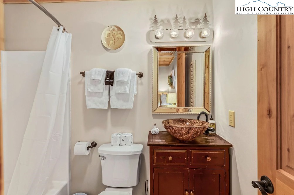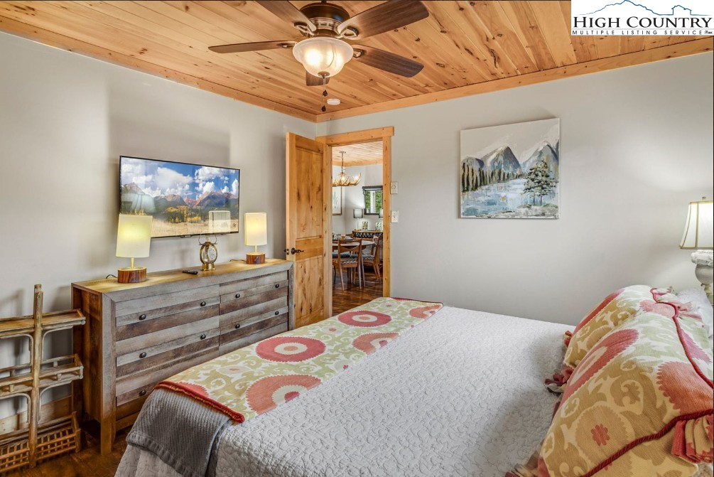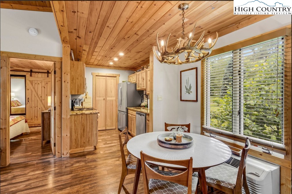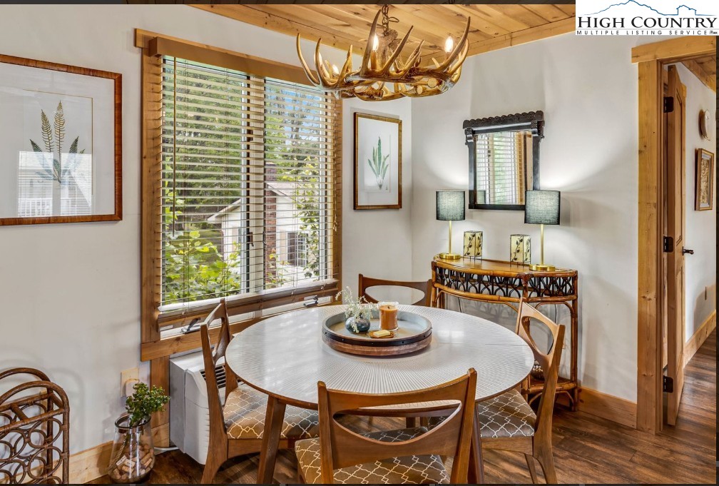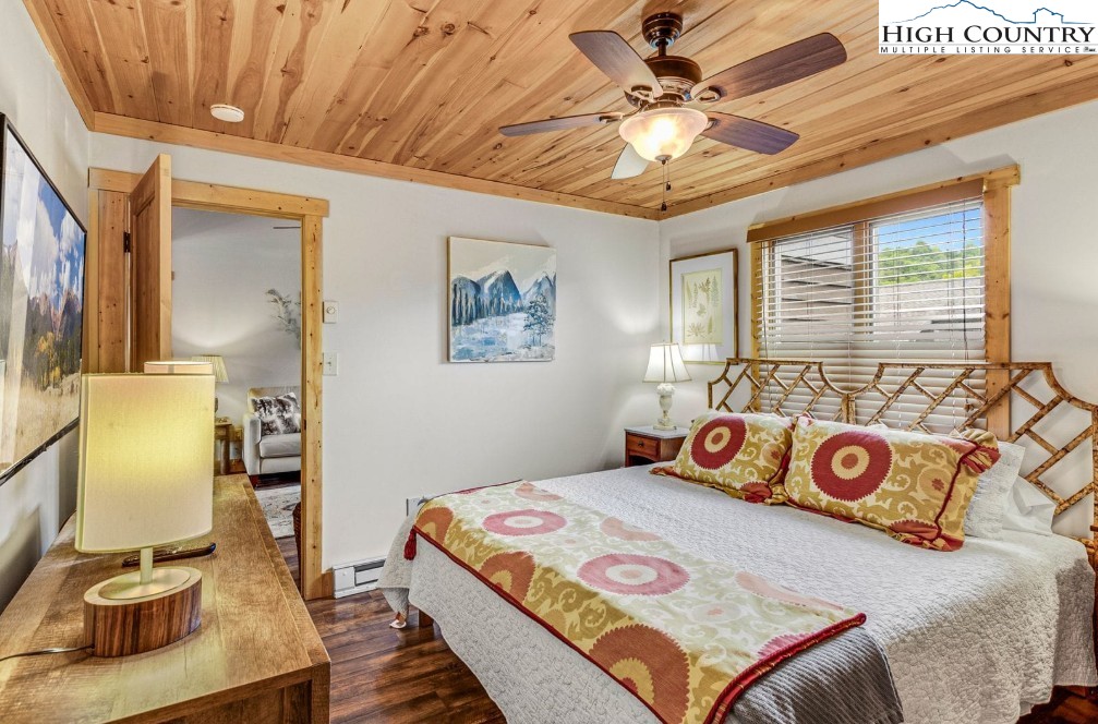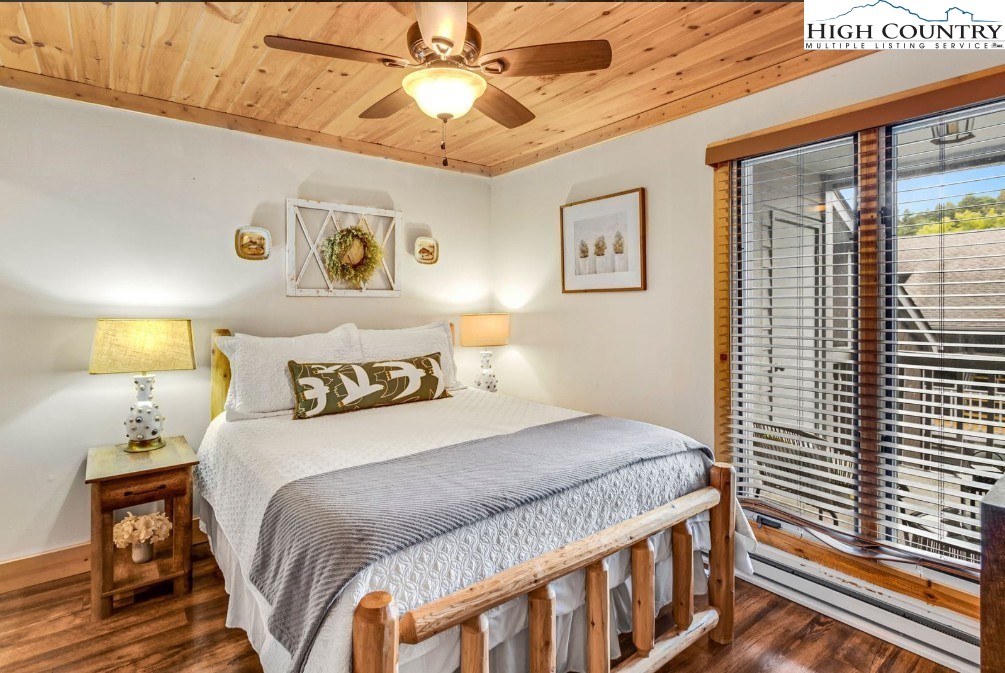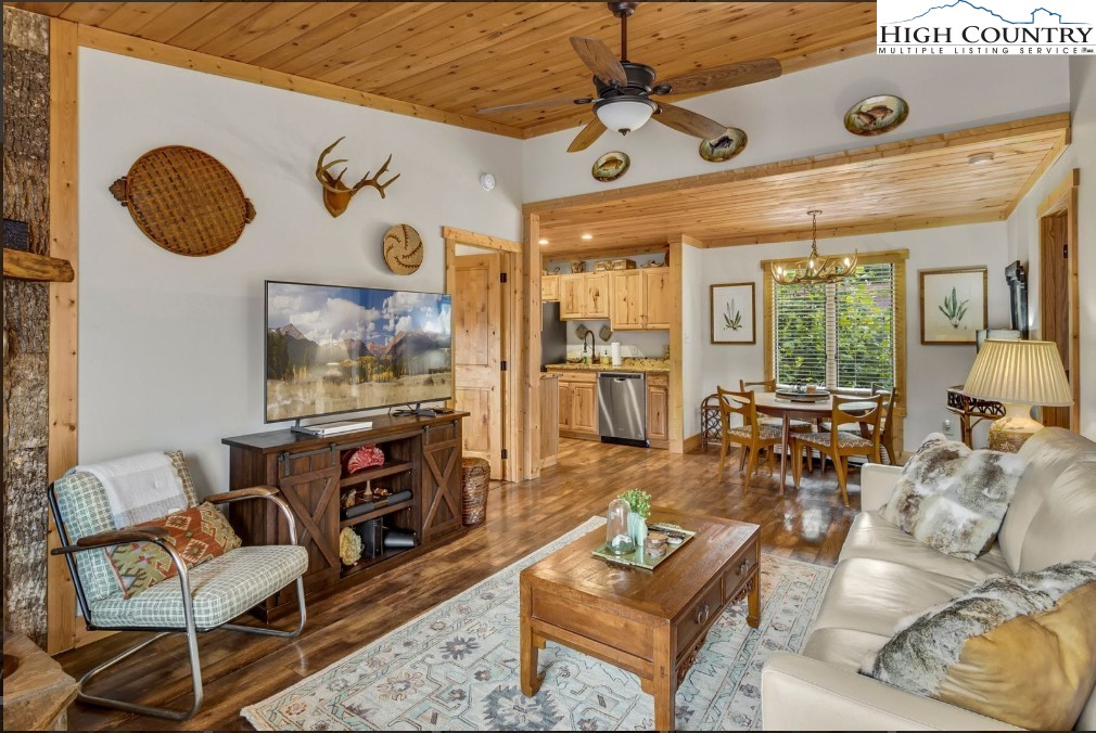 An exquisite condo in downtown Blowing Rock, one of the very few properties that allows short-term rentals and is just two blocks from Main Street. Within walking distance are many local attractions, including restaurants, shops, and a playground. This rare top-level well-appointed two-bedroom condo has the perfect blend of convenience and character with modern rustic charm, wood accents throughout with tongue and groove ceilings, and a beautiful stone fireplace creating a cozy mountain ambiance that is highly sought after! The kitchen features stainless steel appliances and granite countertops. Each bedroom has its own beautifully updated ensuite bathroom. Around the grounds are other common spaces to enjoy, including a stream, picnic tables, grills, and a gazebo. This incredible condo is a delightful spot for your perfect mountain getaway!