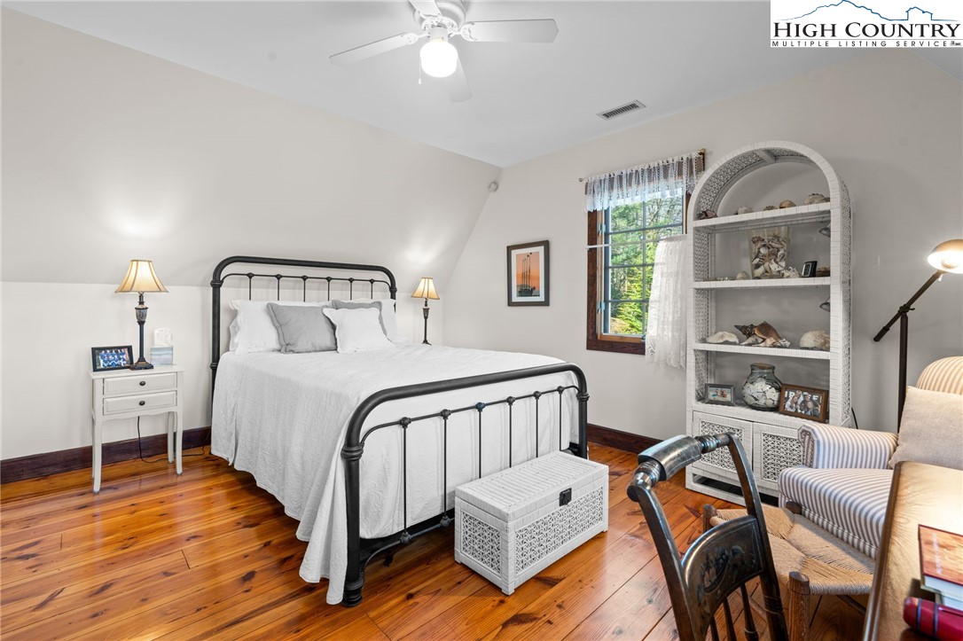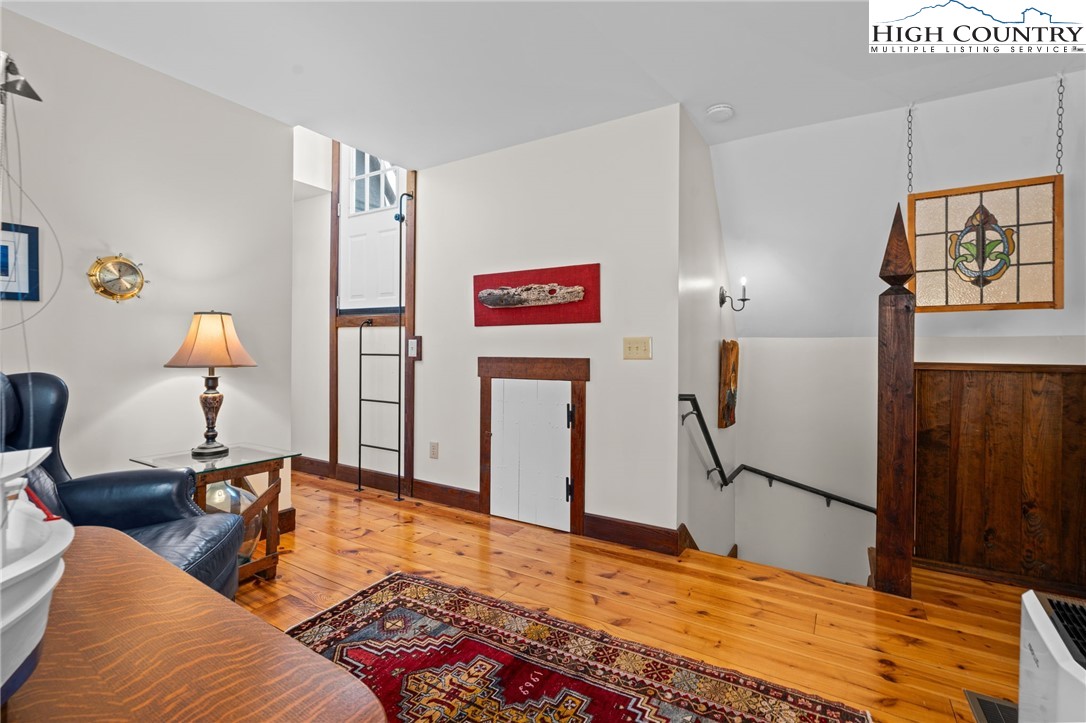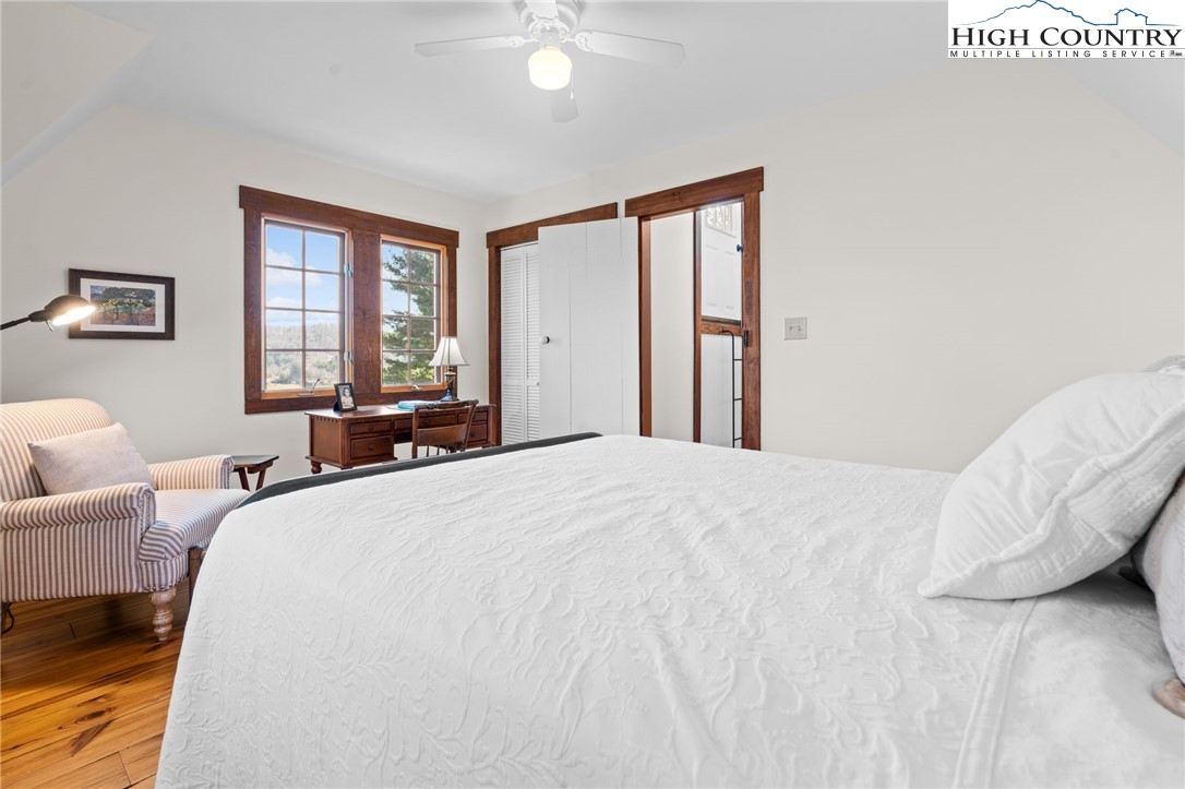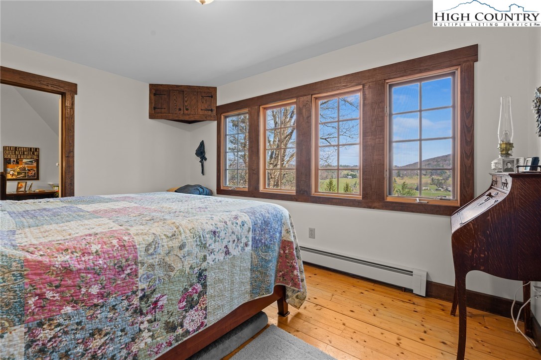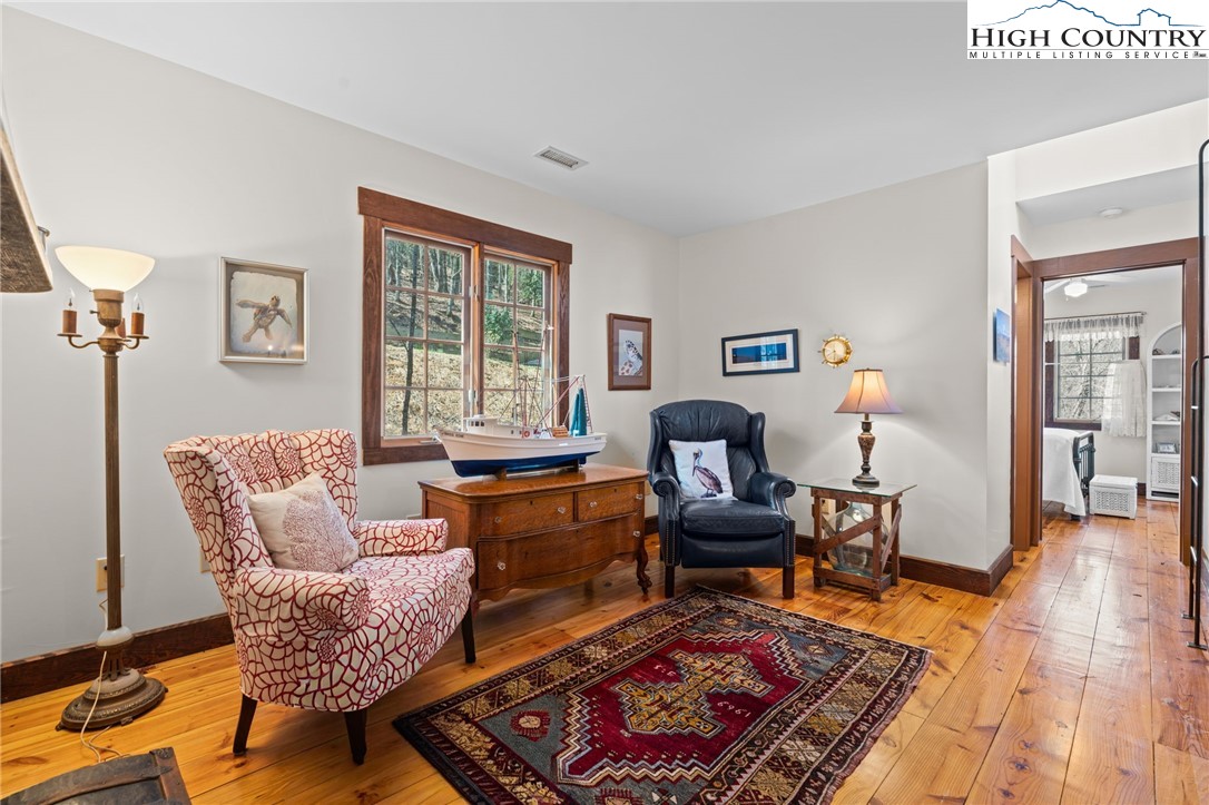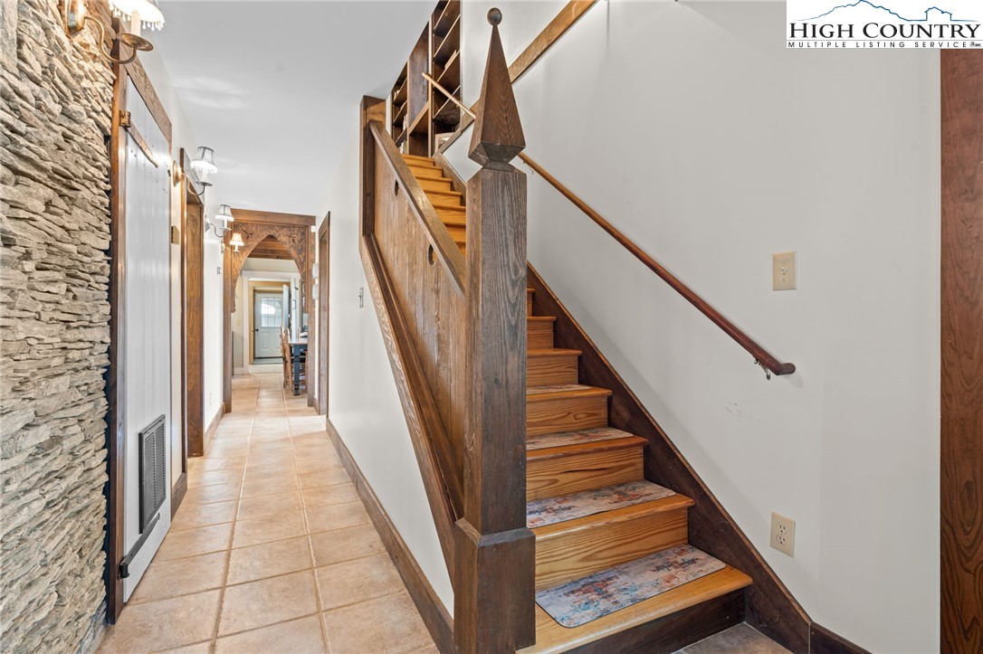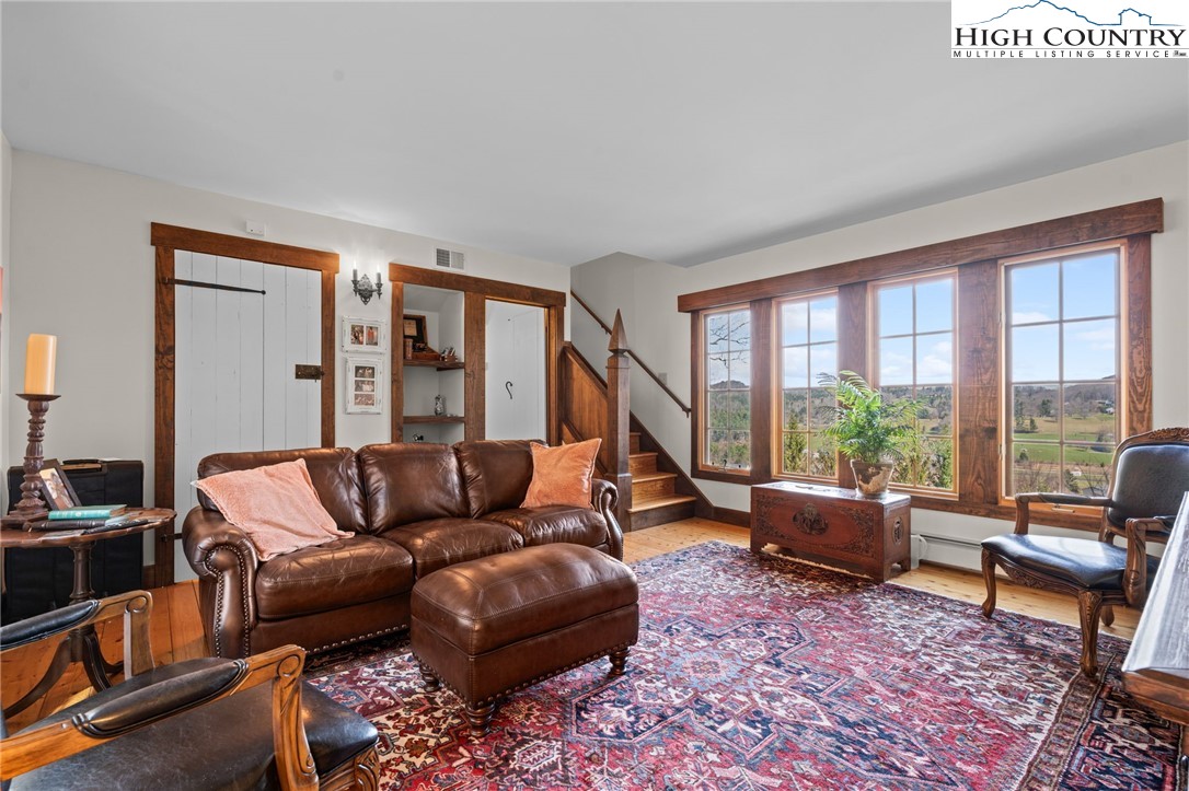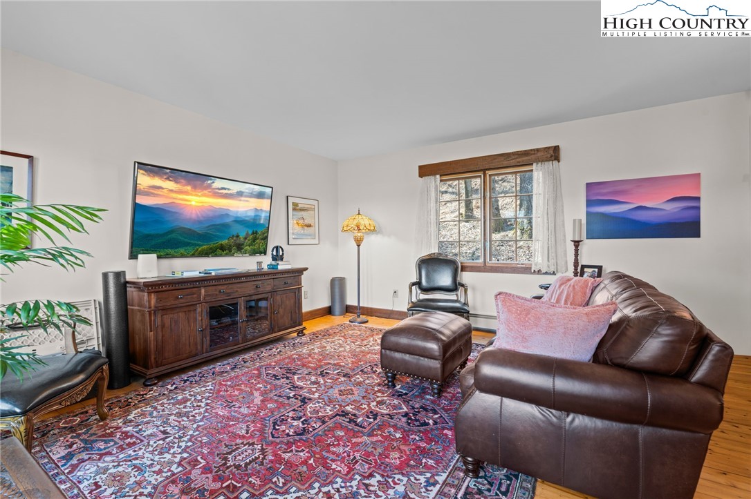 So much to offer! Nestled just above the Boone Golf Club in the charming Kellwood neighborhood, this beautifully crafted 3 bedroom, 2.5 bath Tudor style home captures stunning views of Bamboo Valley and the essence of High Country living. Ideally located just minutes from Boone, Blowing Rock and the Blue Ridge Parkway this home is perfectly suited as a full time residence or a serene mountain getaway. Custom built with a creative touch, this one of a kind home features a thoughtfully designed layout and unique architectural details throughout. The main level welcomes you with a beautiful eat-in kitchen, a spacious living room anchored by a stone fireplace with gas logs and, with the exception of the sunroom, radiant floors throughout. The spectacular sunroom offers polished concrete floors, a wood stove and a custom stained glass window as well as direct access to the outdoor patio and landscaped grounds. The second floor primary suite is a true retreat, featuring a private den, full bath, laundry area, large walk in closet and dedicated office space. The third floor offers two additional bedrooms, a full bath another sitting area and access to a small charming turret patio. A versatile bonus room, accessed from the mudroom, is currently used as a guest space but would make an excellent office, fitness room, yoga studio or creative workspace. Recent upgrades include a new heating system, new refrigerator and oven and a Generac generator for added peace of mind. With exceptional character, flexible living space, and a prime location, this home offers endless possibilities. Don't miss your chance to make it your own!