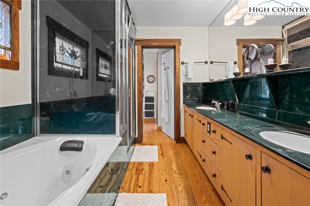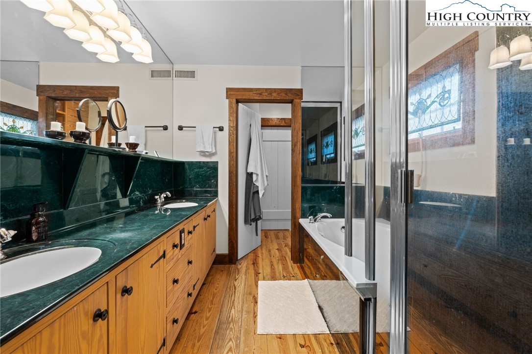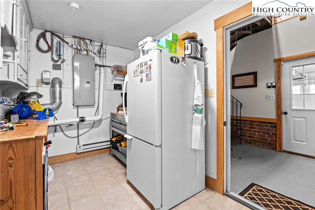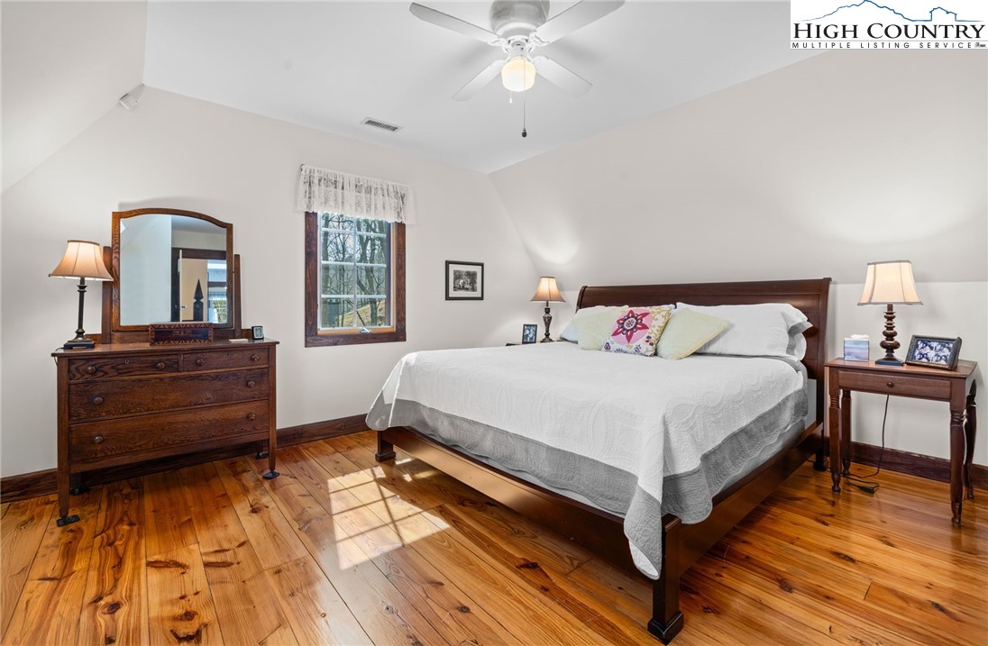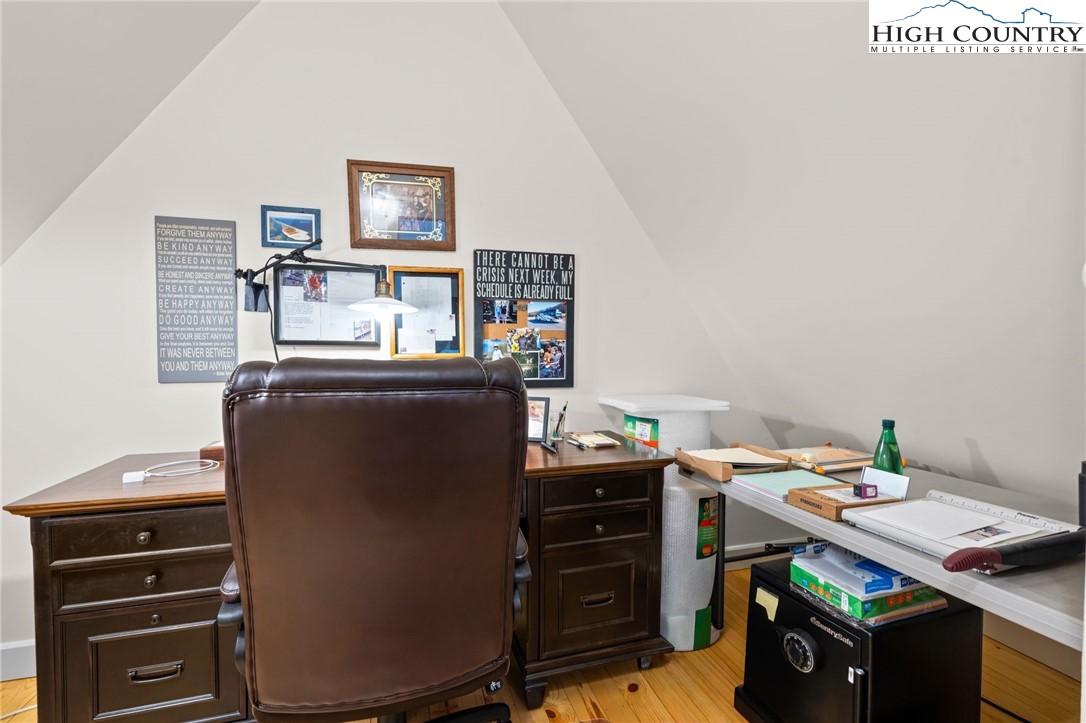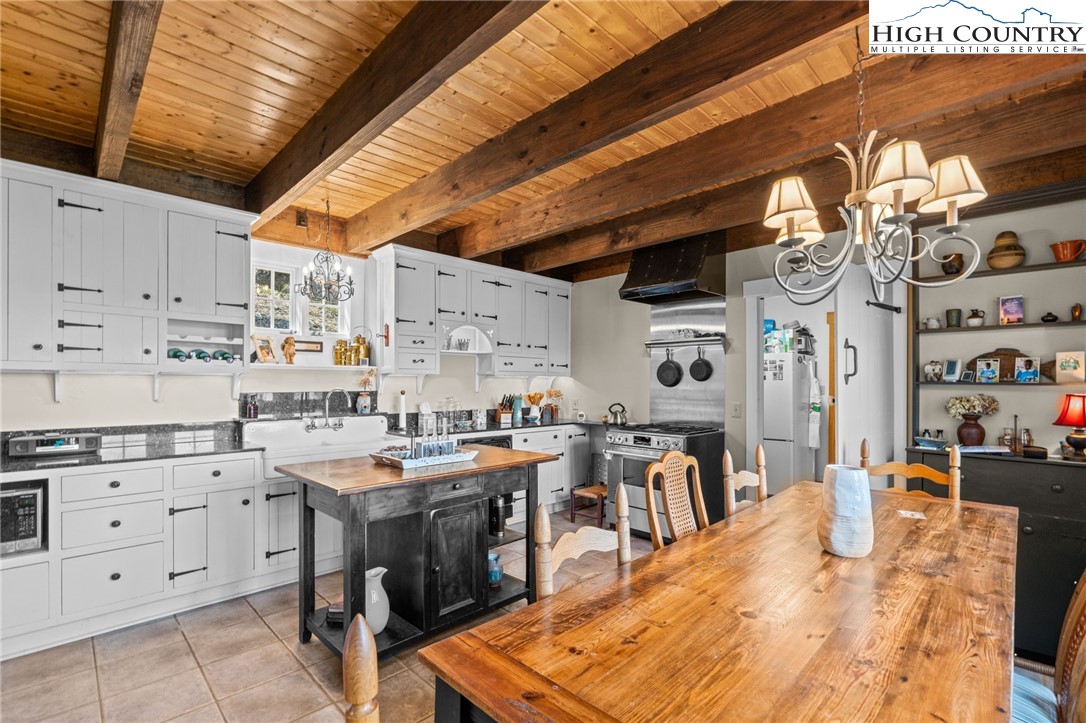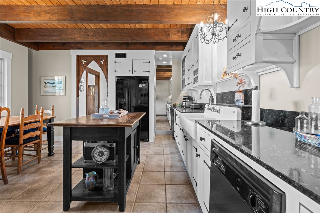 So much to offer! Nestled just above the Boone Golf Club in the charming Kellwood neighborhood, this beautifully crafted 3 bedroom, 2.5 bath Tudor style home captures stunning views of Bamboo Valley and the essence of High Country living. Ideally located just minutes from Boone, Blowing Rock and the Blue Ridge Parkway this home is perfectly suited as a full time residence or a serene mountain getaway. Custom built with a creative touch, this one of a kind home features a thoughtfully designed layout and unique architectural details throughout. The main level welcomes you with a beautiful eat-in kitchen, a spacious living room anchored by a stone fireplace with gas logs and, with the exception of the sunroom, radiant floors throughout. The spectacular sunroom offers polished concrete floors, a wood stove and a custom stained glass window as well as direct access to the outdoor patio and landscaped grounds. The second floor primary suite is a true retreat, featuring a private den, full bath, laundry area, large walk in closet and dedicated office space. The third floor offers two additional bedrooms, a full bath another sitting area and access to a small charming turret patio. A versatile bonus room, accessed from the mudroom, is currently used as a guest space but would make an excellent office, fitness room, yoga studio or creative workspace. Recent upgrades include a new heating system, new refrigerator and oven and a Generac generator for added peace of mind. With exceptional character, flexible living space, and a prime location, this home offers endless possibilities. Don't miss your chance to make it your own!