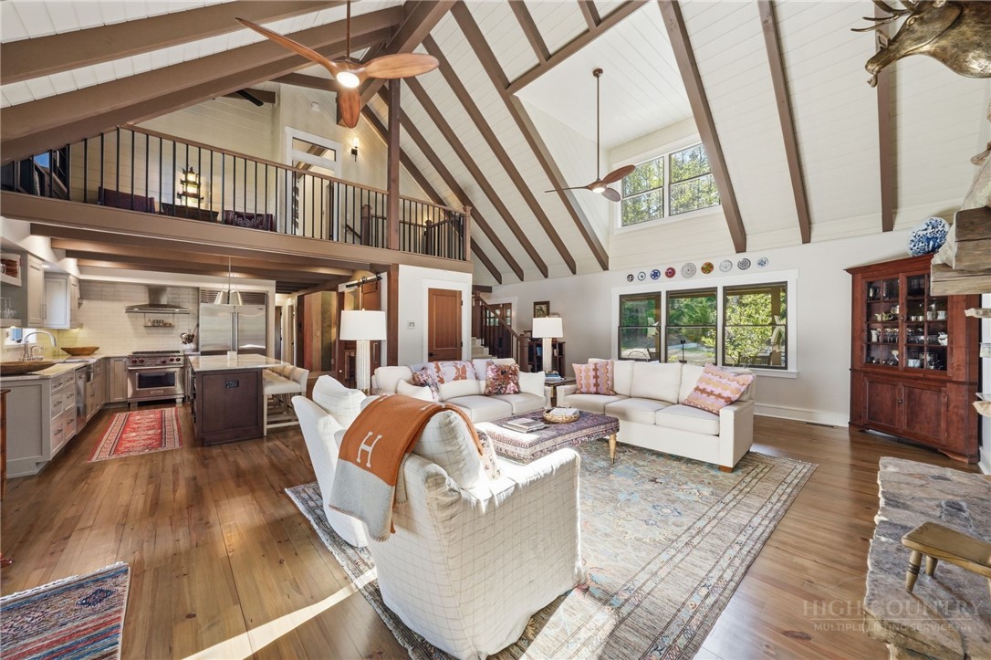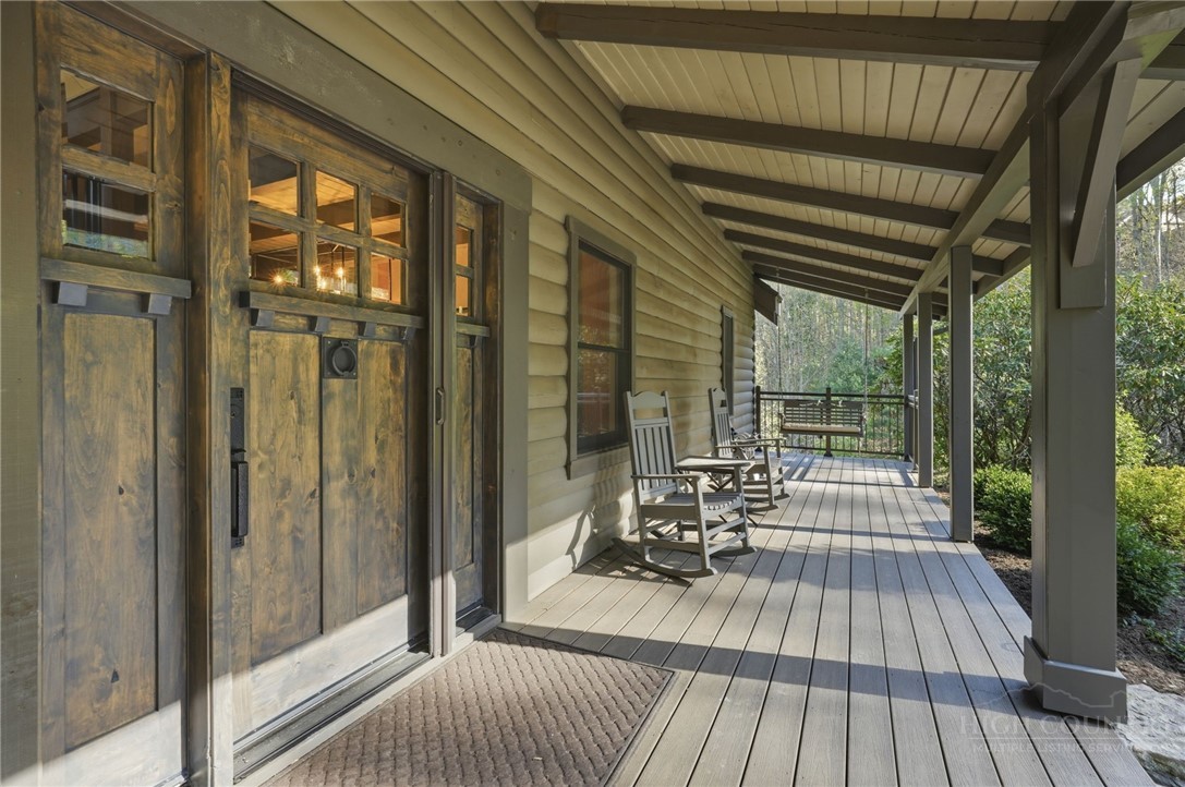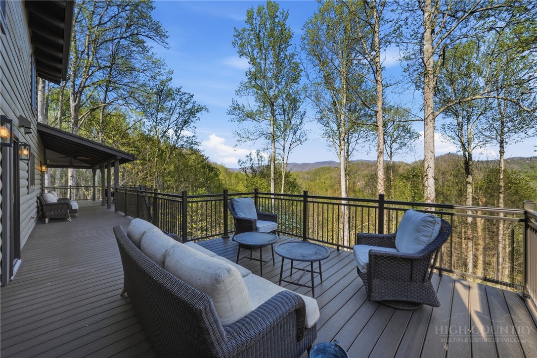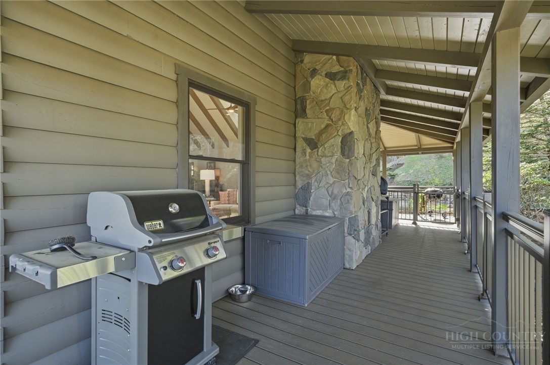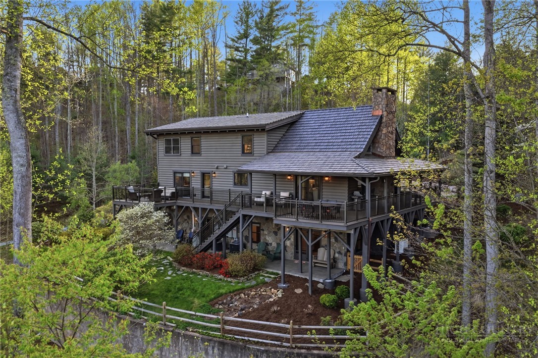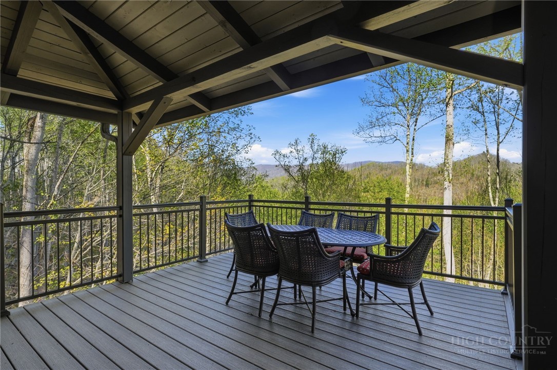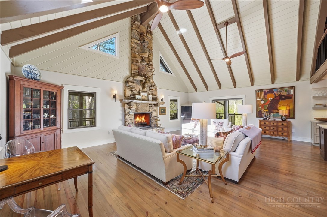 Tucked behind the gates of Valle Cay, where the natural landscape has been intentionally preserved to reflect the character of the Blue Ridge Mountains, 151 Man O War South unfolds across a combined 4.3-acre double lot, offering a private retreat defined by scale, setting and a seamless relationship with the land. Layered mountain views extend beyond thoughtfully maintained grounds, where curated, low-maintenance landscaping enhances the natural surroundings while preserving the terrain’s original character. Established in 1987 as a private residential enclave and gateway to Valle Crucis, Valle Cay draws inspiration from the Blue Ridge Parkway, with preserved trees, native stone and architectural continuity shaping the community. Residents enjoy access to lakes for fishing and canoeing, scenic hiking trails and gathering spaces, all within minutes of Valle Crucis, Banner Elk and Boone. The residence spans approximately 3,297 square feet and is arranged across three levels, offering three primary suites, each with an en suite bath, allowing for both privacy and flexibility. The main level is designed for single-level living, where vaulted ceilings and expansive windows introduce natural light and frame the surrounding landscape. A floor-to-ceiling stone fireplace with gas log insert anchors the living space, creating a sense of scale while maintaining connection to the outdoors. The kitchen balances function and design, featuring granite surfaces, a Wolf range, Sub-Zero refrigerator and wine refrigeration, along with a well-appointed pantry and laundry space with direct access to the deck. The main-level suite is oriented toward the views, offering direct access to the deck overlooking the mountains, a double closet and a bath with heated flooring and a walk-in shower. Upstairs, a loft with built-in shelving overlooks the living area, leading to a primary suite with vaulted ceilings, a walk-in closet and a generous sitting area with a window seat positioned to capture natural light. The bath continues the home’s emphasis on comfort, featuring heated tile flooring and towel warmers. The lower level introduces additional flexibility, with a secondary living area suited for a game room, theater, office or fitness space. A private suite on this level includes a full bath and direct access to the rear patio, offering separation for guests or extended stays. A separate driveway entrance and access to the two-car garage enhance functionality. Outdoor living is layered across multiple levels of Trex decking with aluminum railings, recently updated for durability and ease of maintenance. The fully enclosed fenced backyard is accessible directly from the main-level deck, providing a functional extension of the living space. The combined acreage supports privacy and long-term view protection. Recent improvements reflect a comprehensive investment in the home’s longevity, including a DaVinci composite shake roof installed in 2023, full decking and railing replacement in 2023, a whole-house generator added in 2024, replacement of two heat pumps in 2021 and updated well and pressure systems, all supporting long-term performance. An optional furniture package featuring brand-new, high-end curated pieces is available, offering a turnkey opportunity aligned with the home’s design aesthetic. Experience the balance of privacy, design and mountain living in one of the High Country’s most thoughtfully developed communities.