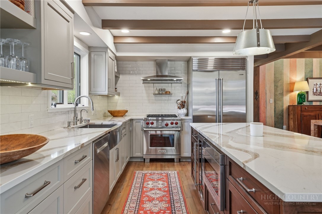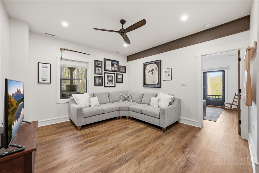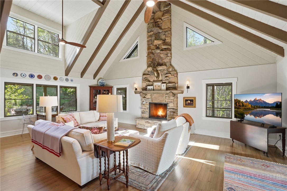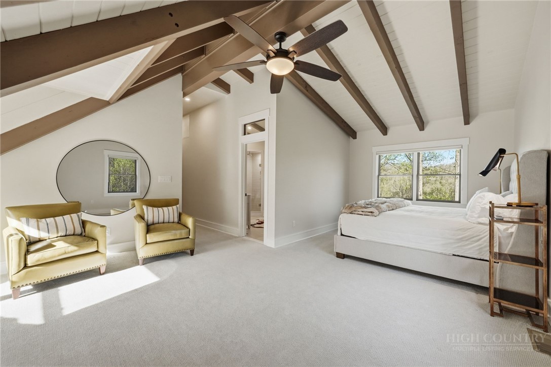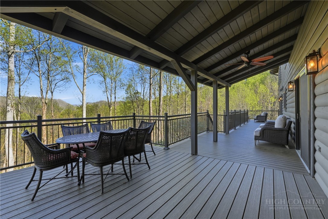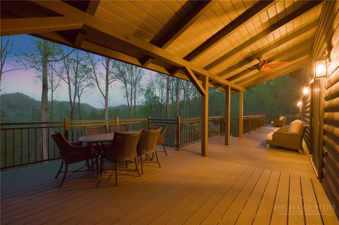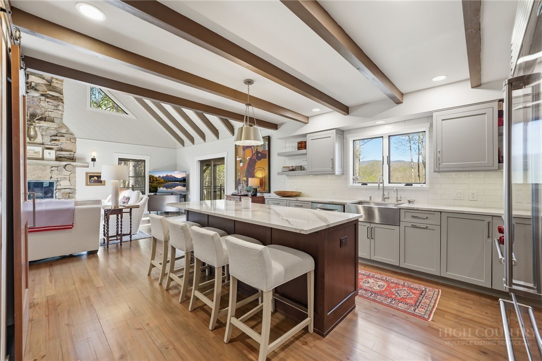 Tucked behind the gates of Valle Cay, where the natural landscape has been intentionally preserved to reflect the character of the Blue Ridge Mountains, 151 Man O War South unfolds across a combined 4.3-acre double lot, offering a private retreat defined by scale, setting and a seamless relationship with the land. Layered mountain views extend beyond thoughtfully maintained grounds, where curated, low-maintenance landscaping enhances the natural surroundings while preserving the terrain’s original character. Established in 1987 as a private residential enclave and gateway to Valle Crucis, Valle Cay draws inspiration from the Blue Ridge Parkway, with preserved trees, native stone and architectural continuity shaping the community. Residents enjoy access to lakes for fishing and canoeing, scenic hiking trails and gathering spaces, all within minutes of Valle Crucis, Banner Elk and Boone. The residence spans approximately 3,297 square feet and is arranged across three levels, offering three primary suites, each with an en suite bath, allowing for both privacy and flexibility. The main level is designed for single-level living, where vaulted ceilings and expansive windows introduce natural light and frame the surrounding landscape. A floor-to-ceiling stone fireplace with gas log insert anchors the living space, creating a sense of scale while maintaining connection to the outdoors. The kitchen balances function and design, featuring granite surfaces, a Wolf range, Sub-Zero refrigerator and wine refrigeration, along with a well-appointed pantry and laundry space with direct access to the deck. The main-level suite is oriented toward the views, offering direct access to the deck overlooking the mountains, a double closet and a bath with heated flooring and a walk-in shower. Upstairs, a loft with built-in shelving overlooks the living area, leading to a primary suite with vaulted ceilings, a walk-in closet and a generous sitting area with a window seat positioned to capture natural light. The bath continues the home’s emphasis on comfort, featuring heated tile flooring and towel warmers. The lower level introduces additional flexibility, with a secondary living area suited for a game room, theater, office or fitness space. A private suite on this level includes a full bath and direct access to the rear patio, offering separation for guests or extended stays. A separate driveway entrance and access to the two-car garage enhance functionality. Outdoor living is layered across multiple levels of Trex decking with aluminum railings, recently updated for durability and ease of maintenance. The fully enclosed fenced backyard is accessible directly from the main-level deck, providing a functional extension of the living space. The combined acreage supports privacy and long-term view protection. Recent improvements reflect a comprehensive investment in the home’s longevity, including a DaVinci composite shake roof installed in 2023, full decking and railing replacement in 2023, a whole-house generator added in 2024, replacement of two heat pumps in 2021 and updated well and pressure systems, all supporting long-term performance. An optional furniture package featuring brand-new, high-end curated pieces is available, offering a turnkey opportunity aligned with the home’s design aesthetic. Experience the balance of privacy, design and mountain living in one of the High Country’s most thoughtfully developed communities.