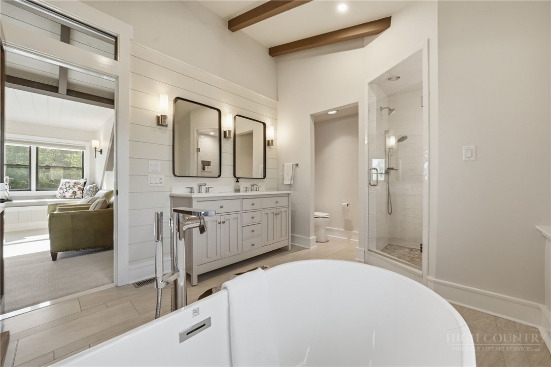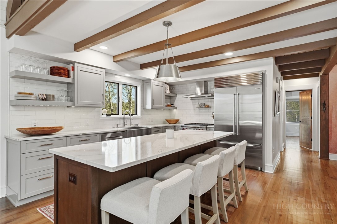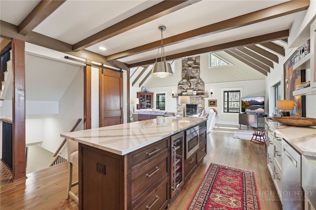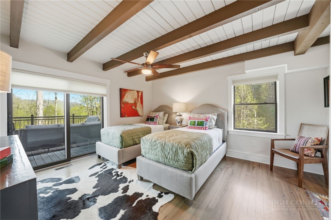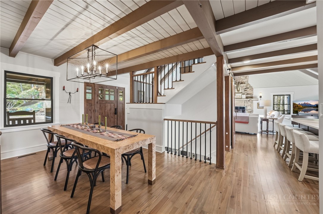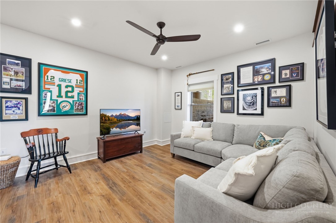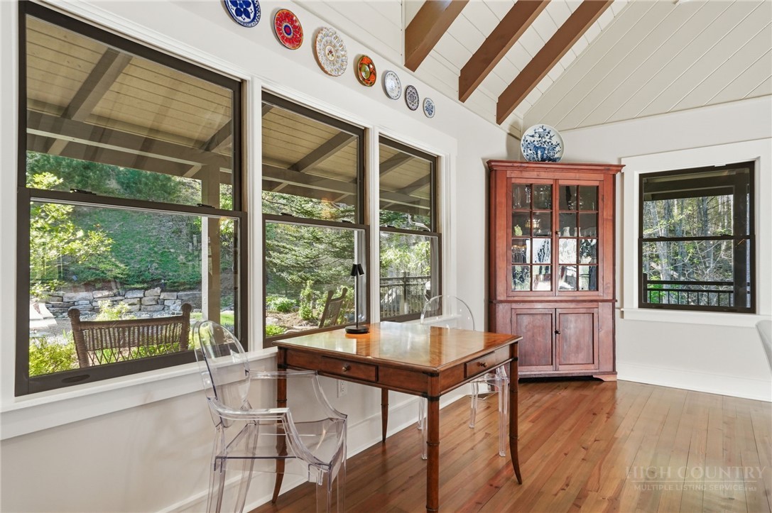 Tucked behind the gates of Valle Cay, where the natural landscape has been intentionally preserved to reflect the character of the Blue Ridge Mountains, 151 Man O War South unfolds across a combined 4.3-acre double lot, offering a private retreat defined by scale, setting and a seamless relationship with the land. Layered mountain views extend beyond thoughtfully maintained grounds, where curated, low-maintenance landscaping enhances the natural surroundings while preserving the terrain’s original character. Established in 1987 as a private residential enclave and gateway to Valle Crucis, Valle Cay draws inspiration from the Blue Ridge Parkway, with preserved trees, native stone and architectural continuity shaping the community. Residents enjoy access to lakes for fishing and canoeing, scenic hiking trails and gathering spaces, all within minutes of Valle Crucis, Banner Elk and Boone. The residence spans approximately 3,297 square feet and is arranged across three levels, offering three primary suites, each with an en suite bath, allowing for both privacy and flexibility. The main level is designed for single-level living, where vaulted ceilings and expansive windows introduce natural light and frame the surrounding landscape. A floor-to-ceiling stone fireplace with gas log insert anchors the living space, creating a sense of scale while maintaining connection to the outdoors. The kitchen balances function and design, featuring granite surfaces, a Wolf range, Sub-Zero refrigerator and wine refrigeration, along with a well-appointed pantry and laundry space with direct access to the deck. The main-level suite is oriented toward the views, offering direct access to the deck overlooking the mountains, a double closet and a bath with heated flooring and a walk-in shower. Upstairs, a loft with built-in shelving overlooks the living area, leading to a primary suite with vaulted ceilings, a walk-in closet and a generous sitting area with a window seat positioned to capture natural light. The bath continues the home’s emphasis on comfort, featuring heated tile flooring and towel warmers. The lower level introduces additional flexibility, with a secondary living area suited for a game room, theater, office or fitness space. A private suite on this level includes a full bath and direct access to the rear patio, offering separation for guests or extended stays. A separate driveway entrance and access to the two-car garage enhance functionality. Outdoor living is layered across multiple levels of Trex decking with aluminum railings, recently updated for durability and ease of maintenance. The fully enclosed fenced backyard is accessible directly from the main-level deck, providing a functional extension of the living space. The combined acreage supports privacy and long-term view protection. Recent improvements reflect a comprehensive investment in the home’s longevity, including a DaVinci composite shake roof installed in 2023, full decking and railing replacement in 2023, a whole-house generator added in 2024, replacement of two heat pumps in 2021 and updated well and pressure systems, all supporting long-term performance. An optional furniture package featuring brand-new, high-end curated pieces is available, offering a turnkey opportunity aligned with the home’s design aesthetic. Experience the balance of privacy, design and mountain living in one of the High Country’s most thoughtfully developed communities.