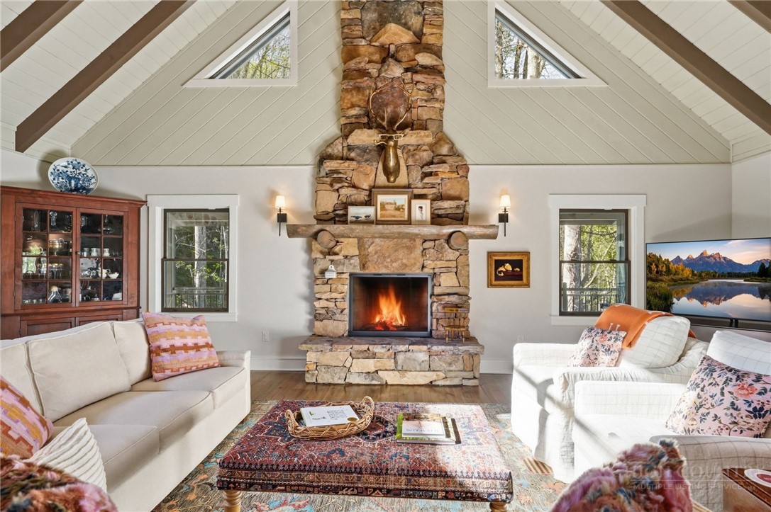 Fireplace: One, Gas, Stone, Vented, Propane