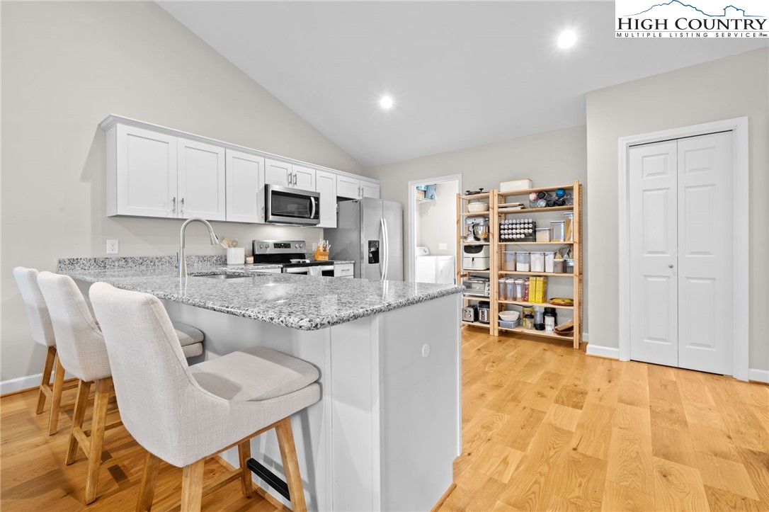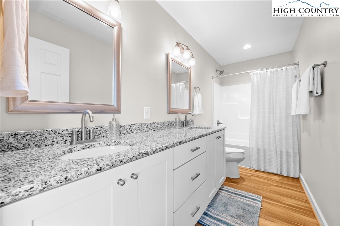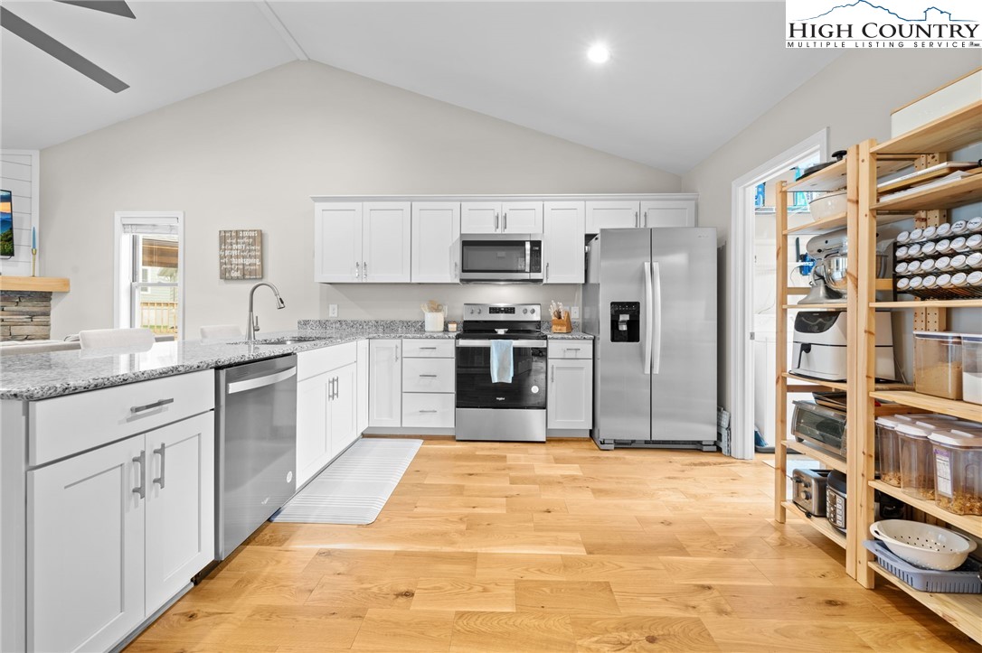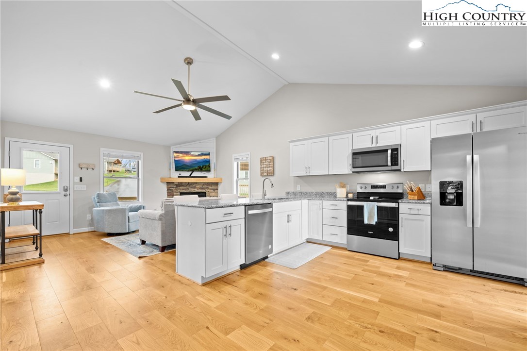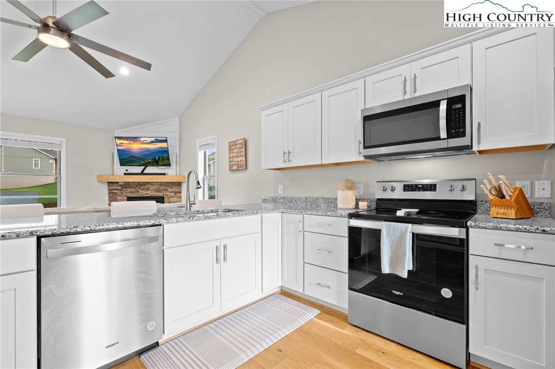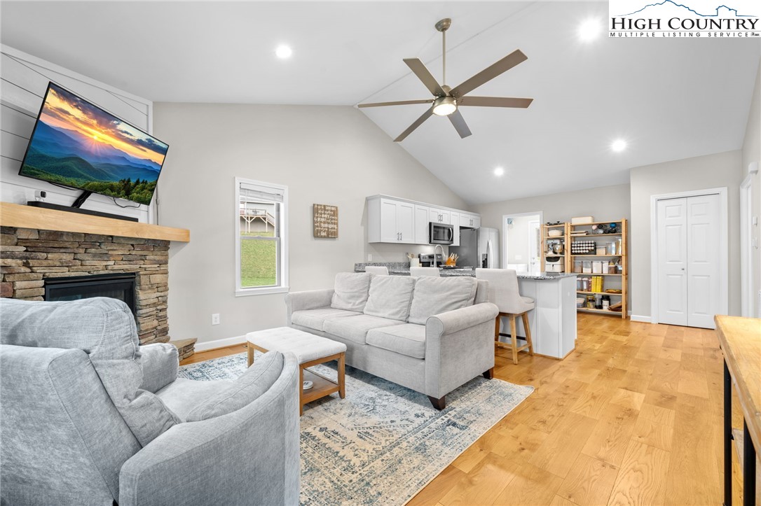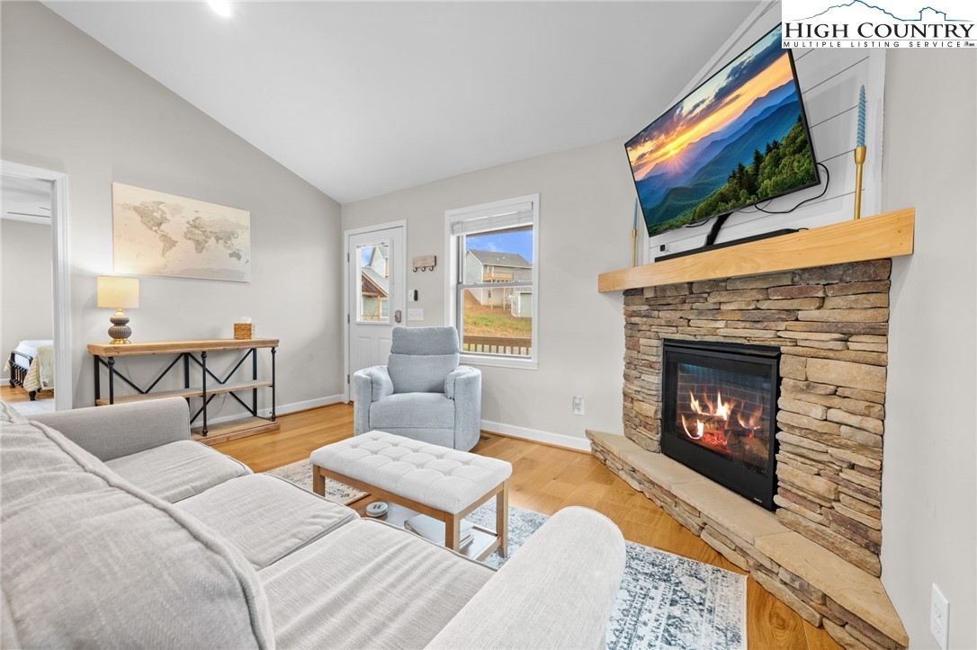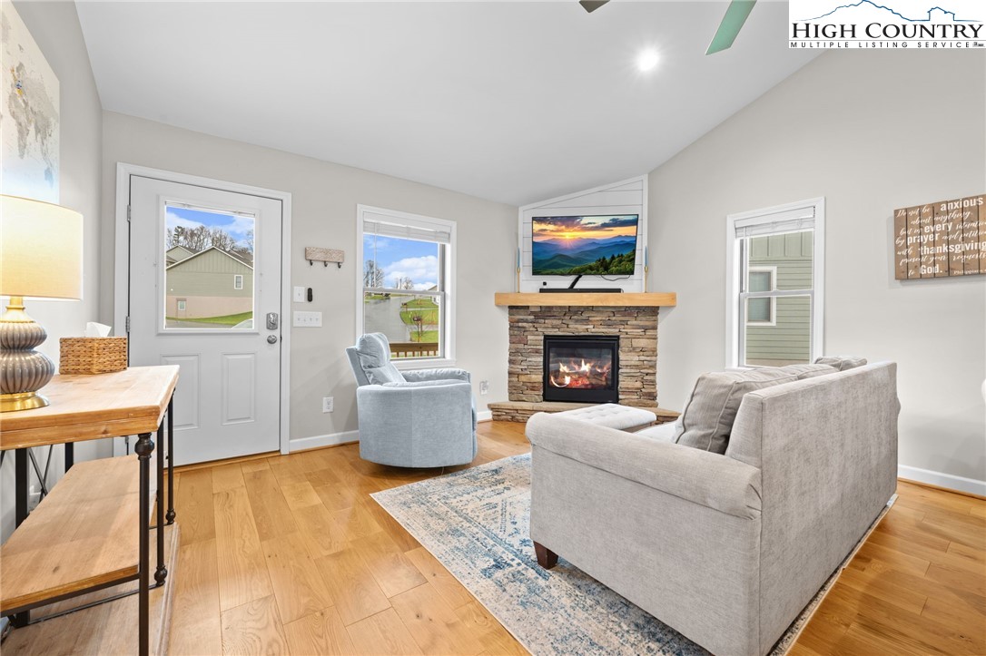 Discover the ultimate blend of effortless living and mountain charm at this beautiful and low maintenance 2 bedroom, 2 bathroom detached townhome within the sought after Townhomes of Brookshire community. Nestled on the peaceful outskirts of Boone, this prime location offers easy accessibility to everything you want to enjoy in the High Country. Located just minutes from Appalachian State University, downtown Boone's vibrant shops and restaurants, and medical facilities and just down the road from Brookshire Park and the Boone Greenway trail system, the New River, Rocky Knob mountain bike park and other outdoor activities. This bright and airy single level living residence designed for optimal comfort and style. The open concept living area is enhanced by vaulted ceilings and beautiful luxury vinyl plank flooring throughout and a stacked stone gas log fireplace serves as the centerpiece for warm and cozy evenings by the fire. The highly functional and large kitchen has beautiful granite countertops and ample cabinet space with stainless steel appliances. Each of the two spacious bedrooms has its own en suite bathroom, and both are large enough for king sized beds if desired. The primary bedroom has an extra large bathroom with double vanity, a rarity in this community! Enjoy peaceful mornings and quiet evenings on either of the two porches, and year round enjoyment from your covered front porch, and expansive mountain views from your open back porch. This home is built for a truly low maintenance lifestyle, with the monthly dues covering comprehensive services including water, sewer, master insurance, exterior home and yard maintenance, trash, road maintenance, plus access to the community dog park and over 80 acres of green space. Whether you're seeking a permanent residence, a seasonal retreat, or an investment property, this home checks every box. Don't miss this exceptional opportunity to embrace the best of easy and convenient Boone living!