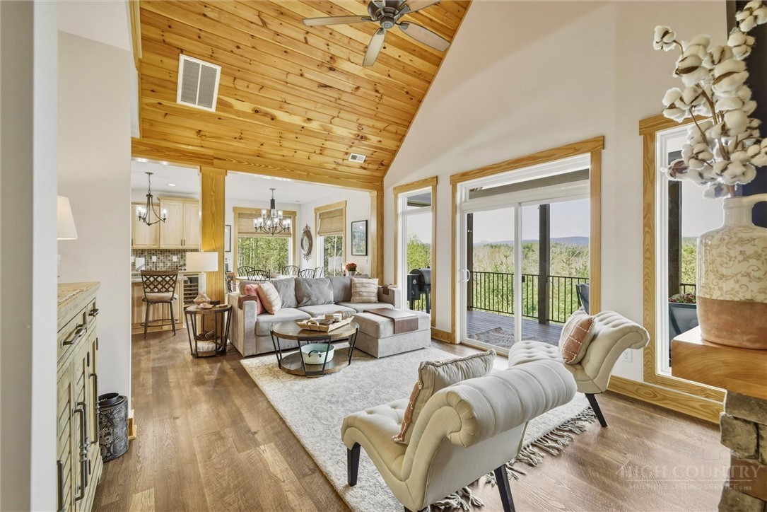 Own a custom built, meticulously maintained, 3 BR 2.5 BA home in the South’s premiere Outdoor Lifestyle Community, The Coves Mountain River Club! On 2+ acres of serene mountain land, this home was planned for enjoying the beauty of the mountains and comforts of a lovingly maintained home and grounds. The heart of this home is the great room, featuring a gorgeous, stacked stone fireplace climbing to vaulted wood ceilings. Sunlight streaming through tall windows and French doors creates a vibrant, spacious connection to the outdoors. Astonishing views of the Blue Ridge Mountains rim the horizon; you’ll savor incredible sunsets followed by stars that go on forever. The kitchen features custom hickory cabinetry, granite counters, under-mounted stainless steel sink, generous island and breakfast bar, 5 burner gas range, under the counter microwave, beverage chiller, wine storage and a large walk-in pantry. A convenient mudroom+laundry room leads to the garage. Transom windows atop the primary bedroom and the powder room doors ensure that natural light extends beyond the great room. Even the powder room is designed for character and style with a copper sink and leathered granite countertop. The ensuite primary bedroom, with more amazing views of the mountains, is a personal haven for ending the day with tranquility. Upstairs are two additional BR and full BA, connected by a balcony overlooking the great room below. Thoughtful landscape design creates spaces for dining, relaxing, and enjoying the surrounding natural setting, year-round. Follow the path to the backyard oasis where the hot tub spa is tucked away, offering a resort style atmosphere for cool mountain evenings. Pristine grounds are planted with feature evergreens and blooming shrubs. The grass looks like carpet. All this and there are still +/- 1.4 acres of undeveloped woods on the property. Your new home includes unparalleled community amenities. The Coves Mountain River Club is a 3,200 acre gated community on 5 miles of the Johns River, in the Blue Ridge Mountains of NC. Hike, bike, ride horses, or UTVs on miles of community exclusive trails that weave through. River access areas are ready for you to put in and take out your kayak, wade and fish, picnic, or gather round a stone fire pit. The crown jewel of The Coves is the magnificent post and beam constructed clubhouse, Pisgah Lodge, located on one of the highest peaks. There’s a saline pool, fitness center, locker rooms, full kitchen, lending library, pool table, fire pits, and porches, overlooks to take in 360º views of the Blue Ridge Mountains, South Mtns, and Brushy Mtns. The Coves is a Dark Sky Community, minimizing light pollution and providing breathtaking star-gazing. Garden your private plot at the Community Garden or join your neighbors to care for and harvest the community cooperative vineyard. Pickle-ball and shuffleboard courts, putting green, and a picnic pavilion are located at another Coves's park, Wyatt's Landing. Additional amenities include 2 Equestrian Centers and a Dog Park. A full calendar of events and over 30 clubs to join. 500K acre Pisgah National Forest and Wilson Creek Wild and Scenic River Area across the road! 1.25 hour to Charlotte/Asheville, minutes to Lenoir, Blowing Rock, Morganton, and Blue Ridge Parkway. 1510 High Valley Way offers a compelling opportunity as a full-time residence, retreat, or 2nd home. Properties offering this level of privacy, outdoor space, and amenities are rare.