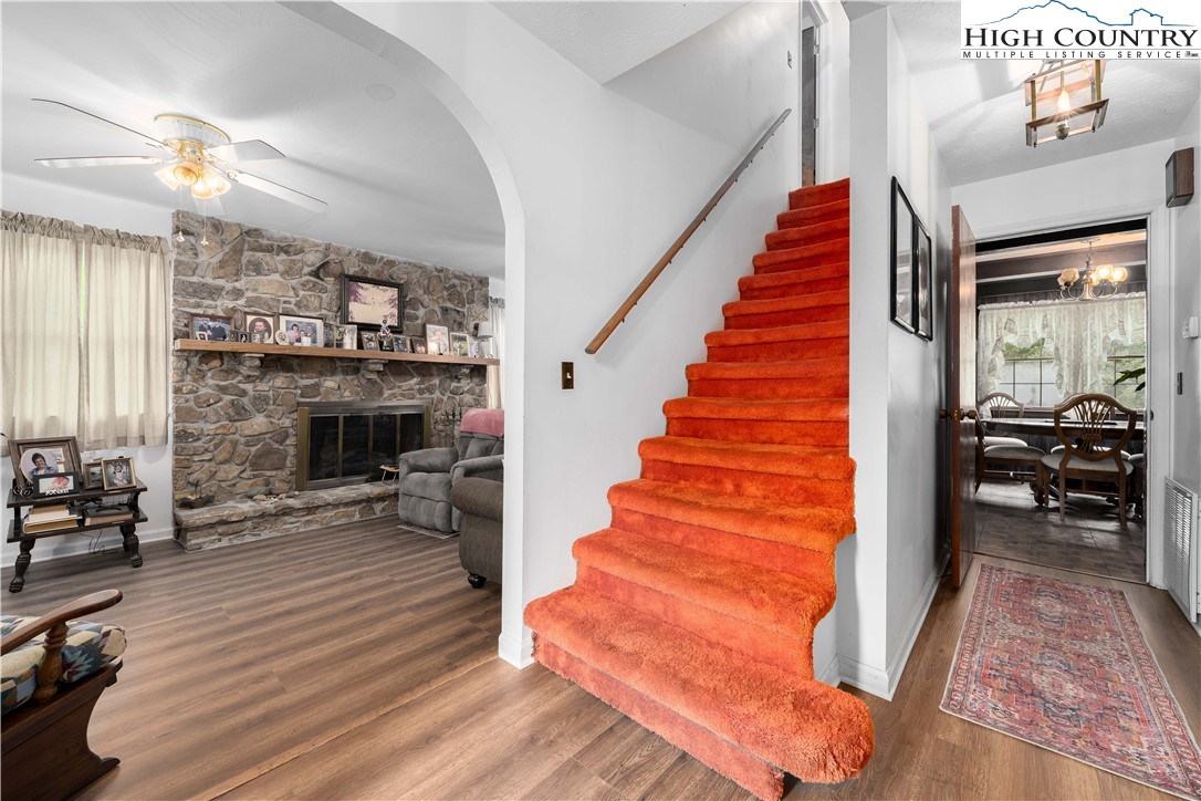 Come and enjoy your own secluded paradise atop the hill on over 40 acres! Bound on one side by a bold stream and surrounded by mature forest with roughly 6 acres of pasture, this property truly offers it all. Wind your way up the paved and private drive to the level home site with attached 2 car garage and handicap accessibility. Inside is a great floor plan with all of the necessities on the main floor. Primary suite, sunken living room, office, kitchen, laundry, and dining area are all here just off of the garage. Upstairs find two additional large bedrooms and another full bath, as well as ample storage. Home is now on a private well, but there are multiple springs on the property and home was spring fed in the past. Gorgeous stone fireplace in the living area currently has gas logs but could be converted back to wood burning. Pasture area is currently utilized for hay production but could easily graze your livestock or be converted to garden or orchard area. Renovate the primary home and enjoy it as a private estate, or divide and create tracts and home sites for all your family or friends. Don't miss out on this incredible property that offers so many hard to find characteristics, come and see today!