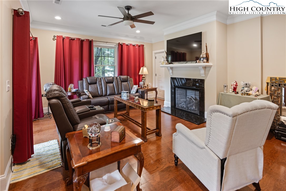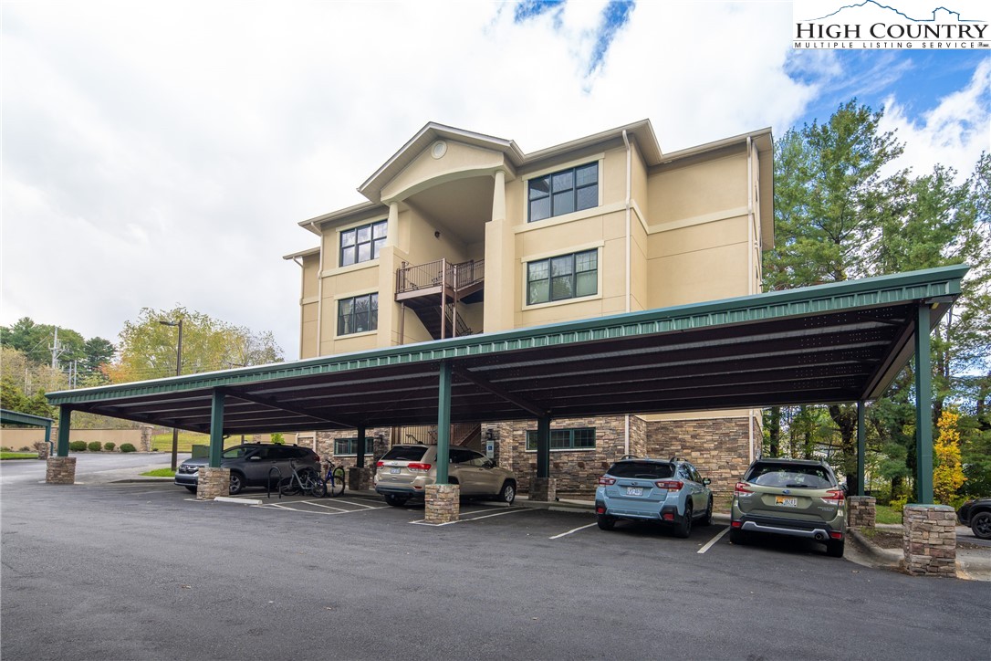 One level 2BR/2BA open concept condo filled with natural light. Conveniently located just minutes from ASU, Watauga Medical, Greenway Trail, Watauga Rec Center, The Shops at Shadowline and downtown Boone! Covered parking and elevator make this home easily accessible. Luxury finishes throughout including granite countertops, stainless steel appliances, high ceilings with crown mouldings, stone fireplace equipped with gas logs and a covered porch. The primary suite has a beautifully appointed bathroom with garden tub and separate walk-in shower, a large walk-in closet and a tray ceiling. The secondary/guest bedroom has a large walk-in closet. Additionally, the floor plan offers great flexiblilty with a bonus room that could be utilized as a home office, formal dining room, den or additional sleeping area. Kensington Gate is a small 55+ community that features secured buildings with keypad, a beautiful clubhouse with full kitchen, workout facilities and common green spaces-all close to everything Boone has to offer!
