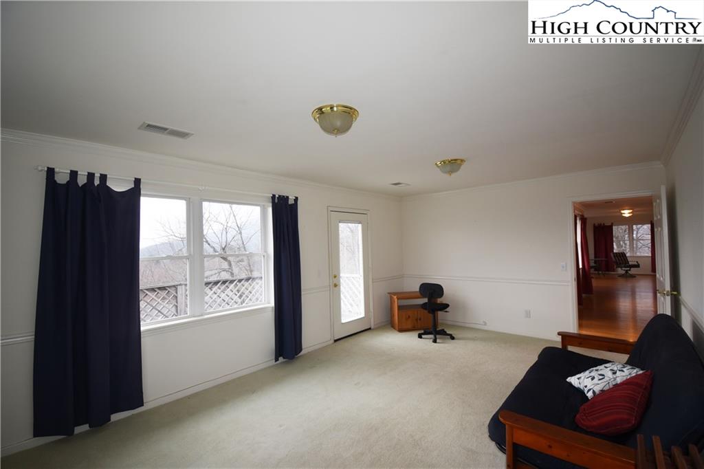 Reduced!! Lots of house for the money! You can't build this much square footage at today's building rates for this price. This sun-filled home is a hobbyist's dream a finished lower level with room to spread out - exercise, home theater, quilting, you name it. Also another bath and room that could be used for overflow guests if needed. The sun-filled main level has large windows to take in the view, with wood floors in the common areas except the Den (and carpet in the bedrooms). Each bedroom has an en suite bathroom, and the den offers the view plus a deck. Everything you need is on this one floor including a breakfast nook off the kitchen, and a large great room, as well as laundry. Set in the desirable southern end of Ashe County, with easy access to West Jefferson or to Hwy 221 to get to Boone, this home offers a great location and a community that maintains the paved roads and shares a water system. Let someone else worry about those details, and come enjoy part- or full-time living set around Mountain Aire Golf Course where golfing is optional, and plenty to do awaits you in Ashe County. (Whole house dehumidifier included.)