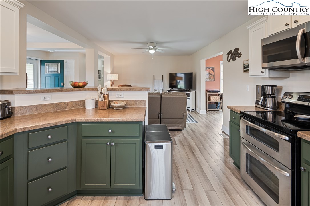 Appliances: Dryer, Dishwasher, Electric Range, Electric Water Heater, Microwave Hood Fan, Microwave, Refrigerator, Washer